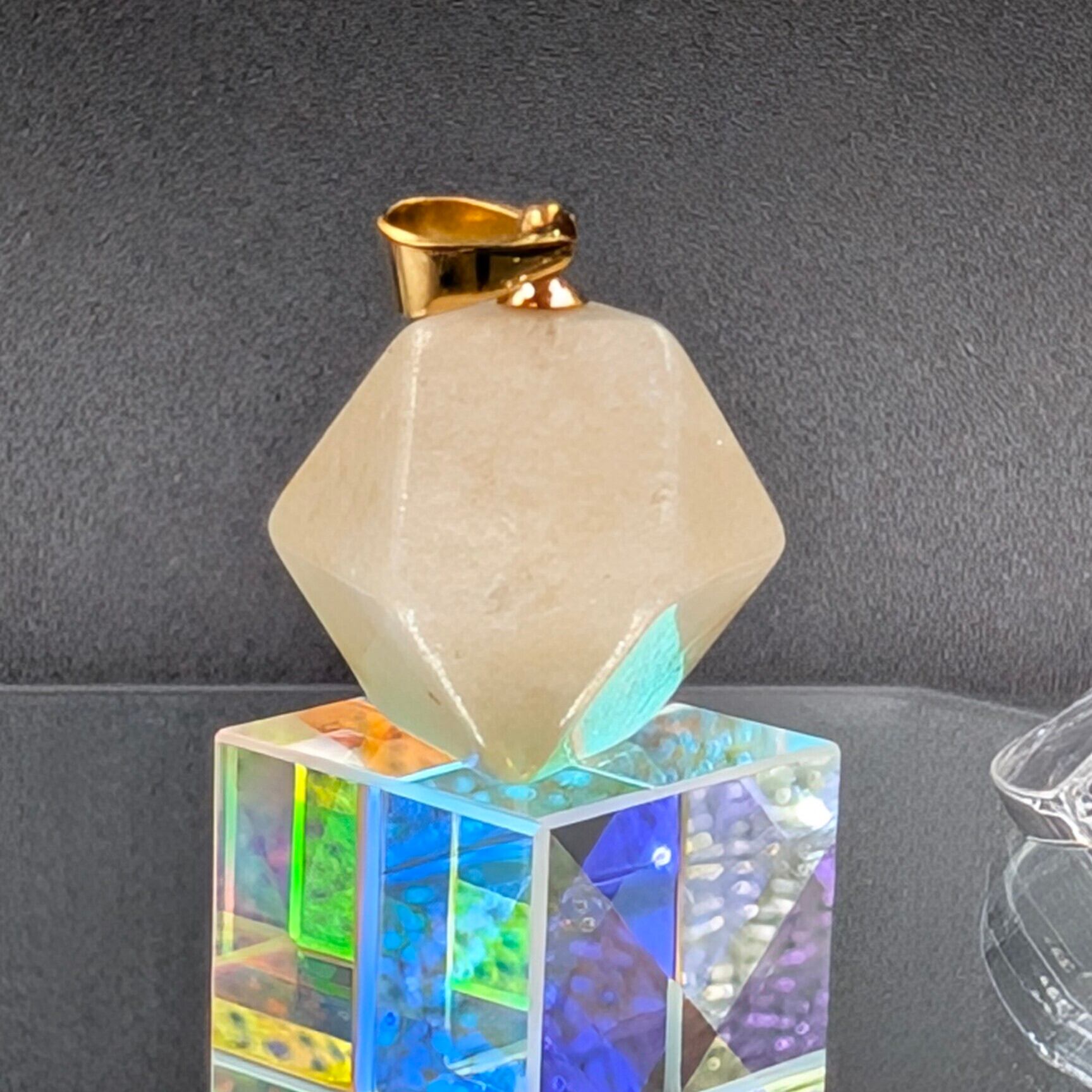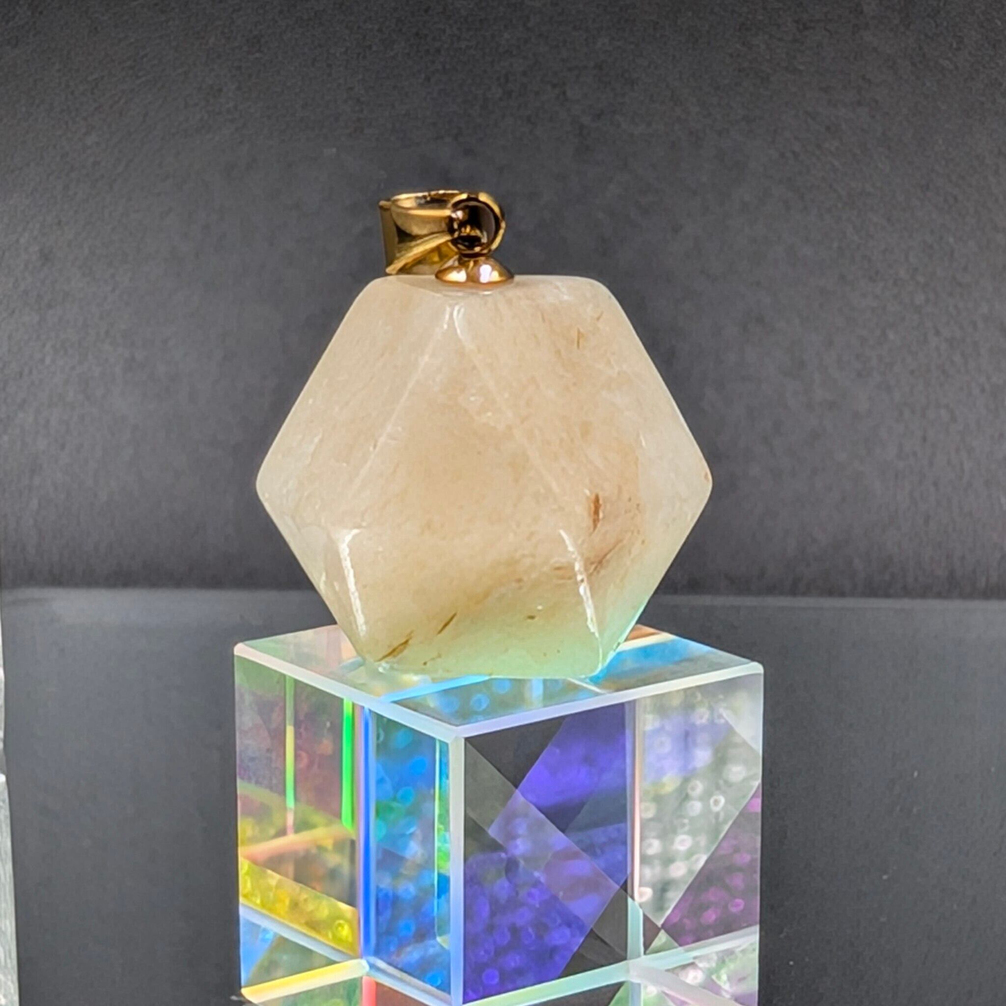 限定1 日本銘石 静岡水晶イエローホワイト 14面体ペンダントトップ(Lサイズ)