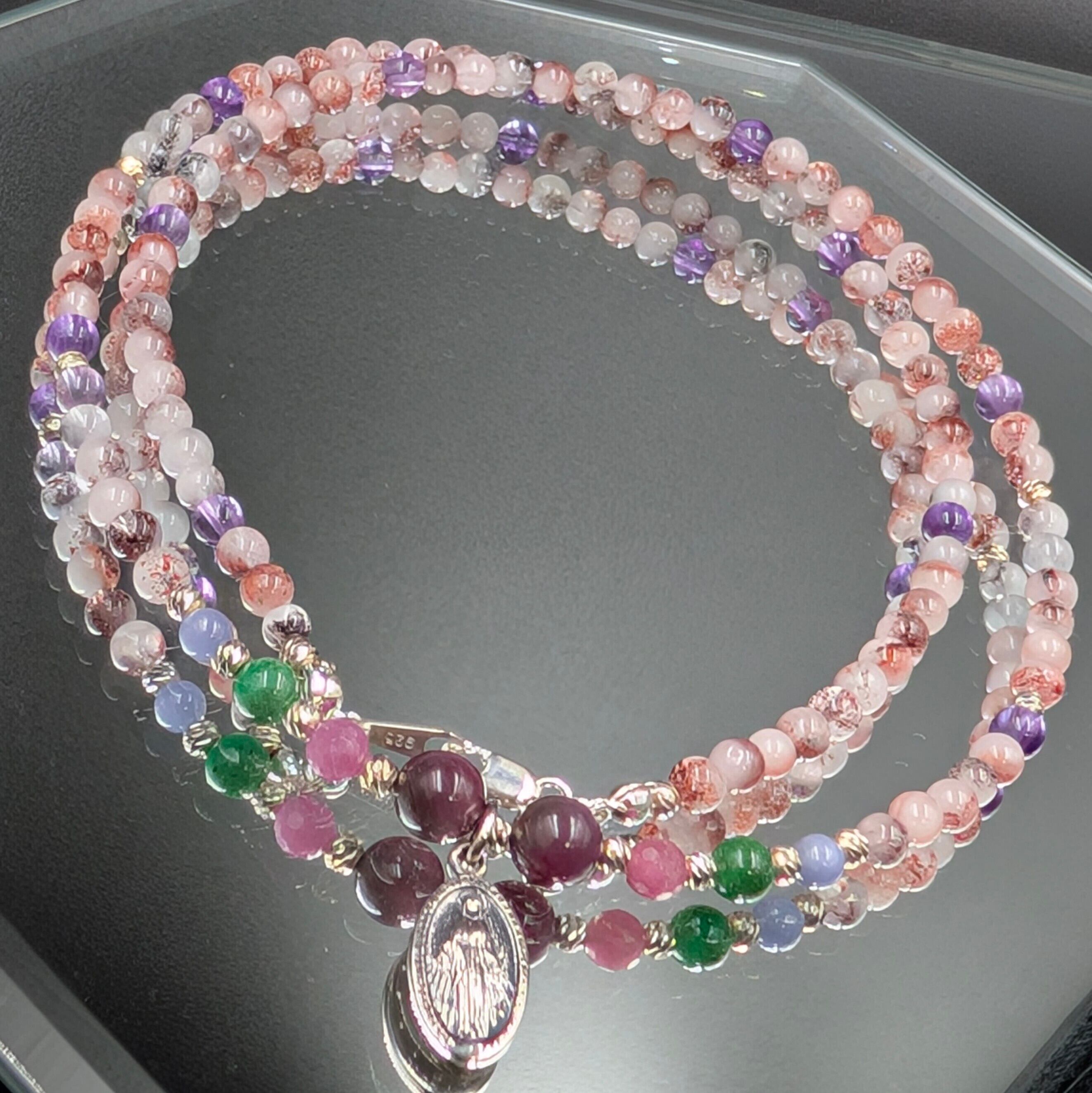 このネックレスは、スピリチュアルな守護と調和、恋愛や人間関係の向上、行動力や成功運、癒しと成長など、多面的な幸運効果をもたらすと考えられます。また、不思議のメダイが中心的な守護の役割を果たし、他の天然石のエネルギーをさらに強化する可能性があります。