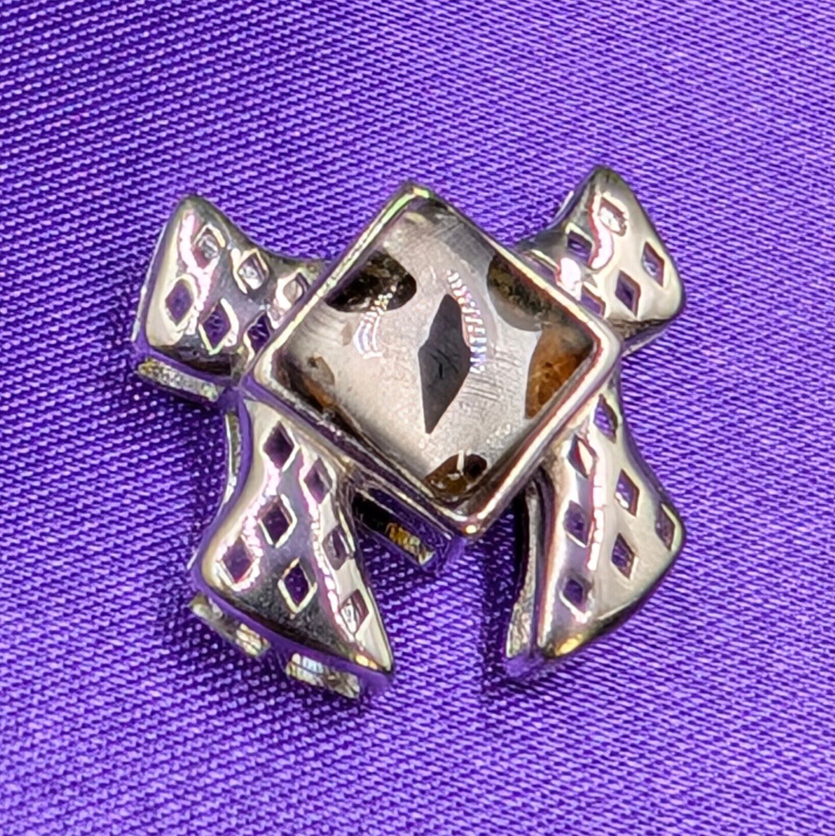 宇宙を旅してきた極めて希少な「パラサイト隕石」を、可憐なリボンモチーフにあしらったSilver925製ペンダントトップ。黄緑色に輝く“かんらん石(ペリドット)”と、鉄とニッケルの合金が織りなす神秘的な模様は、まるで宇宙のステンドグラス。サイズは約10.5×10.5mm、重さは約3gと、日常使いにもぴったりの上品な仕上がりです。