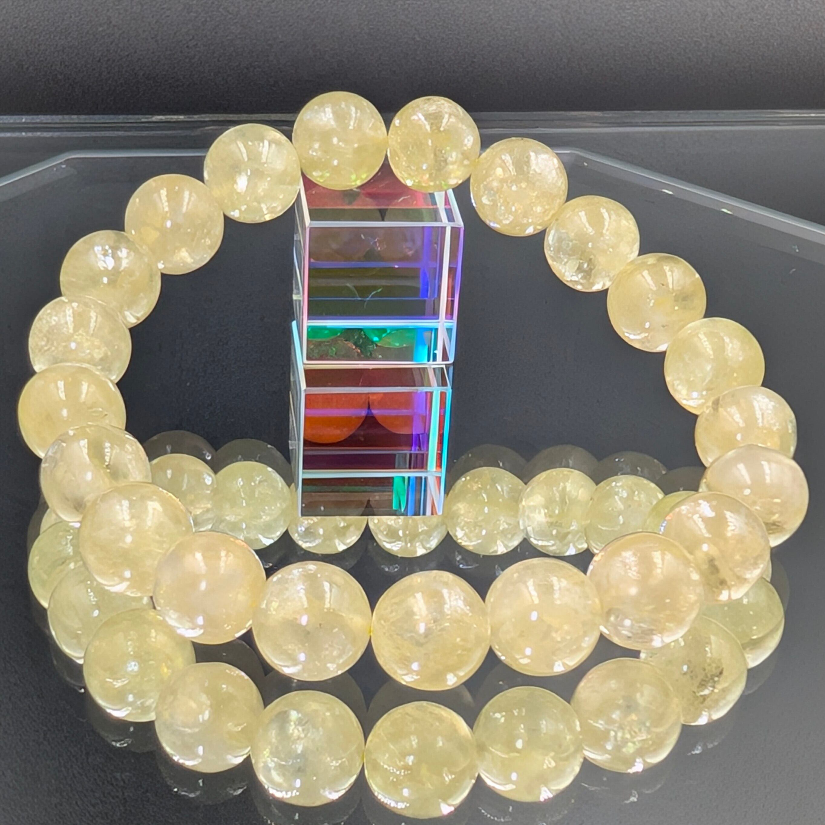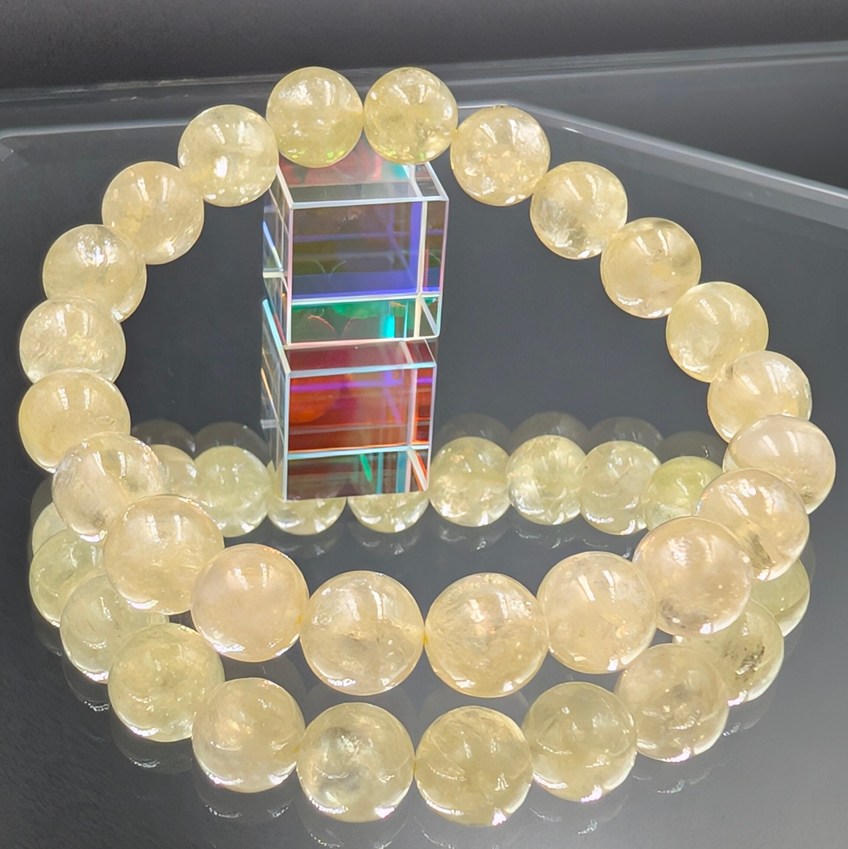 硬度は2.5〜4と比較的柔らかいため、強い衝撃にはご注意ください。幻想的な輝きと金運を引き寄せる力をあわせ持つ、特別な天然石ブレスレットです。