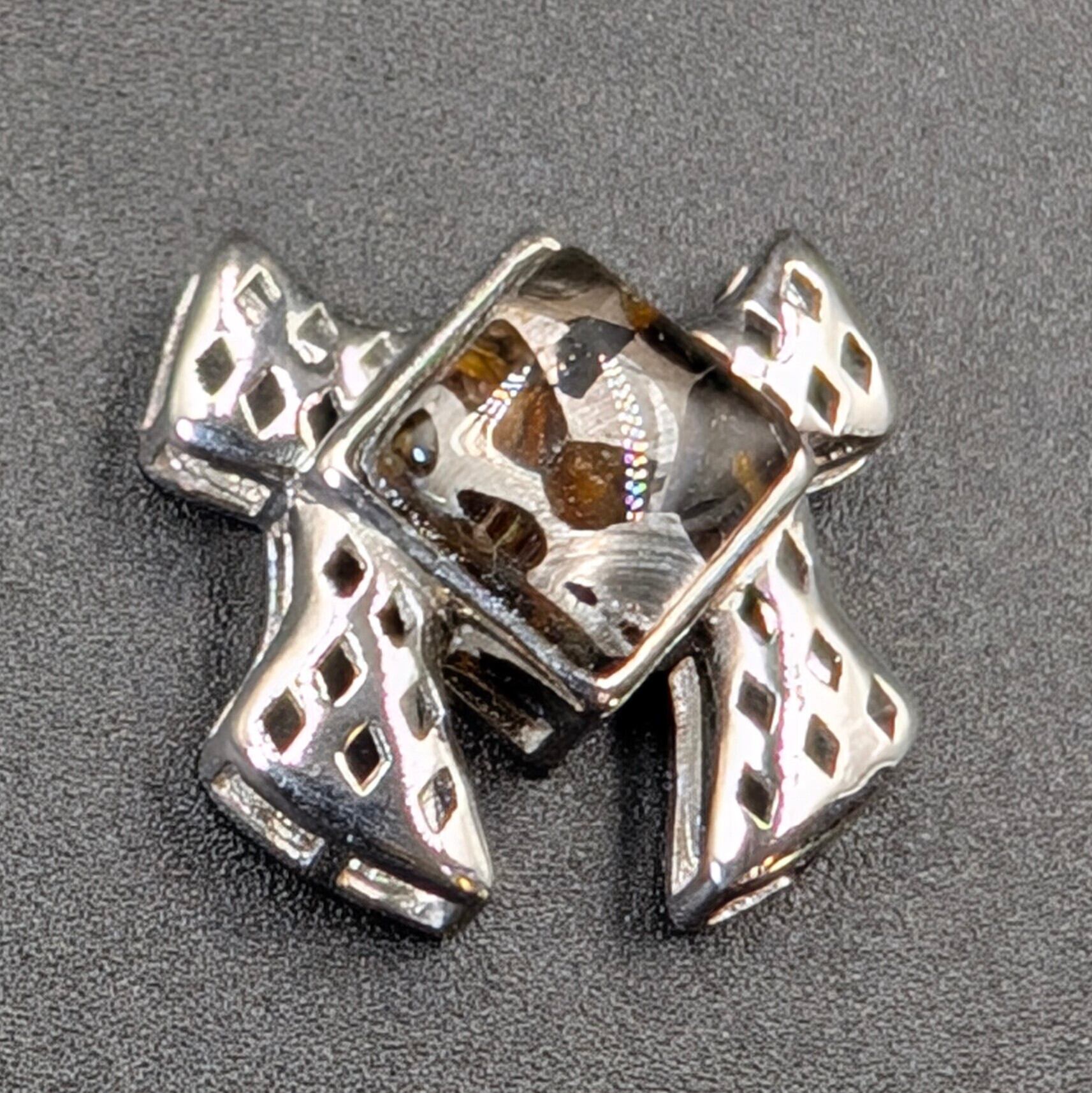 【特価】宇宙からの贈り物―希少パラサイト隕石×Silver925 リボンペンダント|10.5mmの神秘を胸元に
