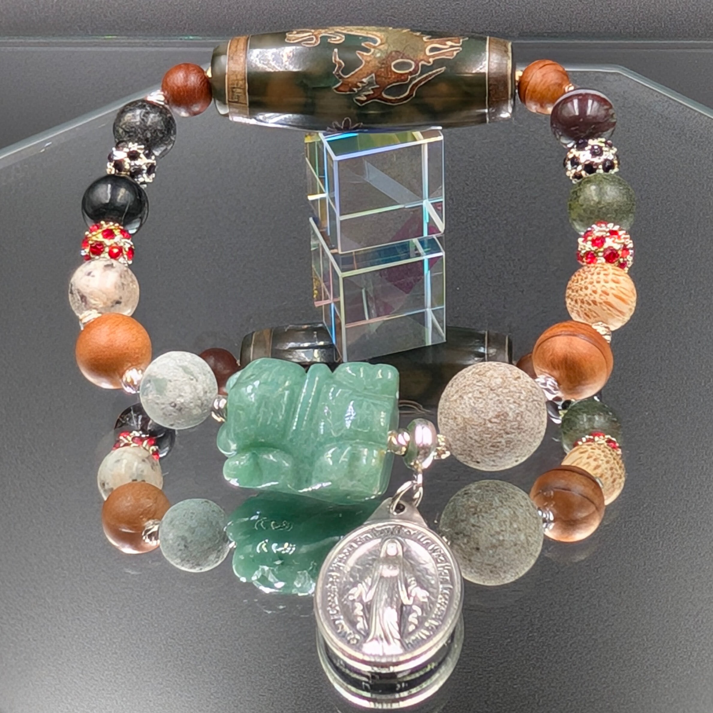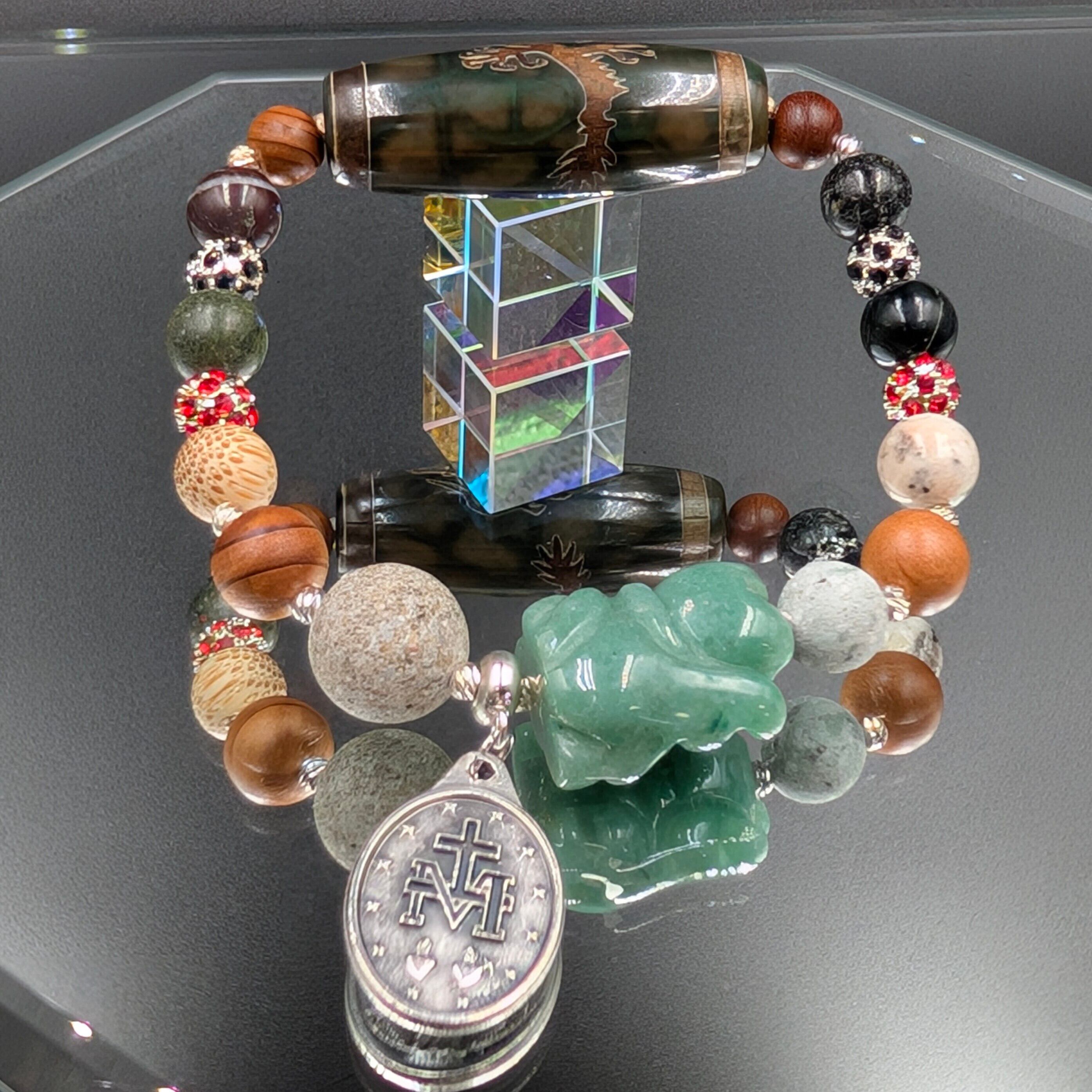 【超開運・金運覚醒】龍紋五爪皇帝龍神天珠×神木×不思議のメダイ×日本銘石×金糸竹──皇帝龍神と聖なる御神木が導く六大奇跡のブレスレット