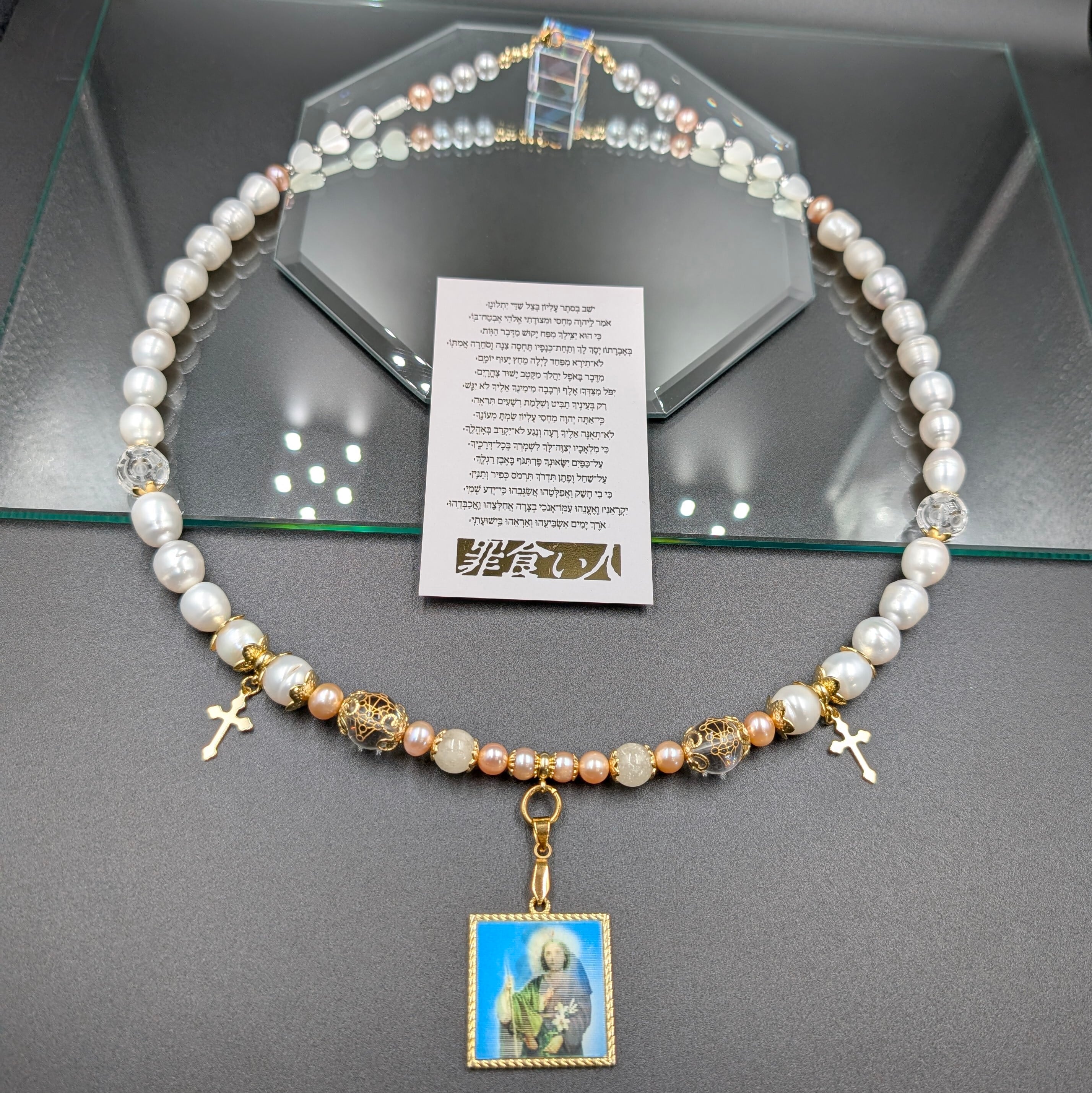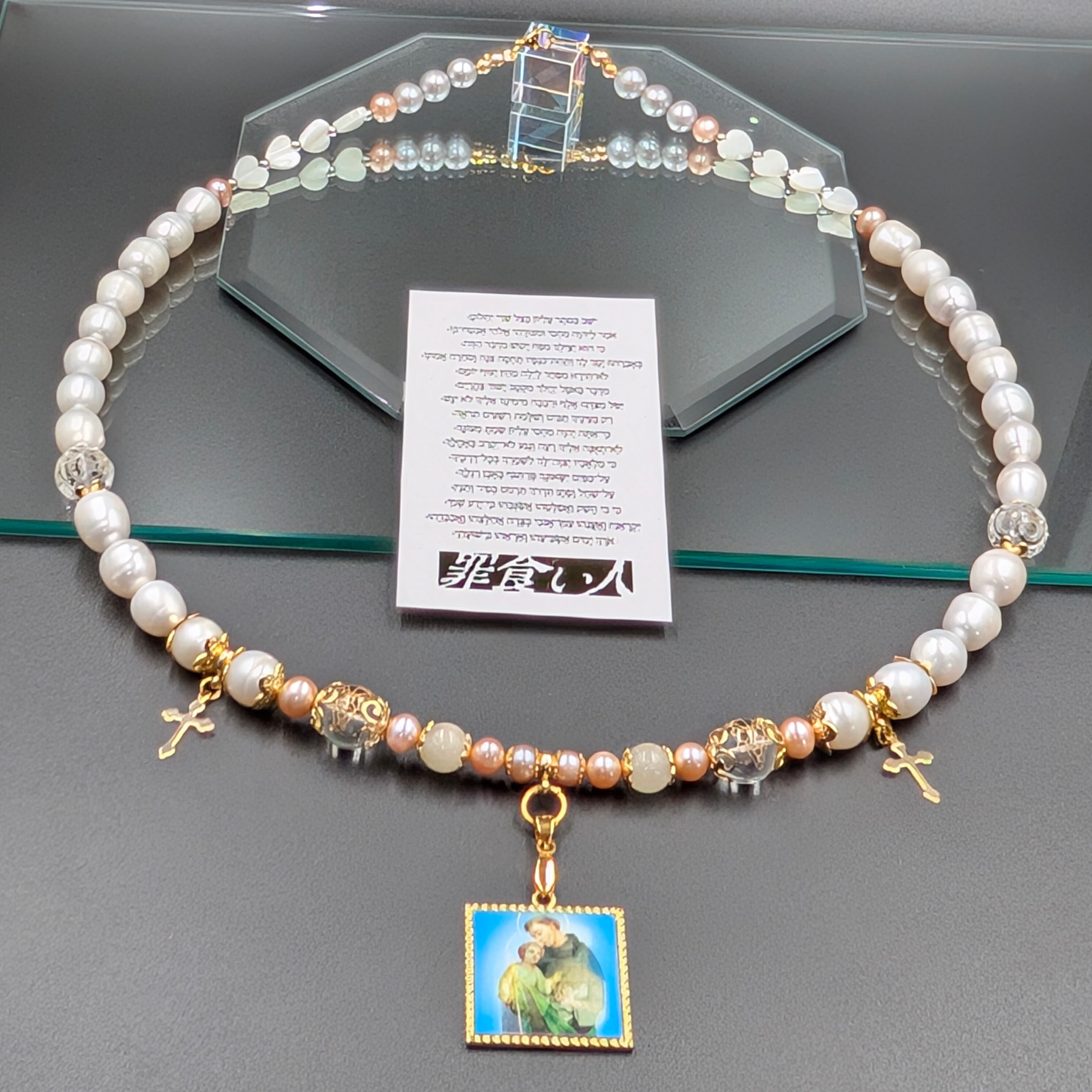 ※不可能を希望に変える——聖なる真珠と二人の奇跡の聖人、そしてスピリチュアルパワーストーンを結集させた、ただ一つの祝福ネックレス。