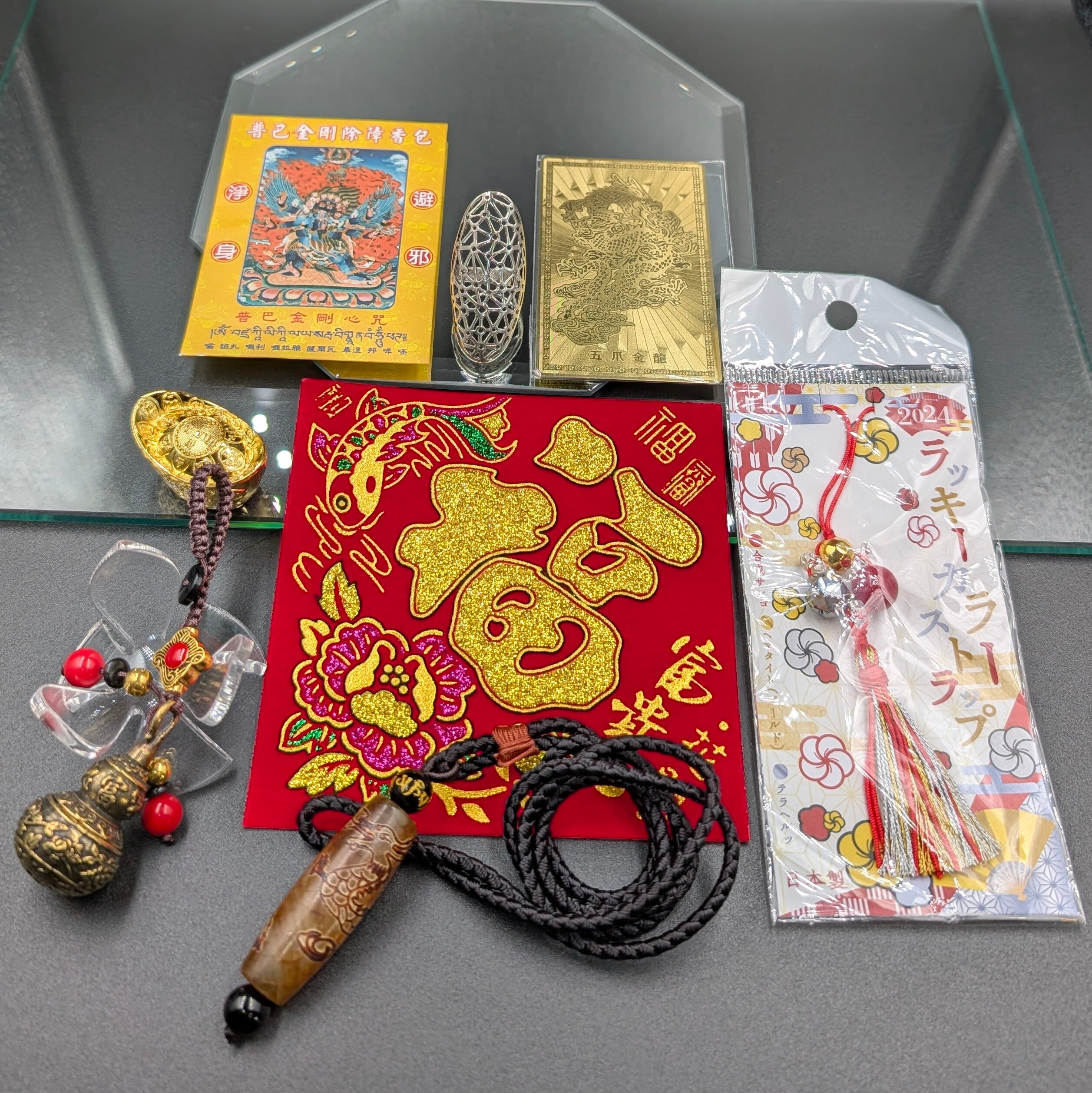 ※1点物【龍神の力が宿る完全護符セット】龍紋天珠×倒福×普巴金剛香×五爪龍護符×真鍮瓢箪×金運元宝×魔術封じの指輪―災厄を祓い、富と守護と愛を手に入れる開運フルパッケージ!