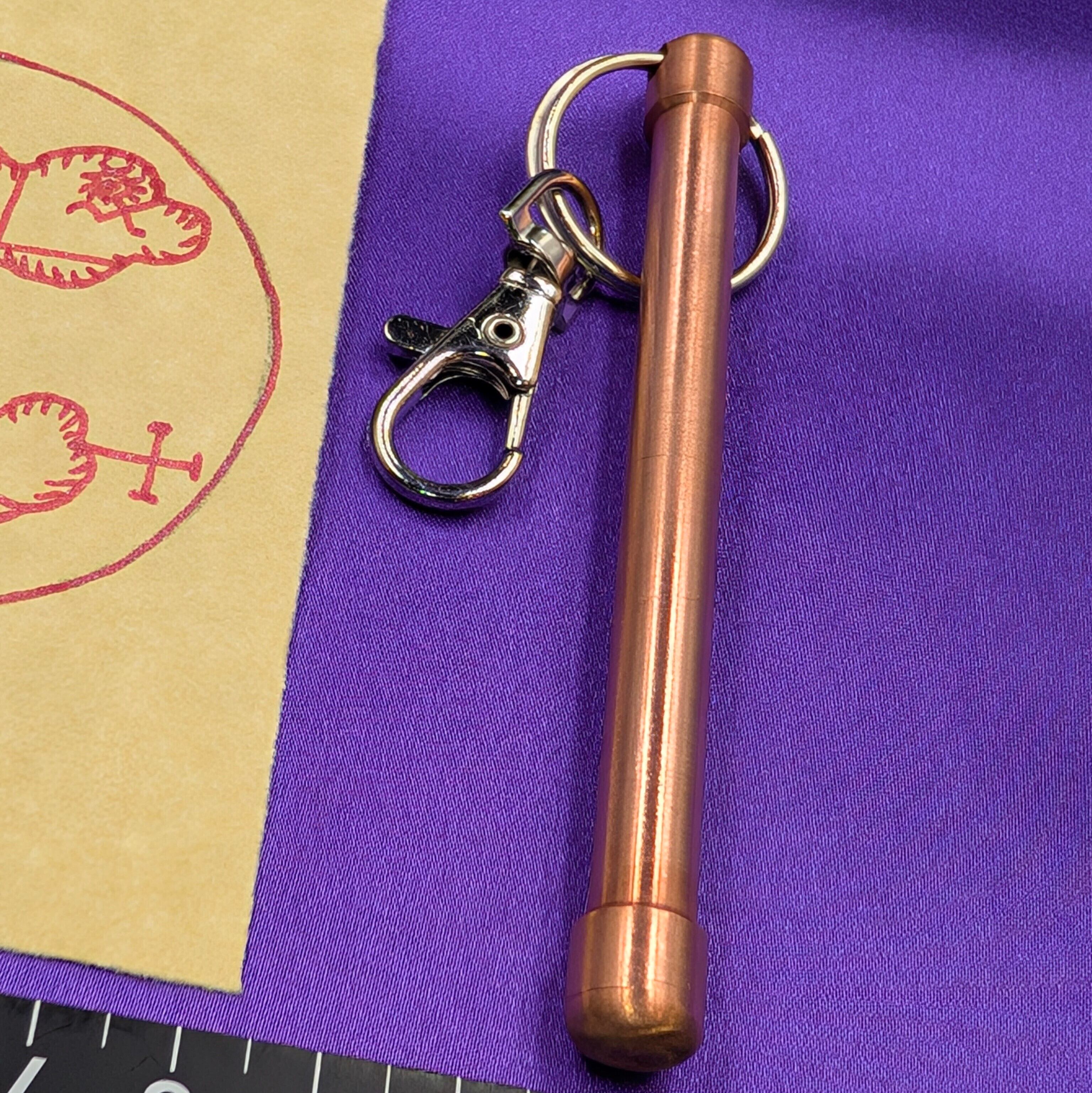 儀式によって準備した処女羊皮紙による円を、チャウンタ(クラウネク)の印章を3つ。それから全ての羊皮紙を高い場所へと置いて、純銅製の杖を掲げながら、以下の様に唱えよ。