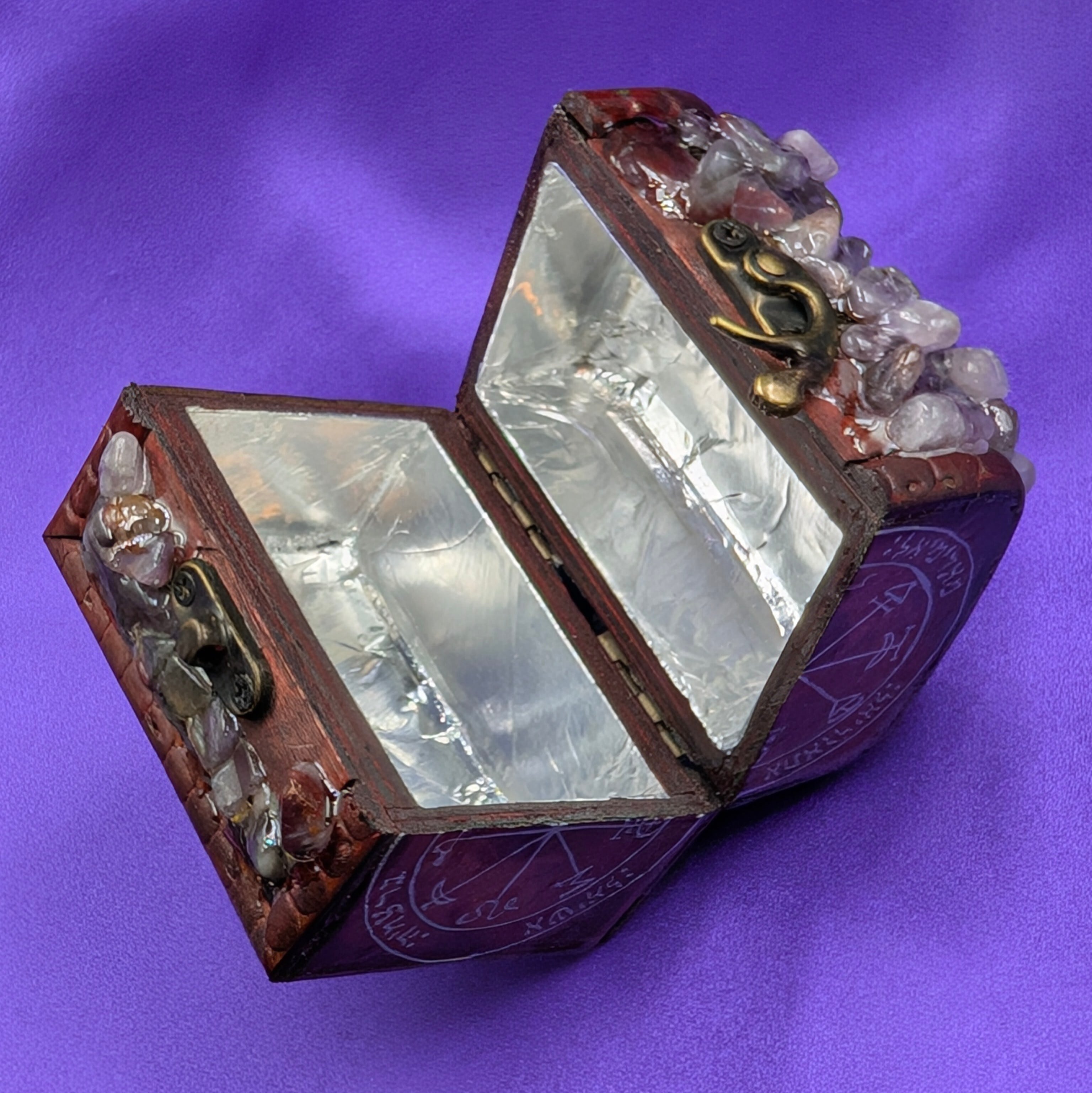使用例∶ボックスにアクセサリーや願いを書いた紙を入れ、そのアクセサリーを身につける 魔法の力の充填 電気石か水晶の極小さな欠片をボックスに入れるとオルゴンエネルギーが発生。(電気石の欠片付属致します)オルゴン振動発生の理論は水晶振動子と同様