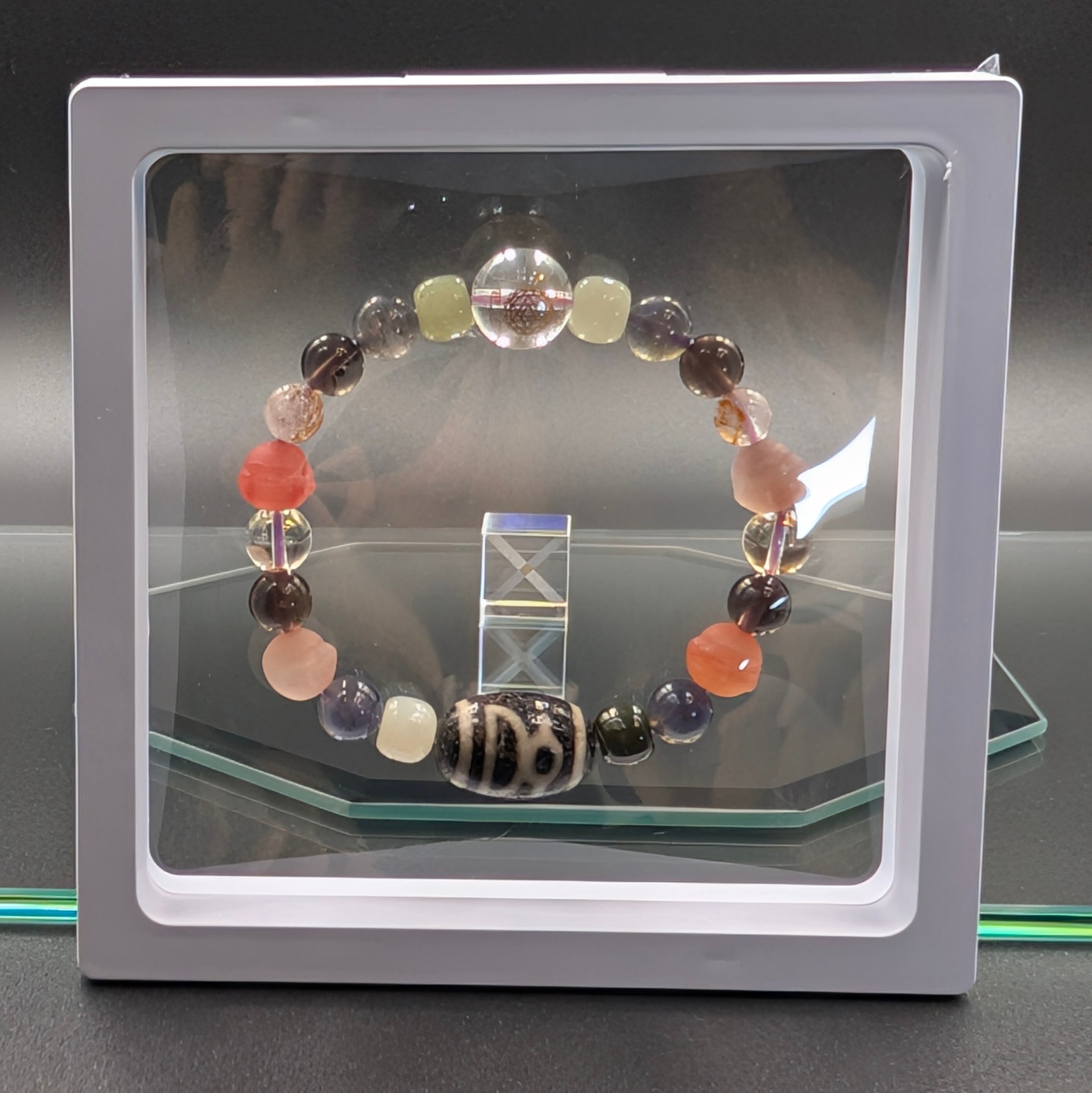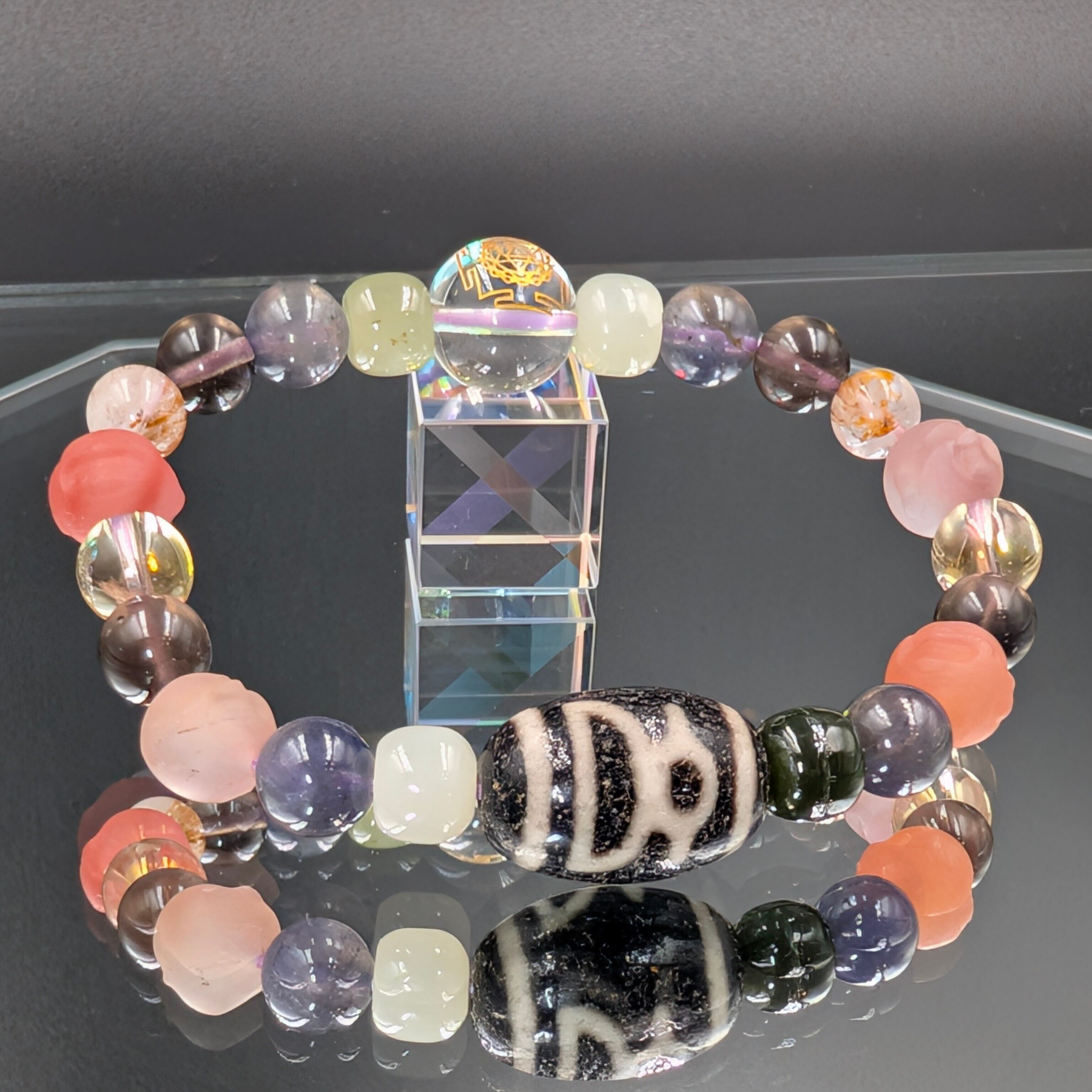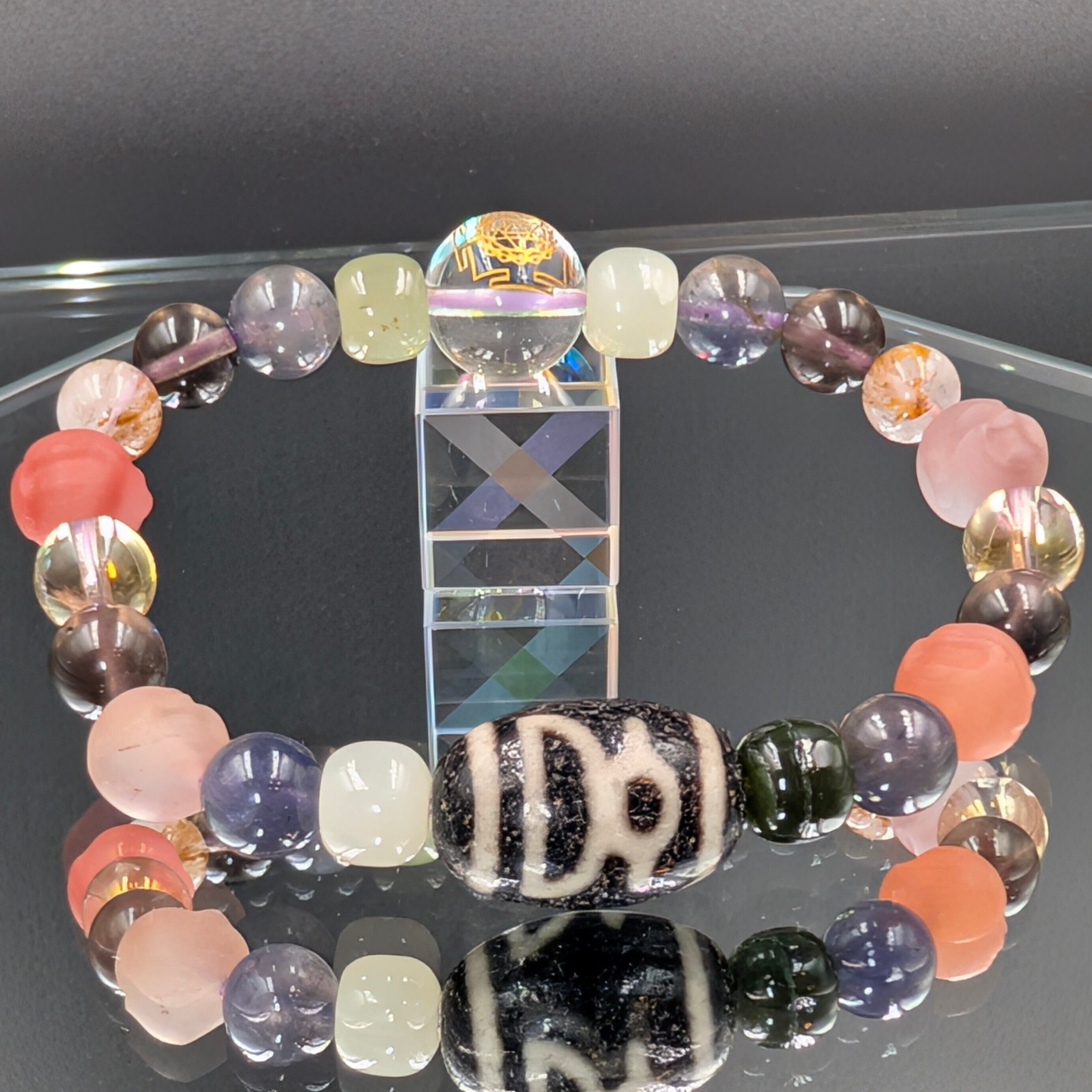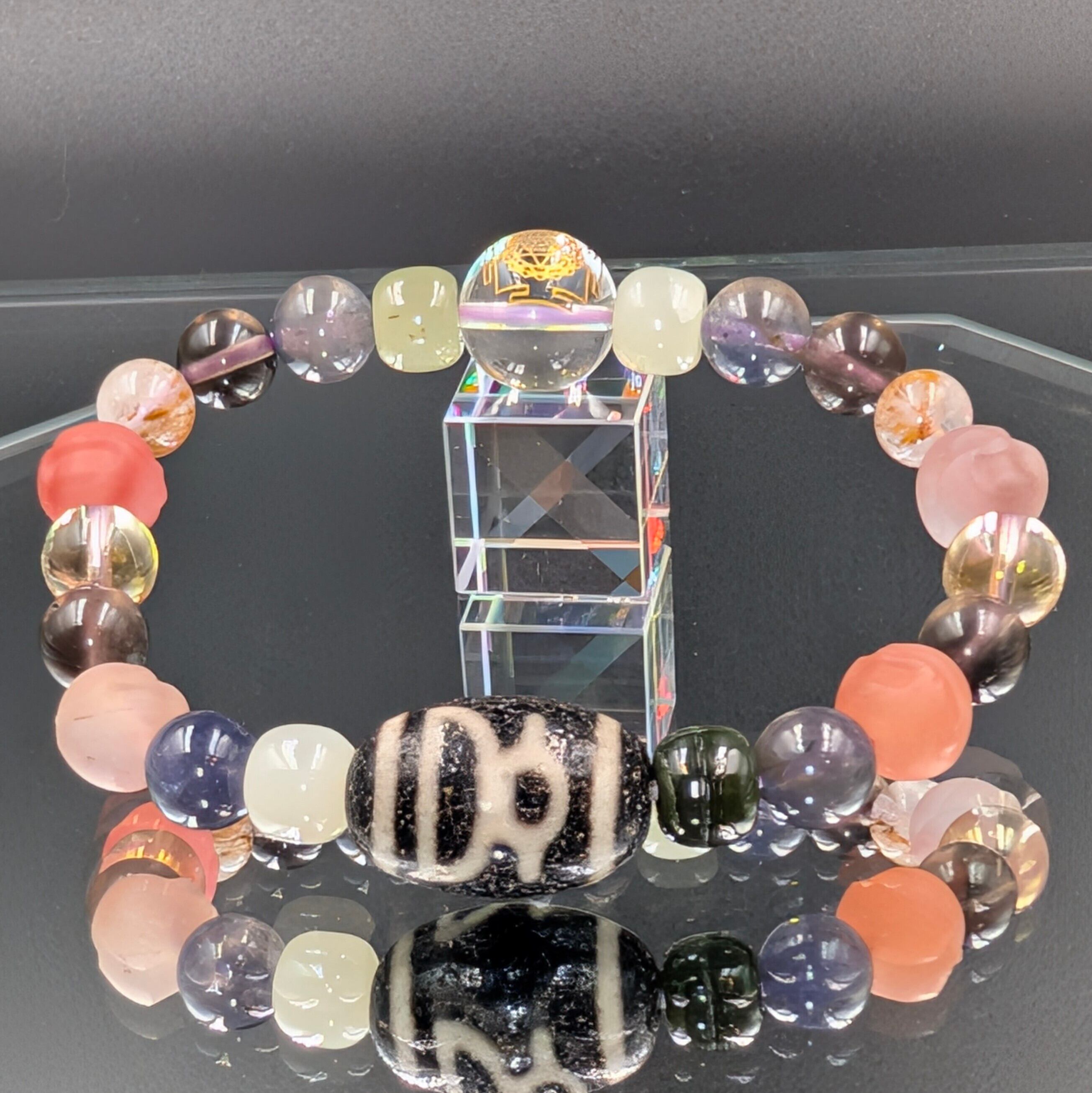 そして、この腕輪を締めくくるのが【神聖幾何学模様ヤントラ金彫り水晶】