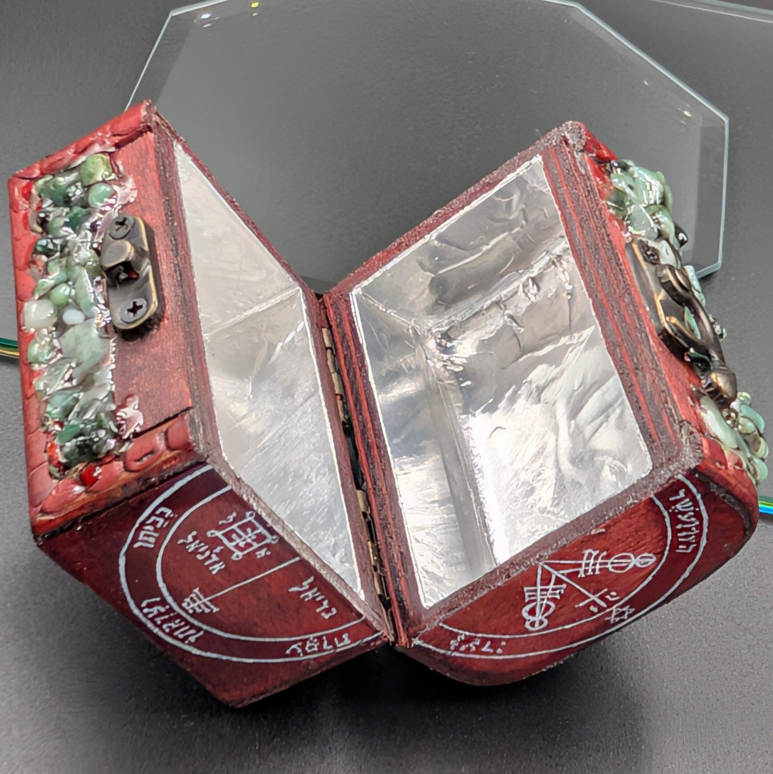 使用例∶ボックスにアクセサリーや願いを書いた紙を入れ、そのアクセサリーを身につける 魔法の力の充填 電気石か水晶の極小さな欠片をボックスに入れるとオルゴンエネルギーが発生(電気石の欠片付属致します)