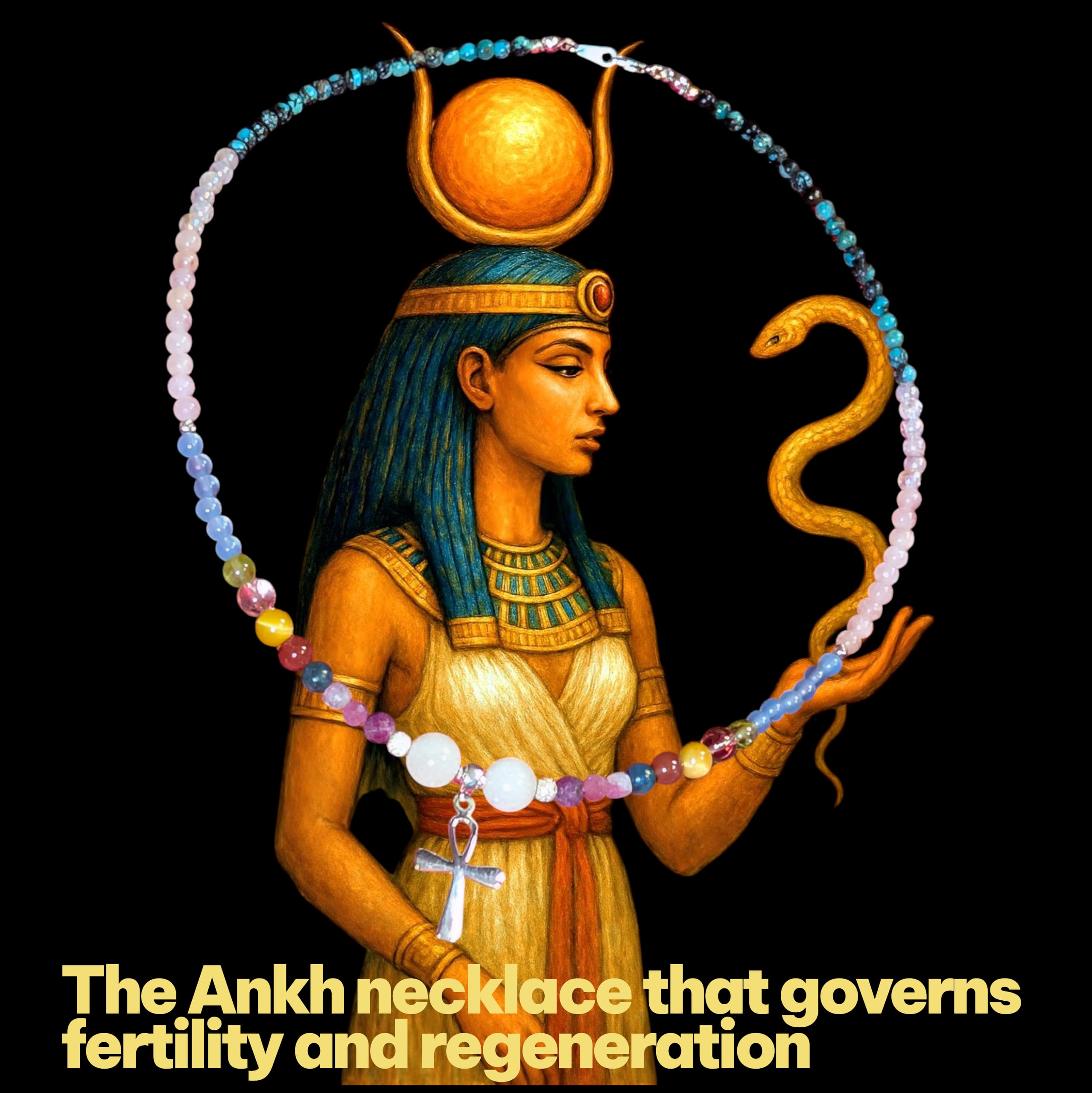 *イシス: 古代エジプトの女神イシスは、夫オシリスを復活させたことから、復活と再生の象徴とされています。イシスの名を冠するこのネックレスは、困難な状況からの脱却、停滞からの脱却をサポートし、新たな可能性を開く力を与えてくれる