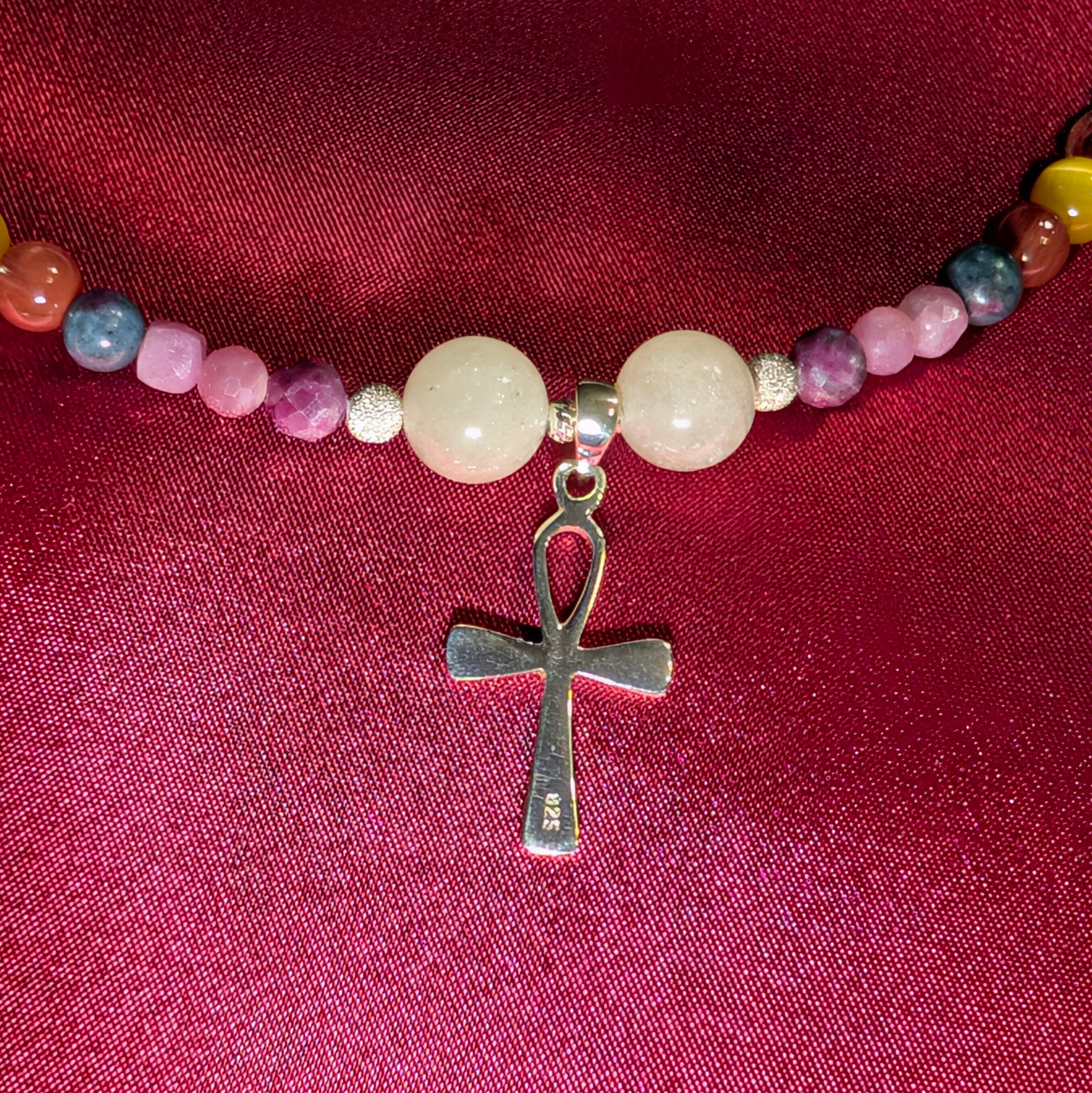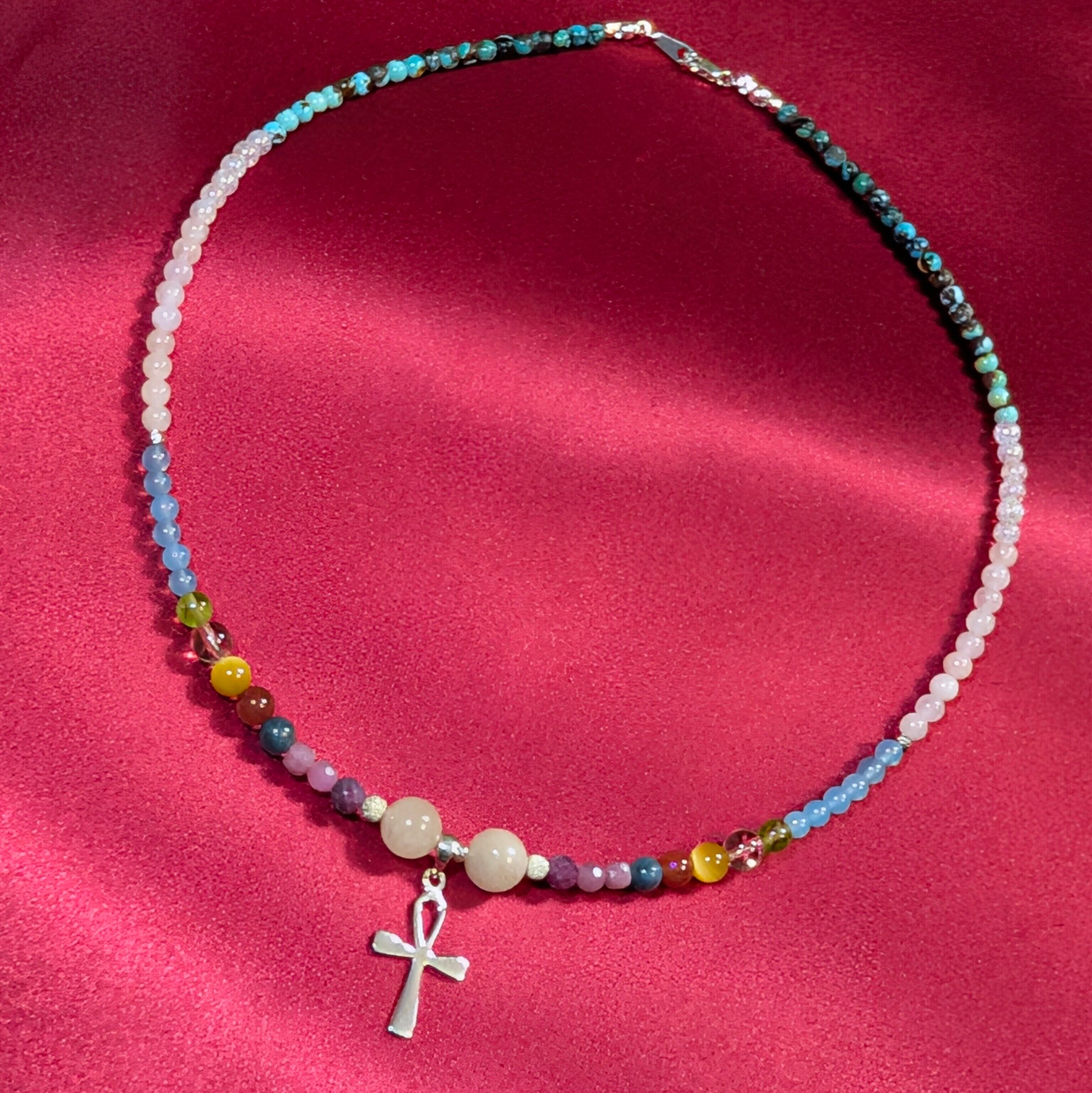 *アンク十字: 古代エジプトの「生命の象徴」であるアンクは、死からの復活、新たな始まりを象徴します。このネックレスを身に着けることで、過去の失敗やトラウマを乗り越え、自己再生を促す効果が期待