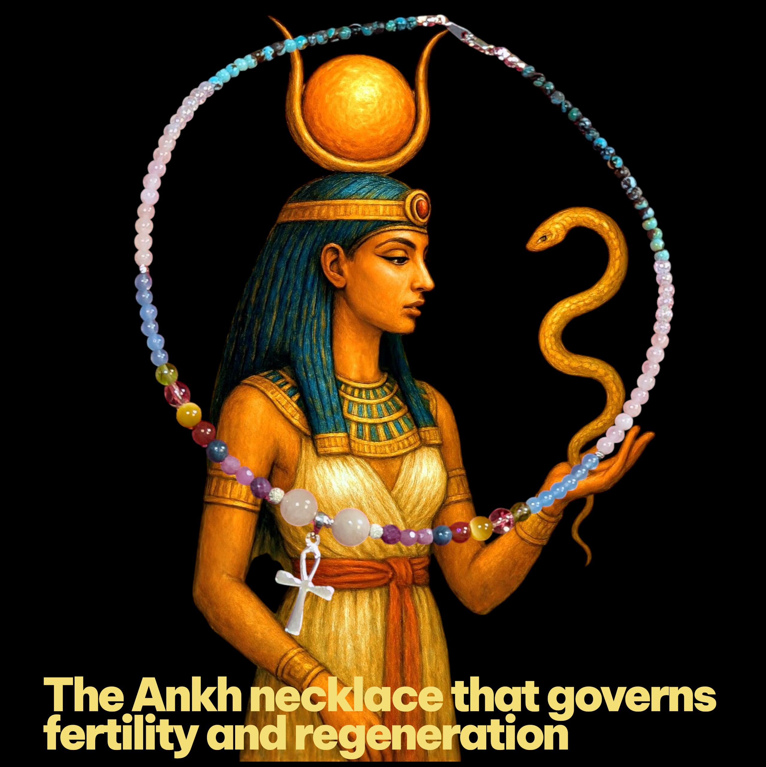 *イシス: 古代エジプトの女神イシスは、夫オシリスを復活させたことから、復活と再生の象徴とされています。イシスの名を冠するこのネックレスは、困難な状況からの脱却、停滞からの脱却をサポートし、新たな可能性を開く力を与えてくれる