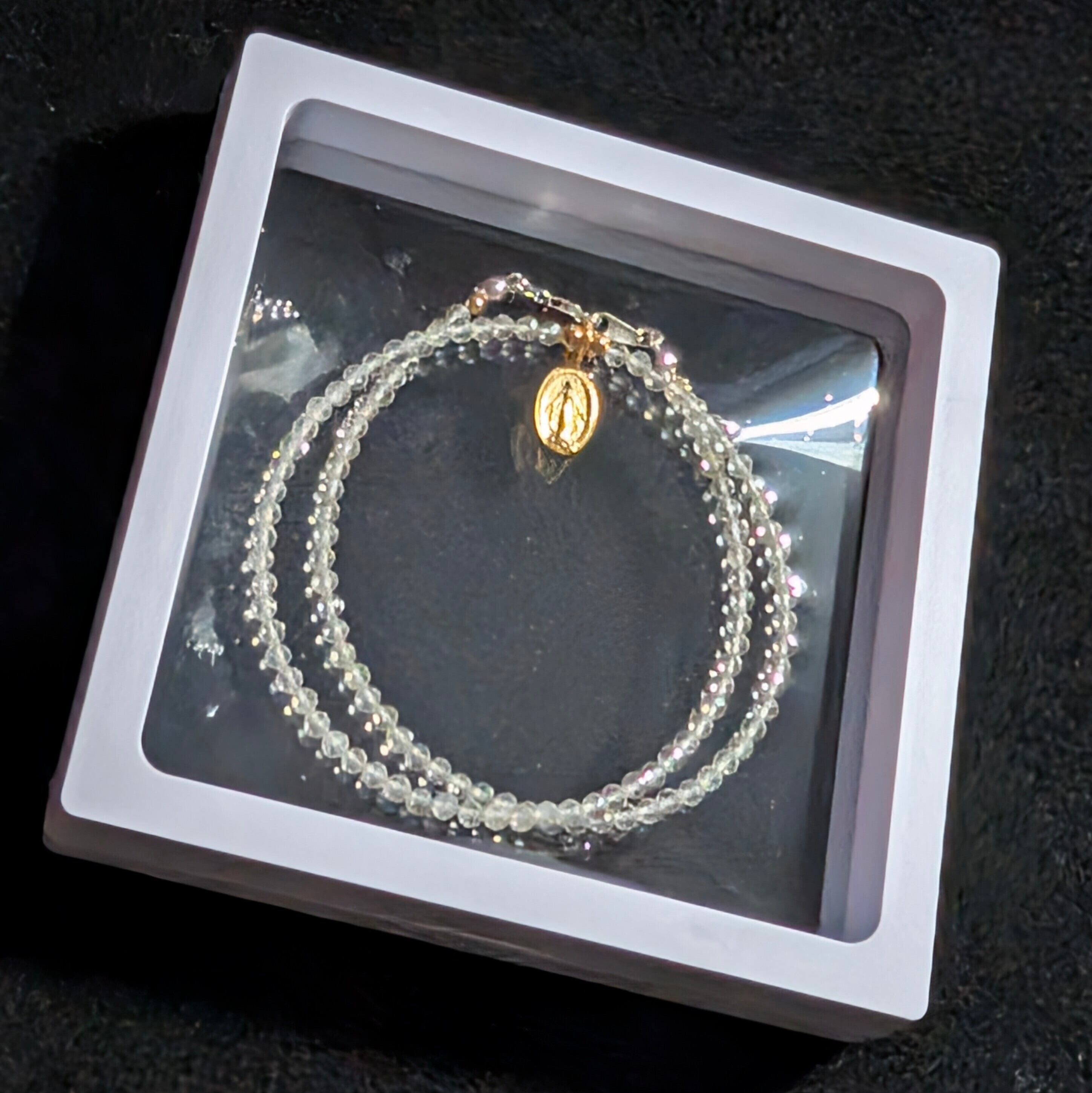 さらに、このネックレスには聖母マリアの加護を宿す「不思議のメダイ」を組み合わせました。
