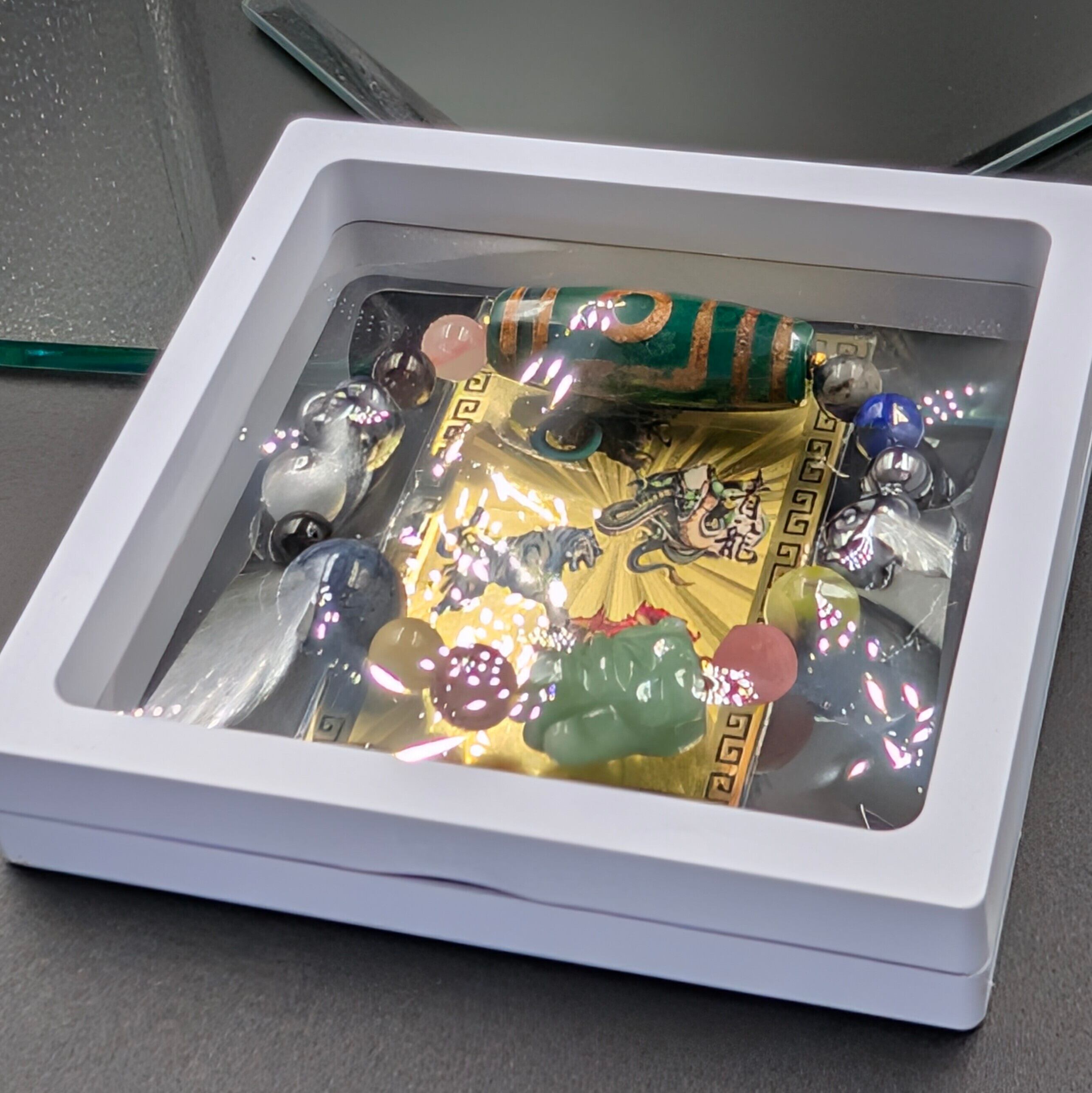 実際にこの天珠を身につけた人物が飛行機事故から奇跡的に生還した逸話もあり、“生命を護る珠”として高僧が守護に用いた。