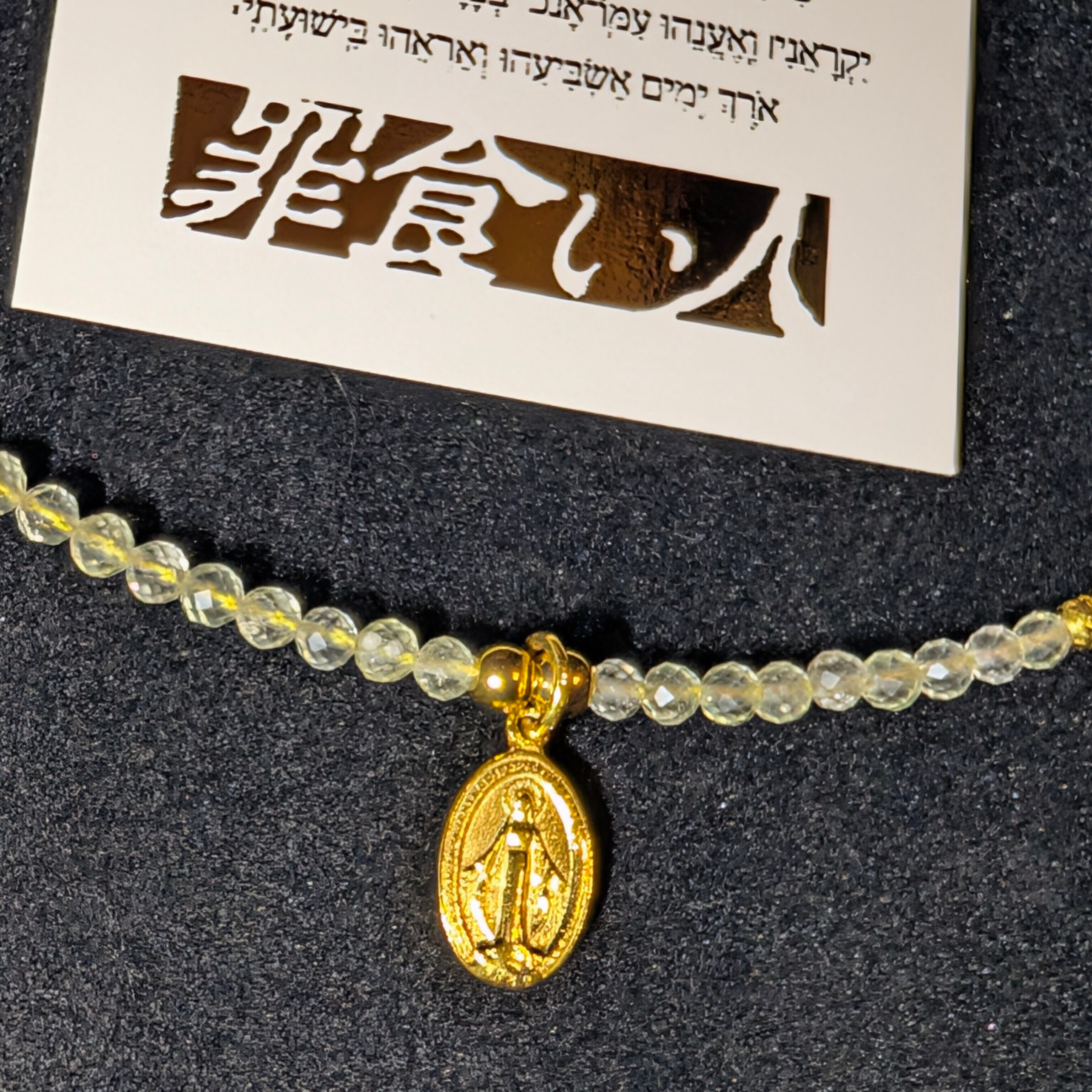 人を蘇らせる奇跡の言葉「タリタクム」。その名を冠した特別なネックレスに、宇宙起源の神秘石リビアングラスと、数々の奇跡を呼んできた「不思議のメダイ」が一つに結ばれました。