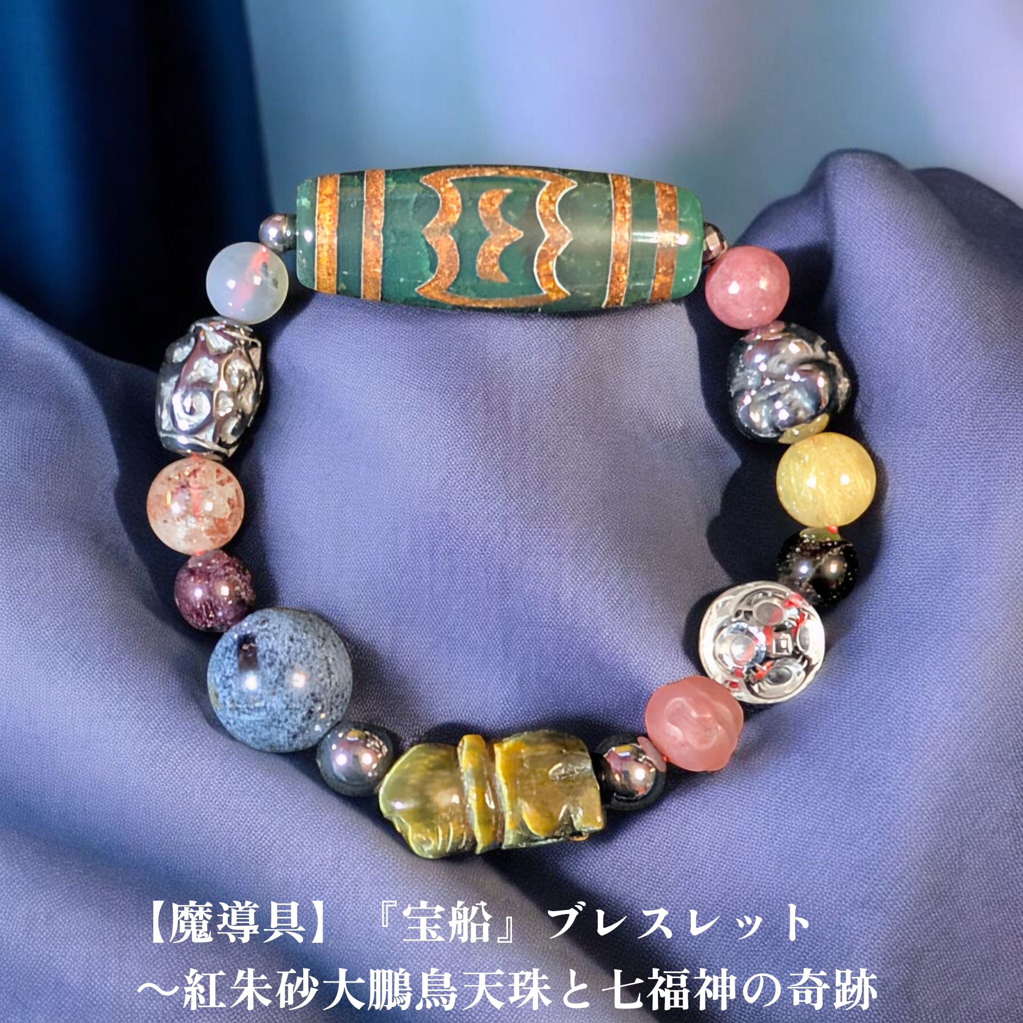 ※一点物【魔導具】『宝船(たからぶね)』ブレスレット ~紅朱砂大鵬鳥天珠と七福神の奇跡~