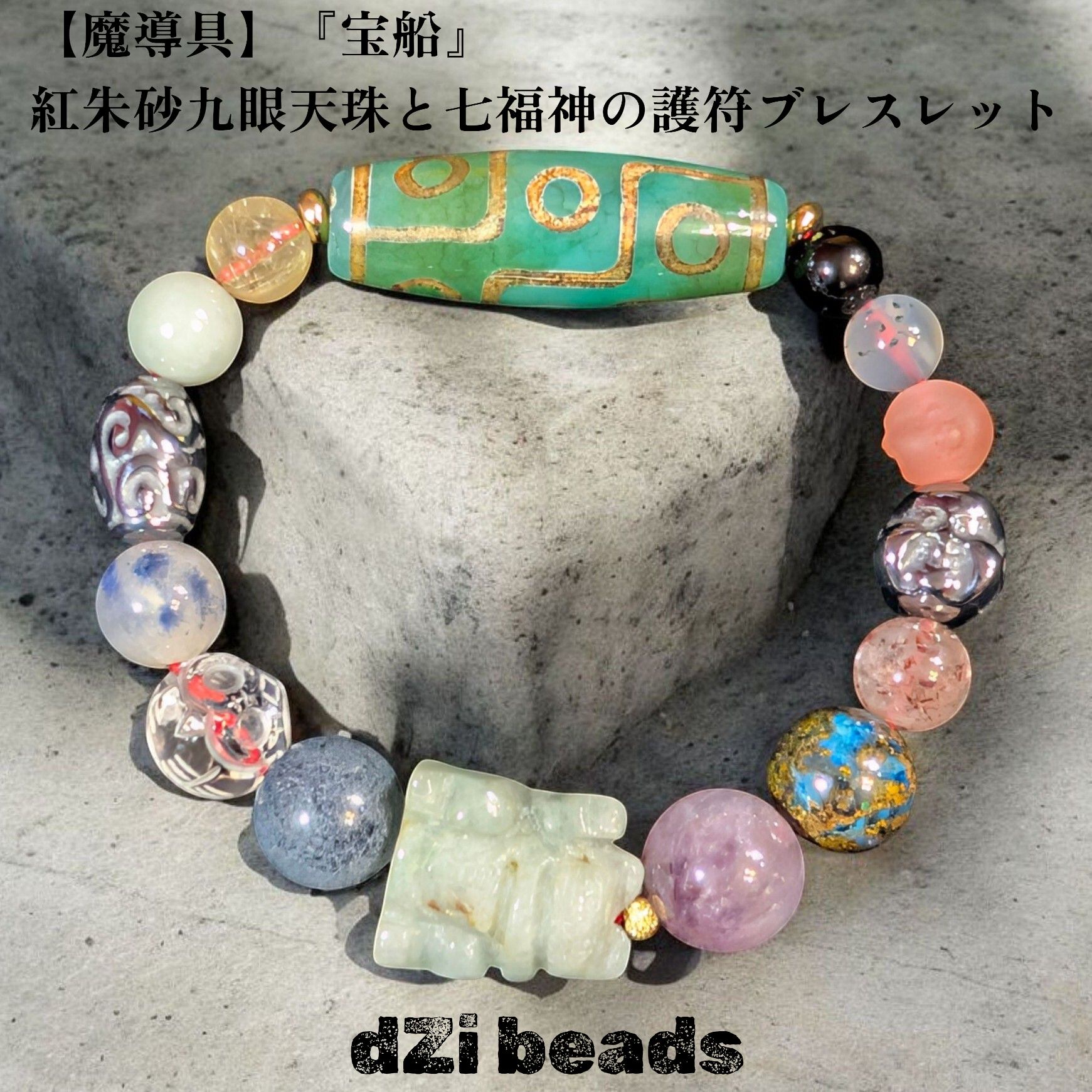 ⑧※一点物【魔導具】『宝船』紅朱砂九眼天珠と七福神の護符ブレスレット