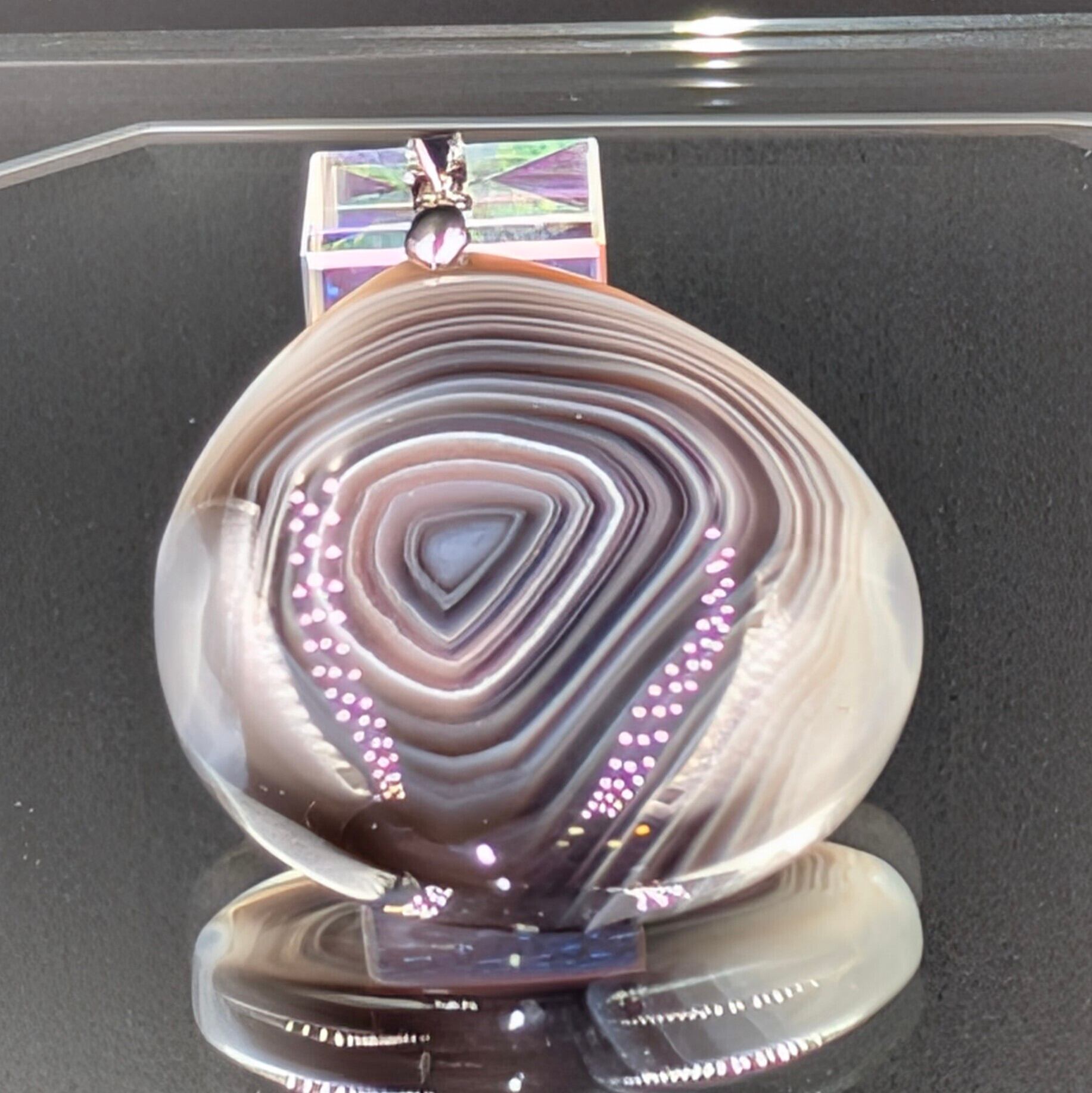 ボツワナの大地で悠然と育まれた天然縞瑪瑙〈ボツワナアゲート〉は、柔らかなピンクやグレー、クリームの層が幾重にも重なり、まるで宇宙の輪を描くかのような“天然輪廻眼”を宿す奇跡の石。見る角度によって浮かび上がる眼のような模様は、前世と現世、そして来世を繋ぐ“魂の記憶の門”とされ、持つ者の運命を静かに導くと伝えられています。