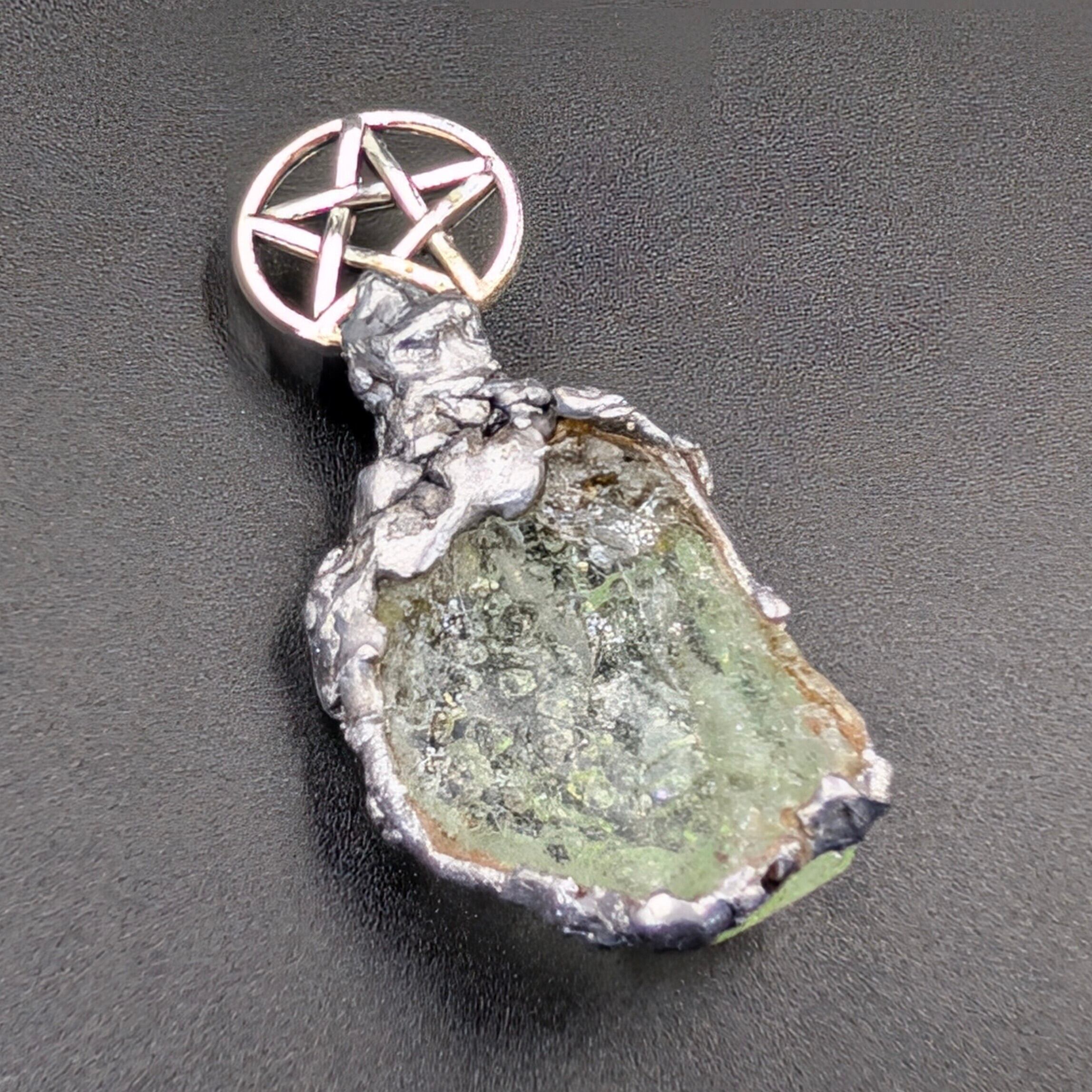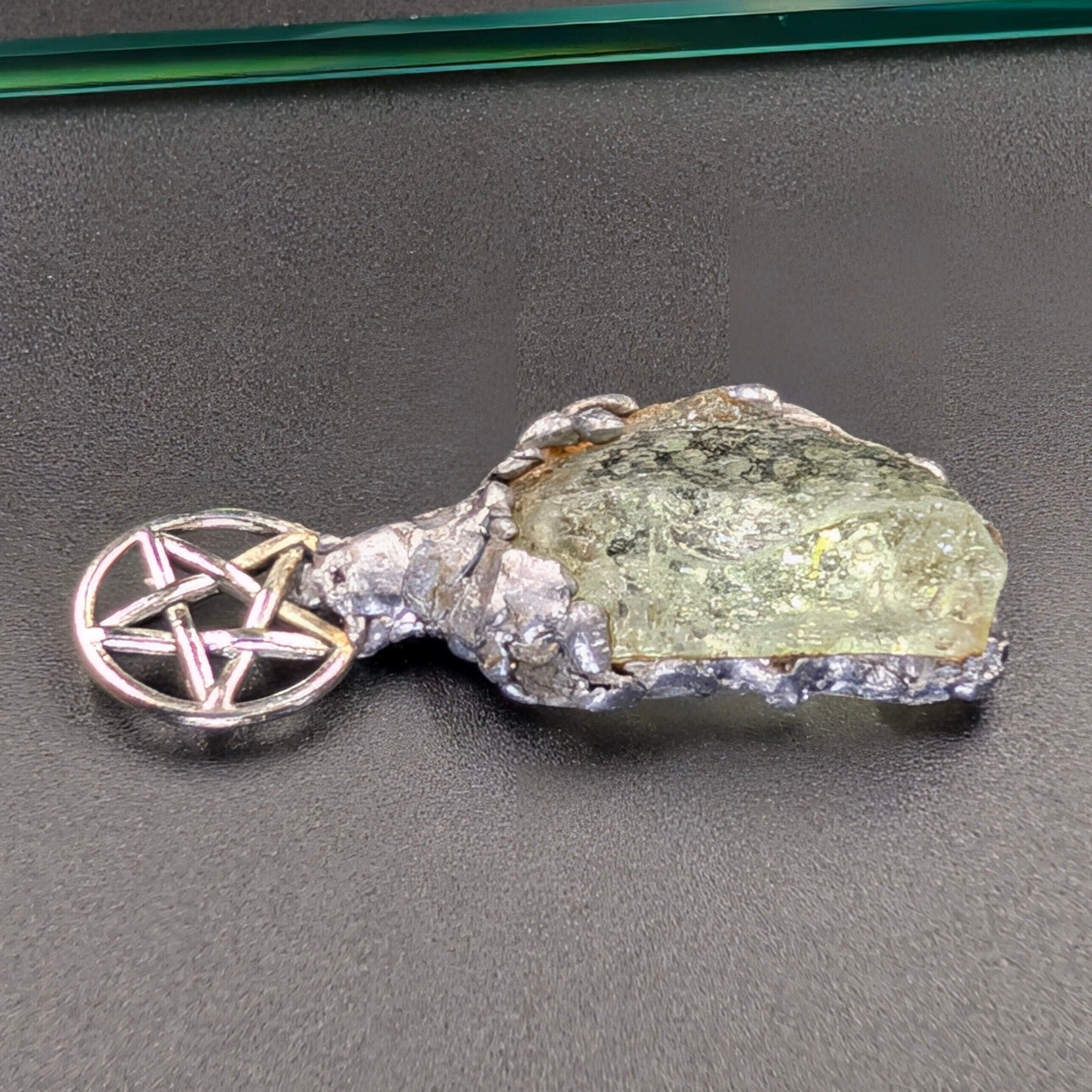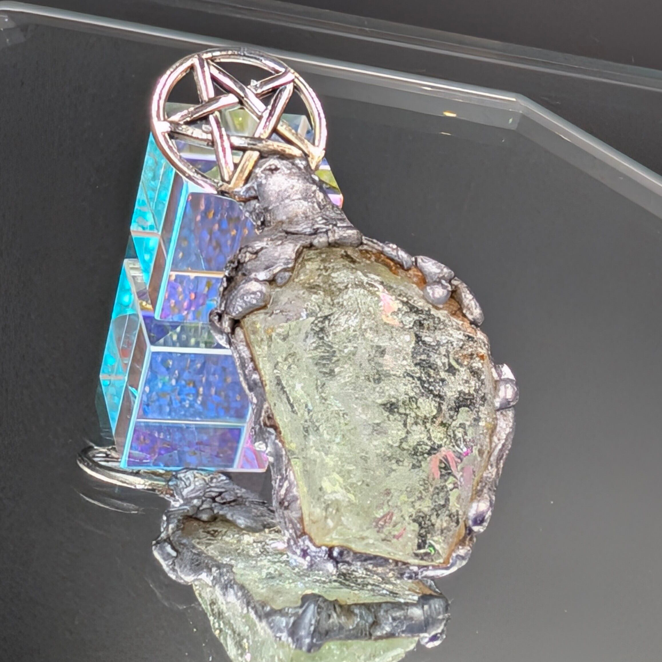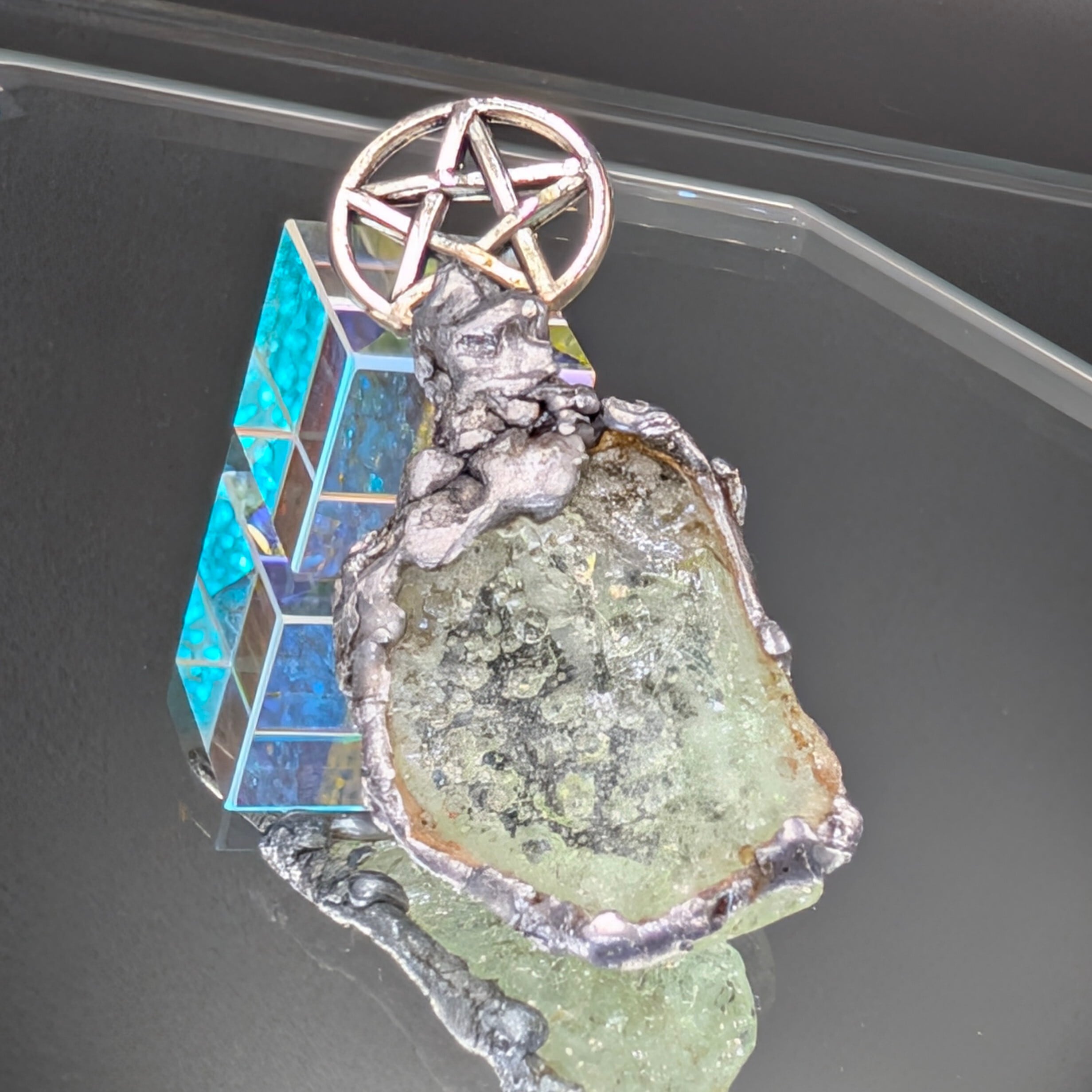 金具には銅・錫・アルミニウムを組み合わせ、アンダラクリスタルを古代錬金術における**形態形成場の導電性「金属の魔力循環」**で包みます。
