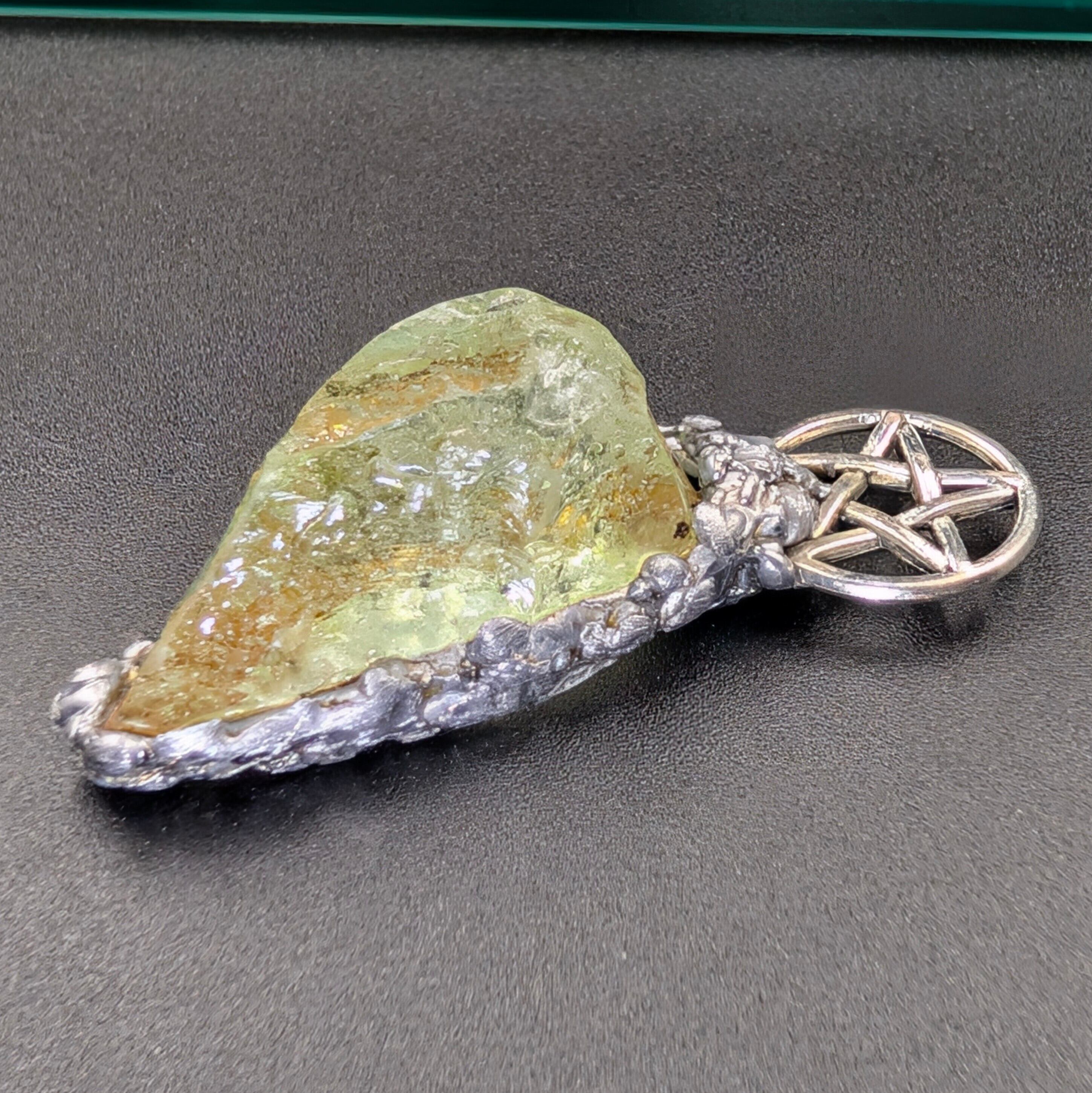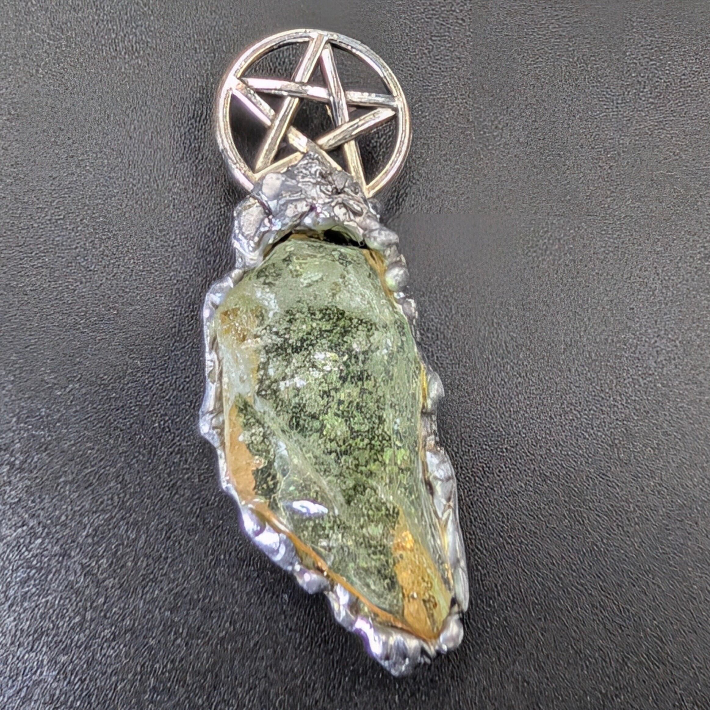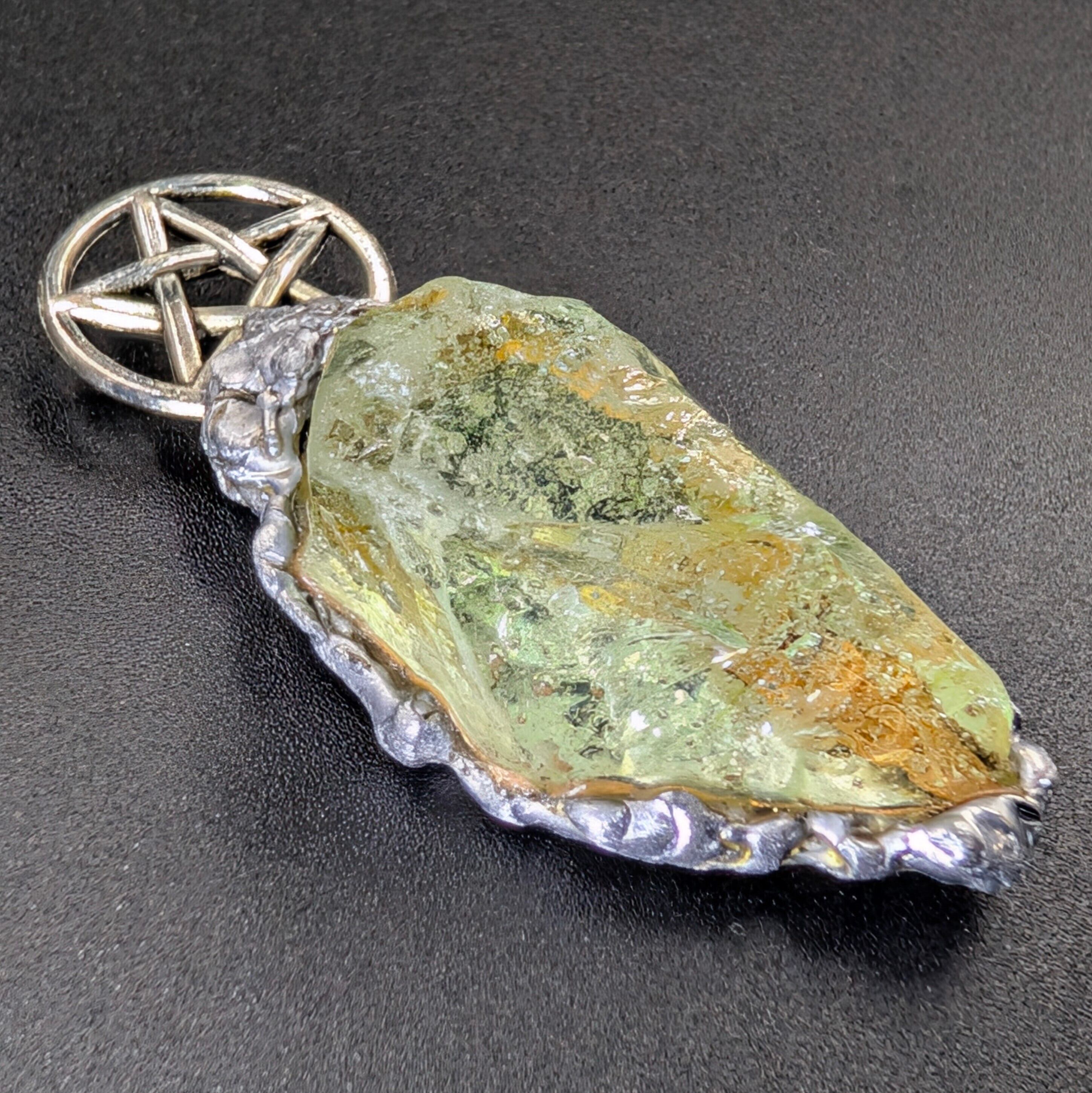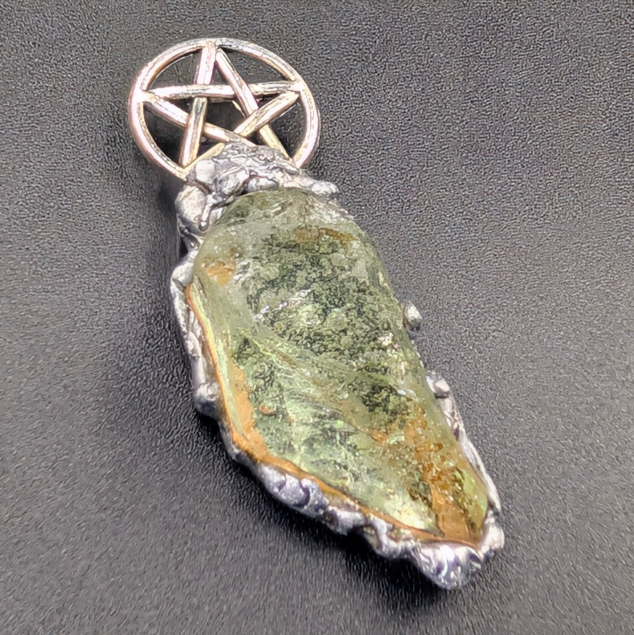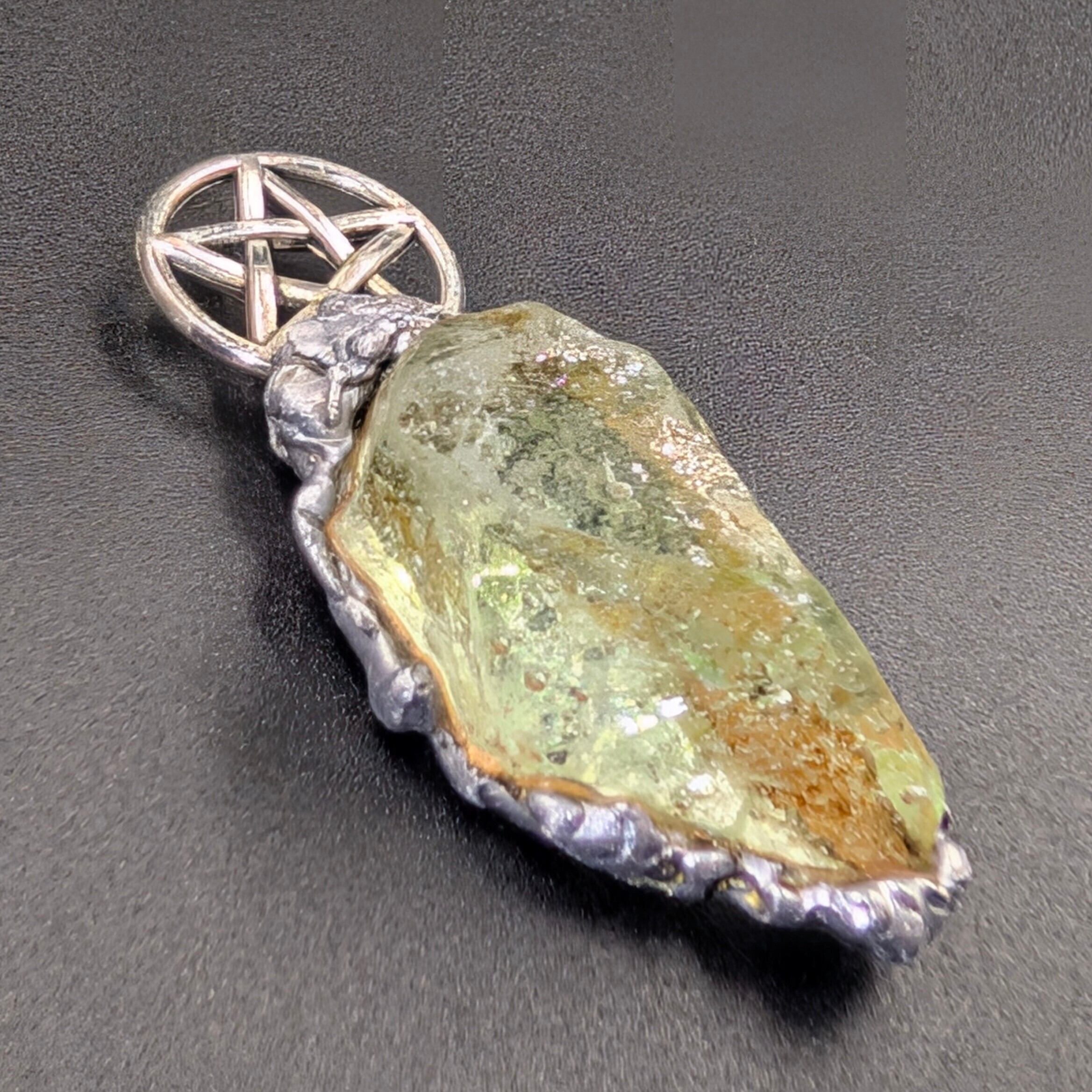 金具には銅・錫・アルミニウムを組み合わせ、アンダラクリスタルを古代錬金術における**形態形成場の導電性「金属の魔力循環」**で包みます。