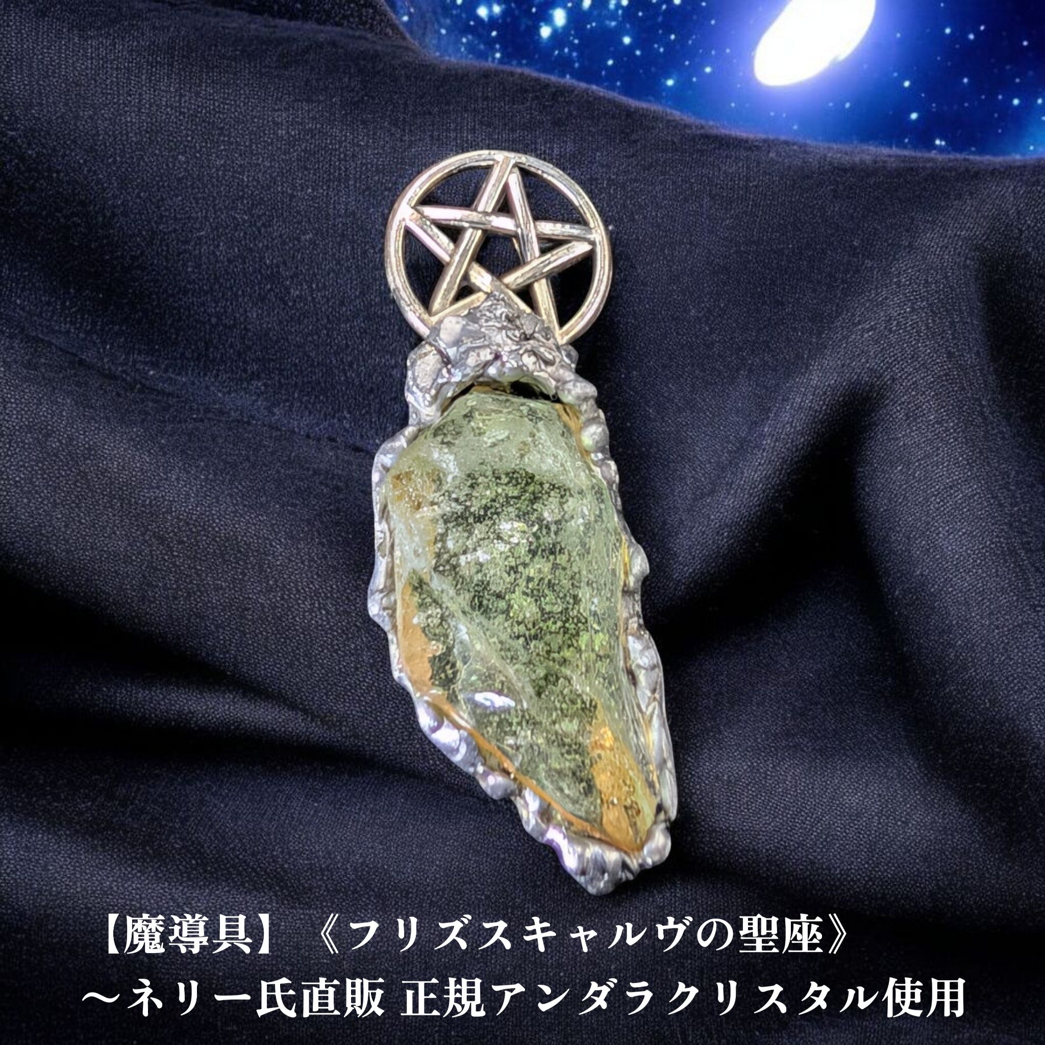 その視座から全世界を見渡す叡智と霊視の力を象徴するこの魔導具は、アンダラクリスタル界の正統継承者・ネリー氏直販による正規アンダラを用いた特別な一点です。