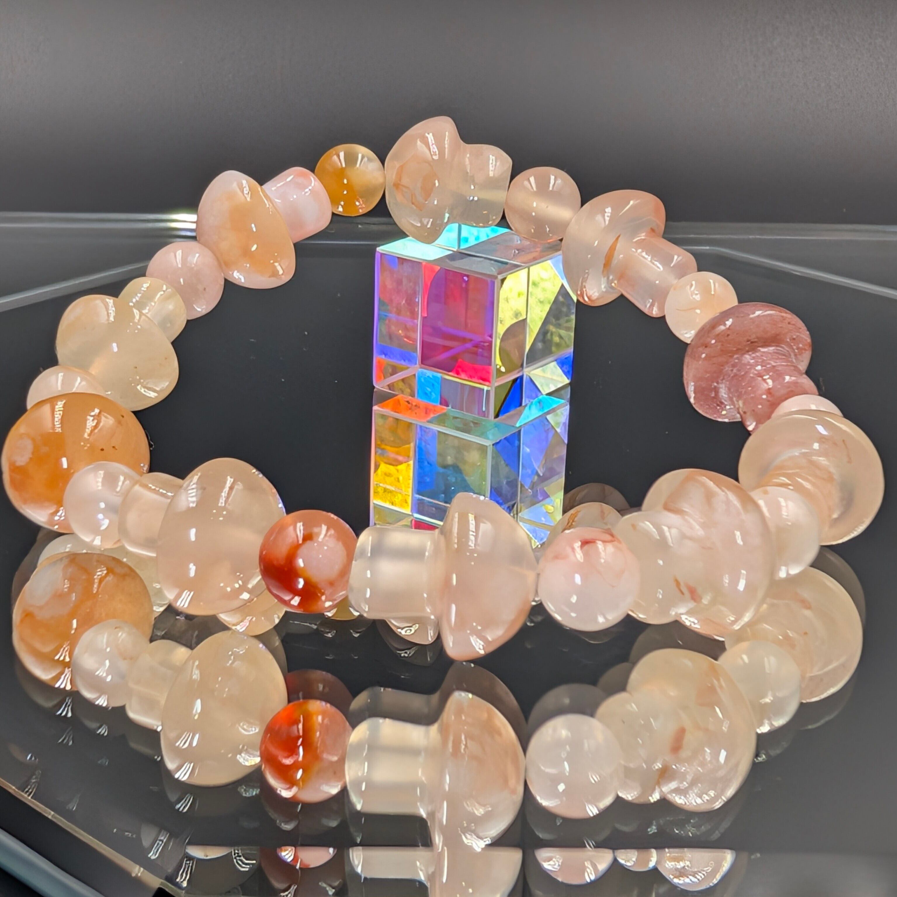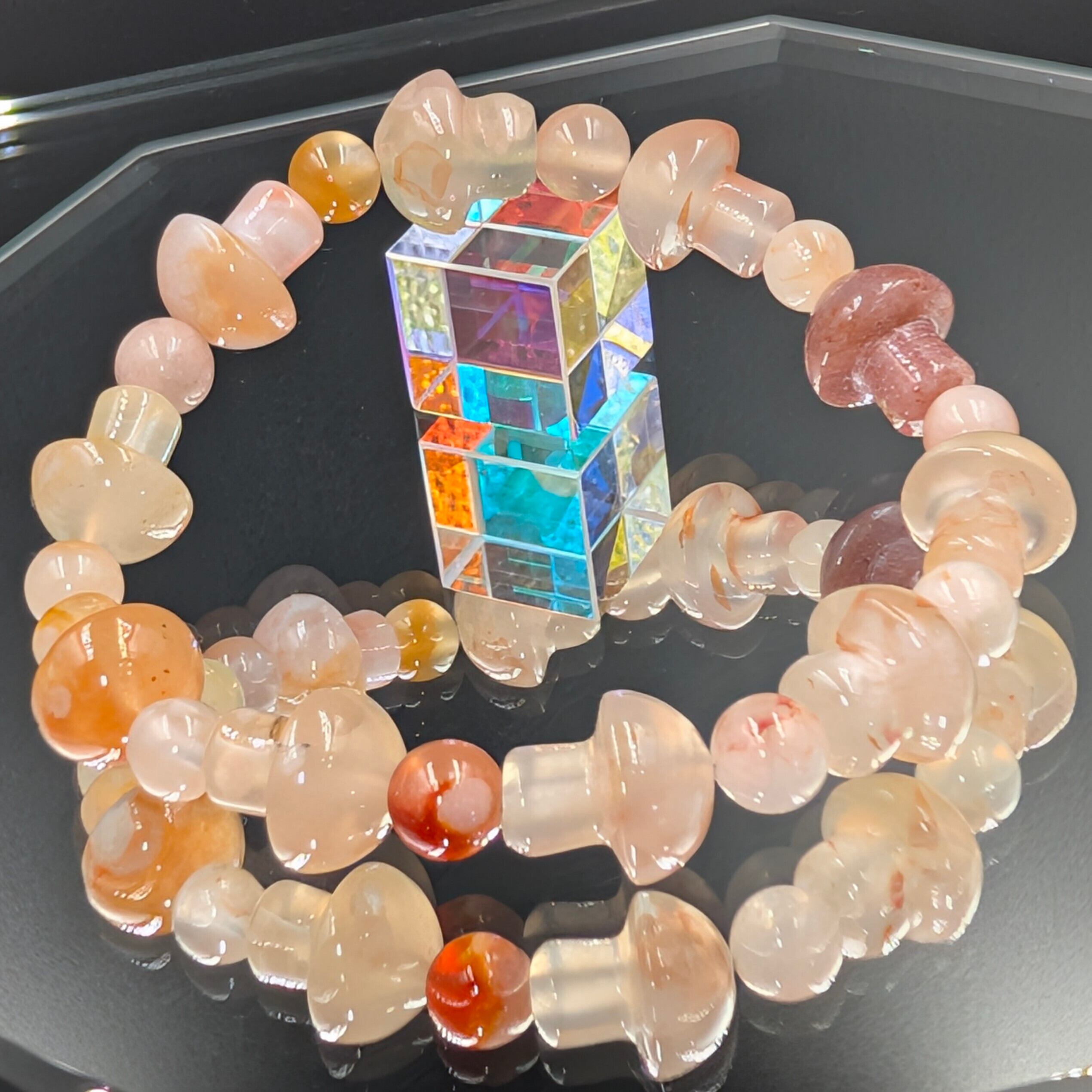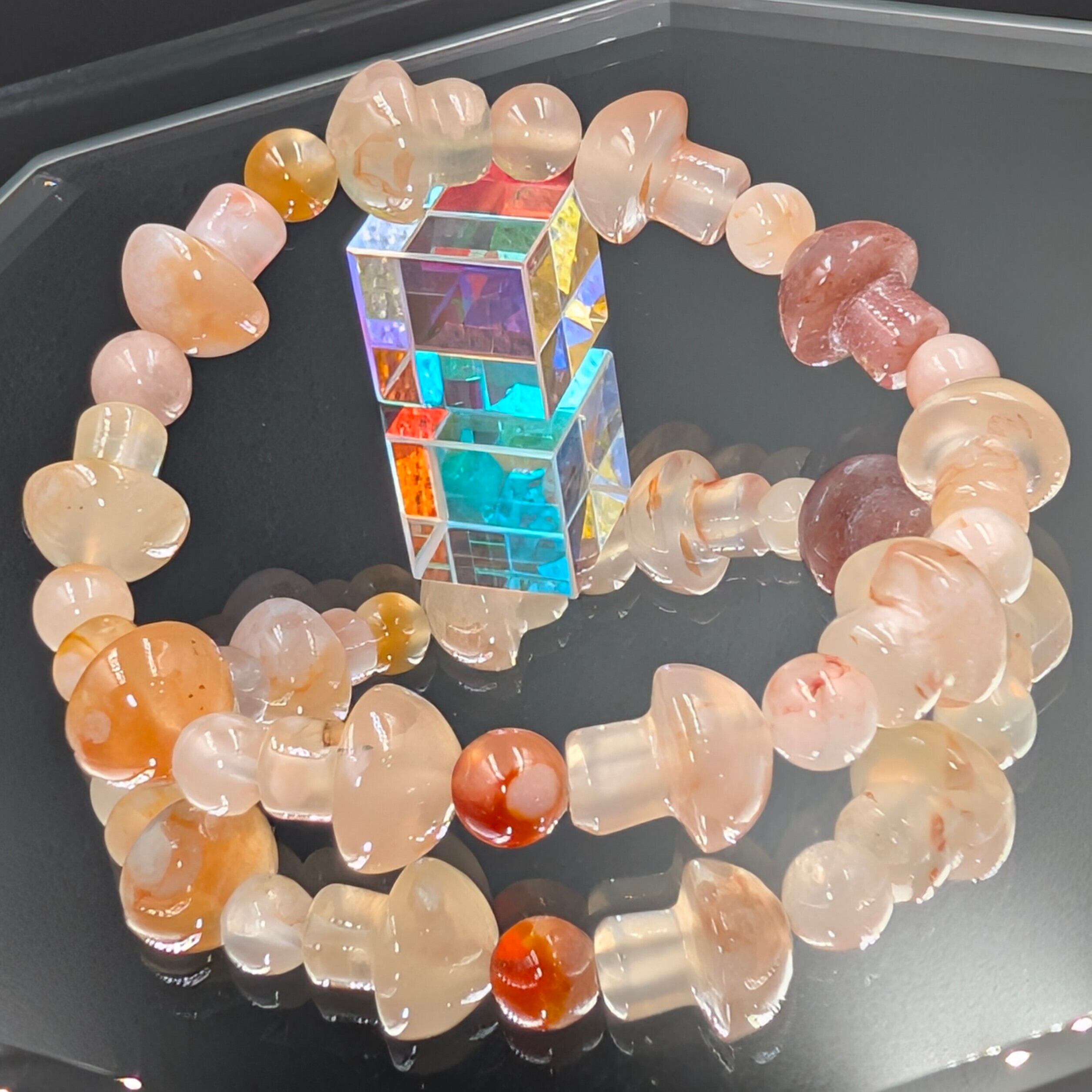 この桜瑪瑙キノコブレスレットは、単なる装飾品ではなく、“運命の再生プログラム”を宿した霊的アクセサリー。