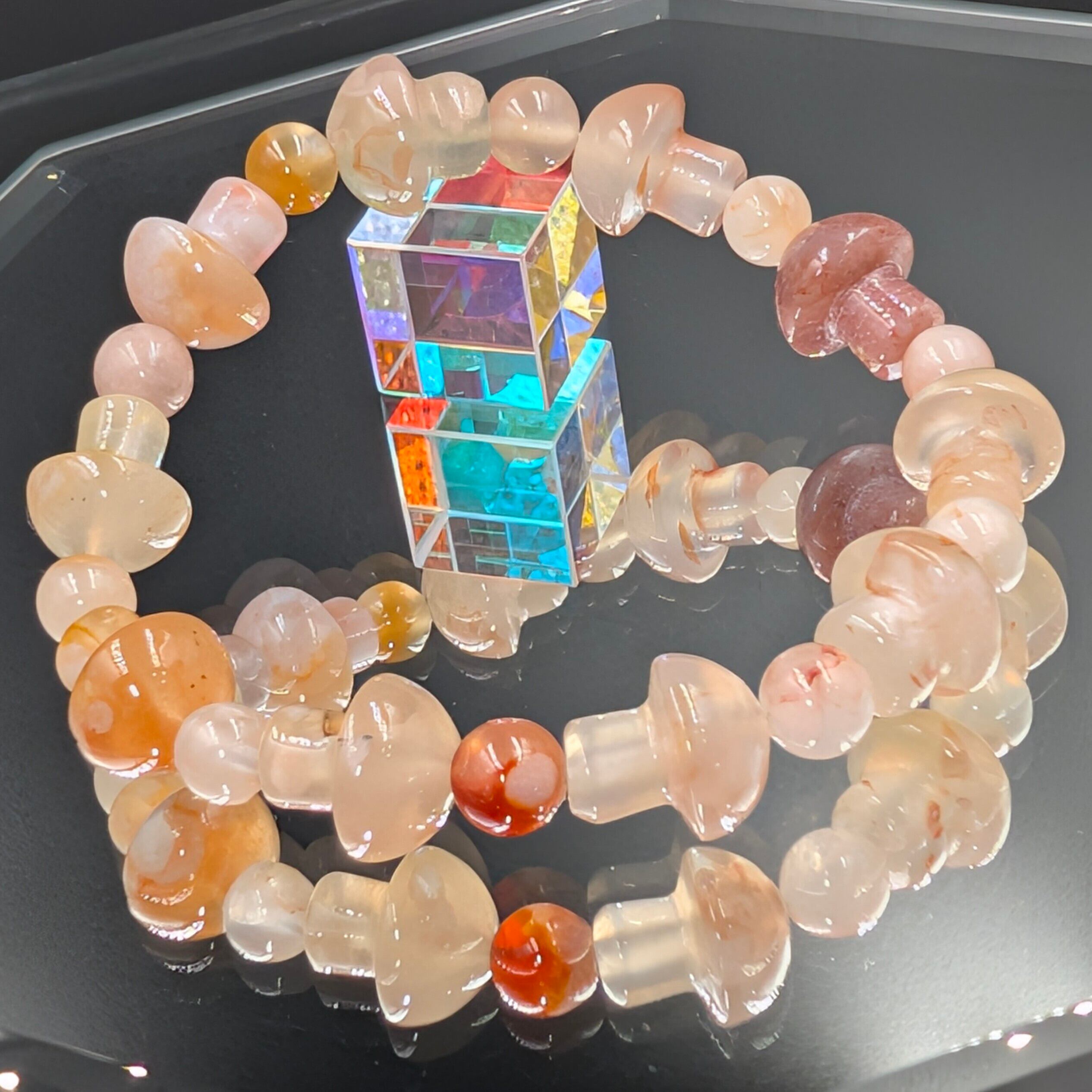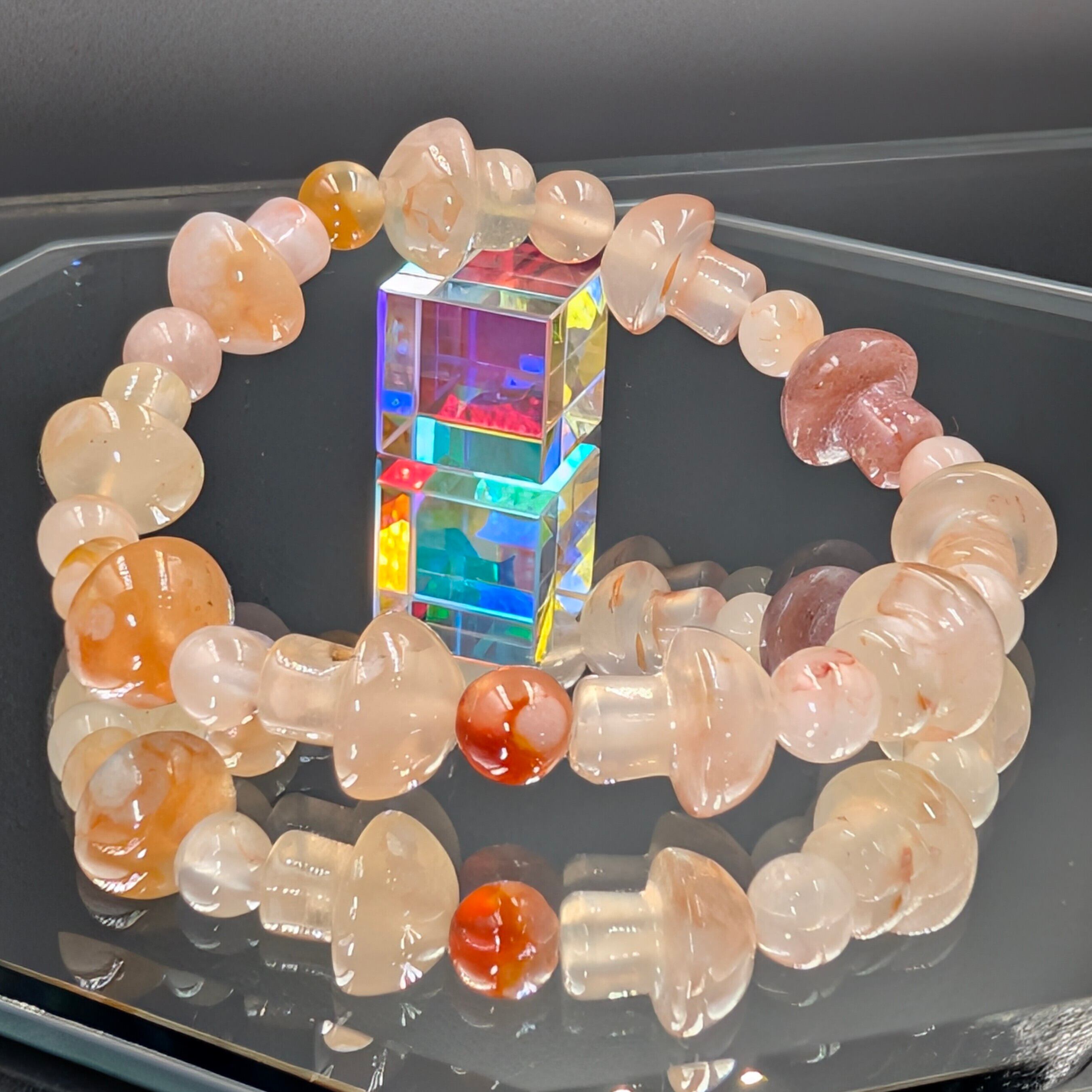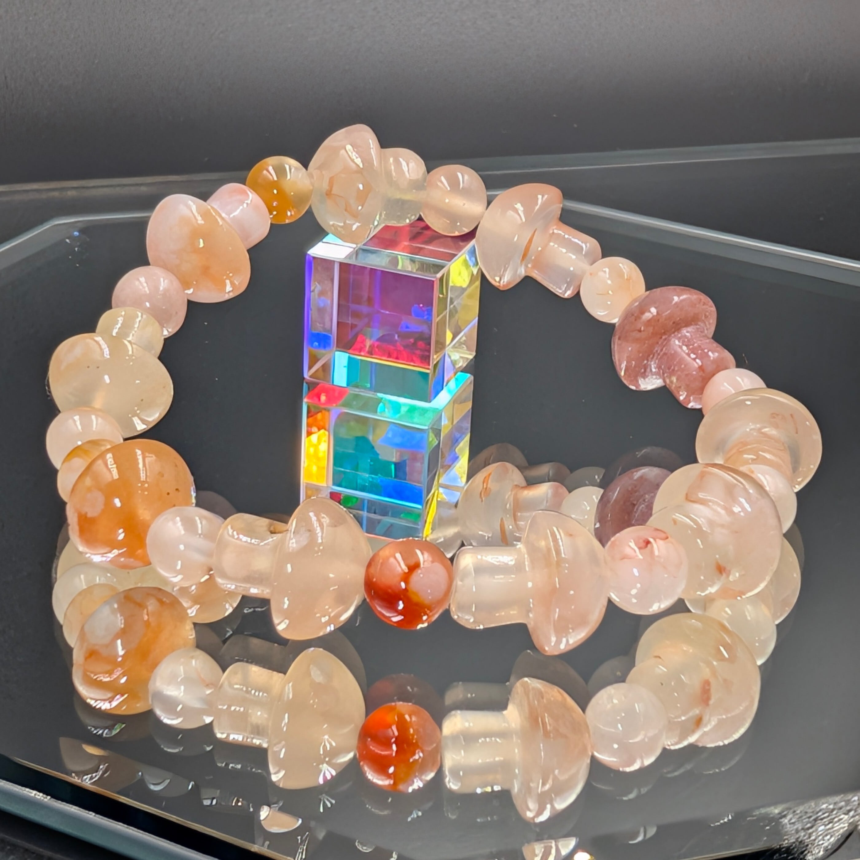 この桜瑪瑙キノコブレスレットは、単なる装飾品ではなく、“運命の再生プログラム”を宿した霊的アクセサリー。