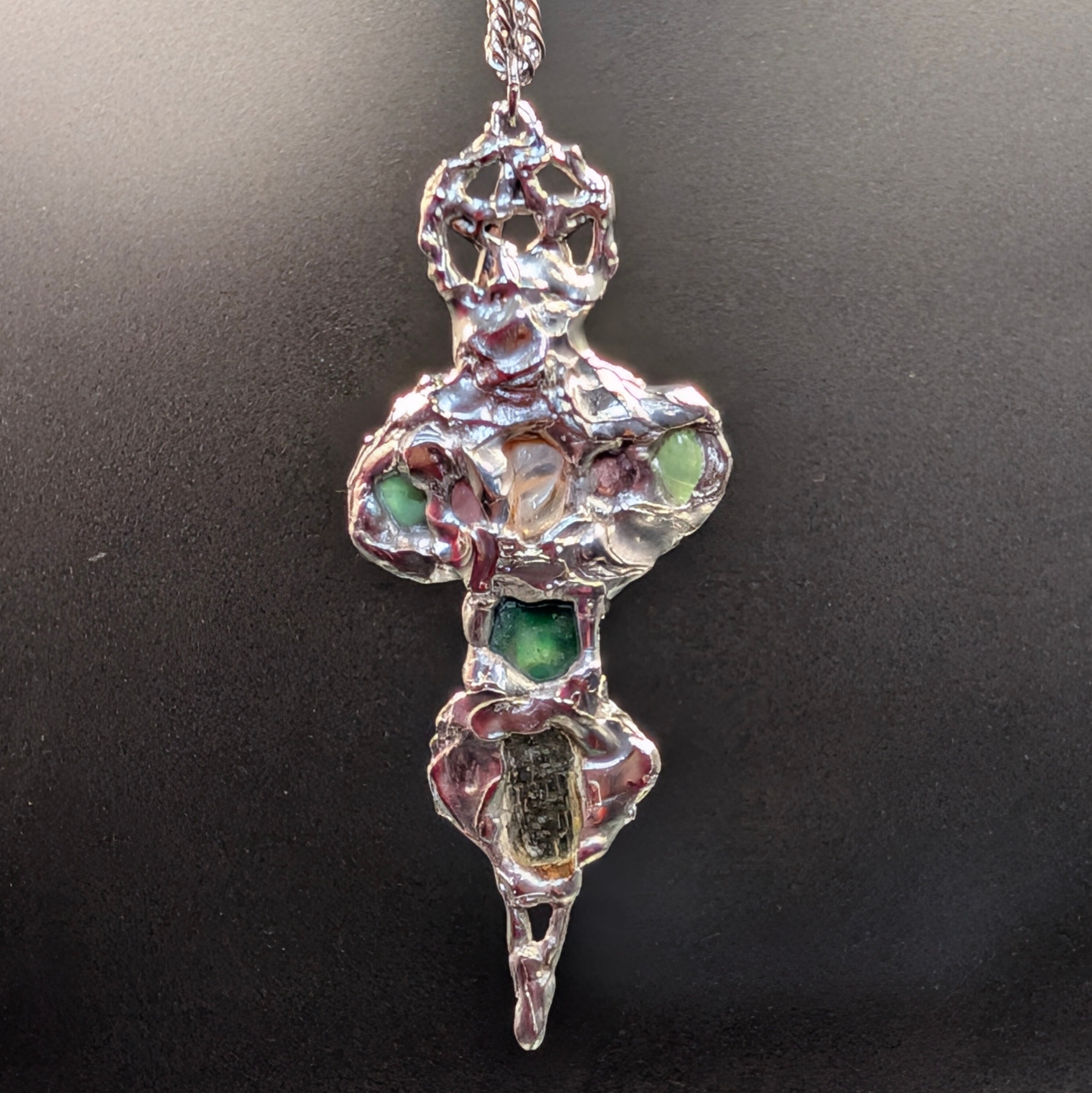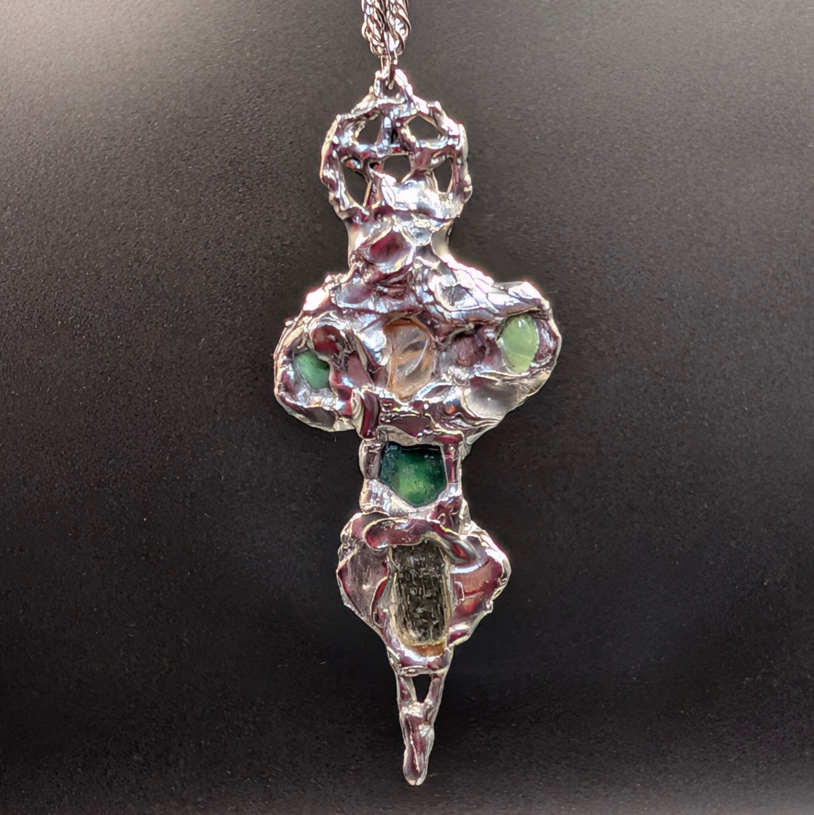 これらの天然石を包む「響金属(レゾナントメタル)」は、あなたの声と意図を電磁振動へ変換する言霊導線。詠唱や願いの言葉に反応し、音・意識波を形態形成場へ転換する圧電素子(ピエゾ特性)として機能します。