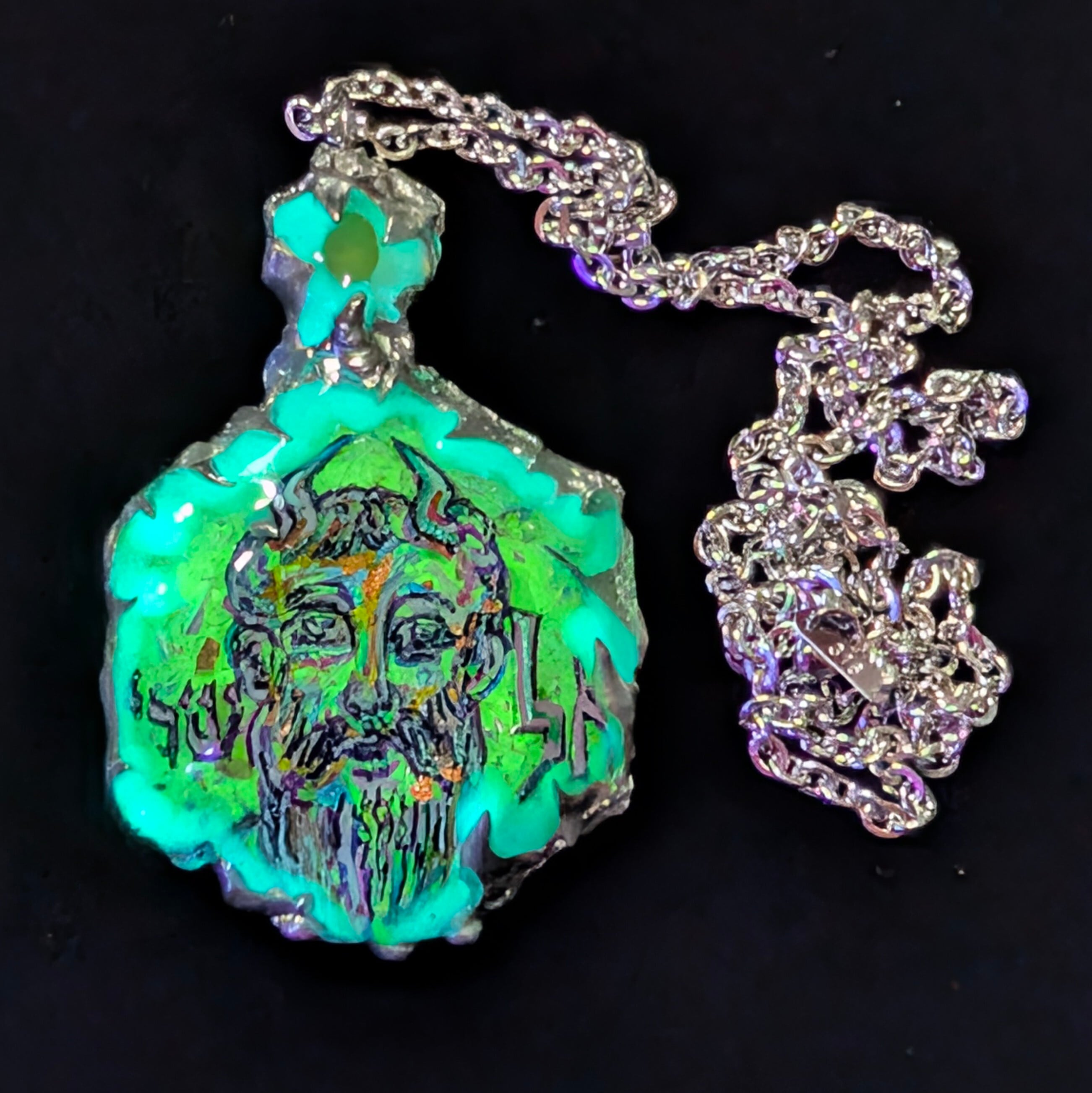 この響金属がオルゴナイトを周囲で循環、天然鉱石&希少グリーンアンバーと金属との間に強力なシナジーを生み出す。結果、霊的振動は増幅、持ち主のエネルギー場と共鳴しながら、内なる波動を整え、光を闇から呼び戻す“逆転現象”を誘発