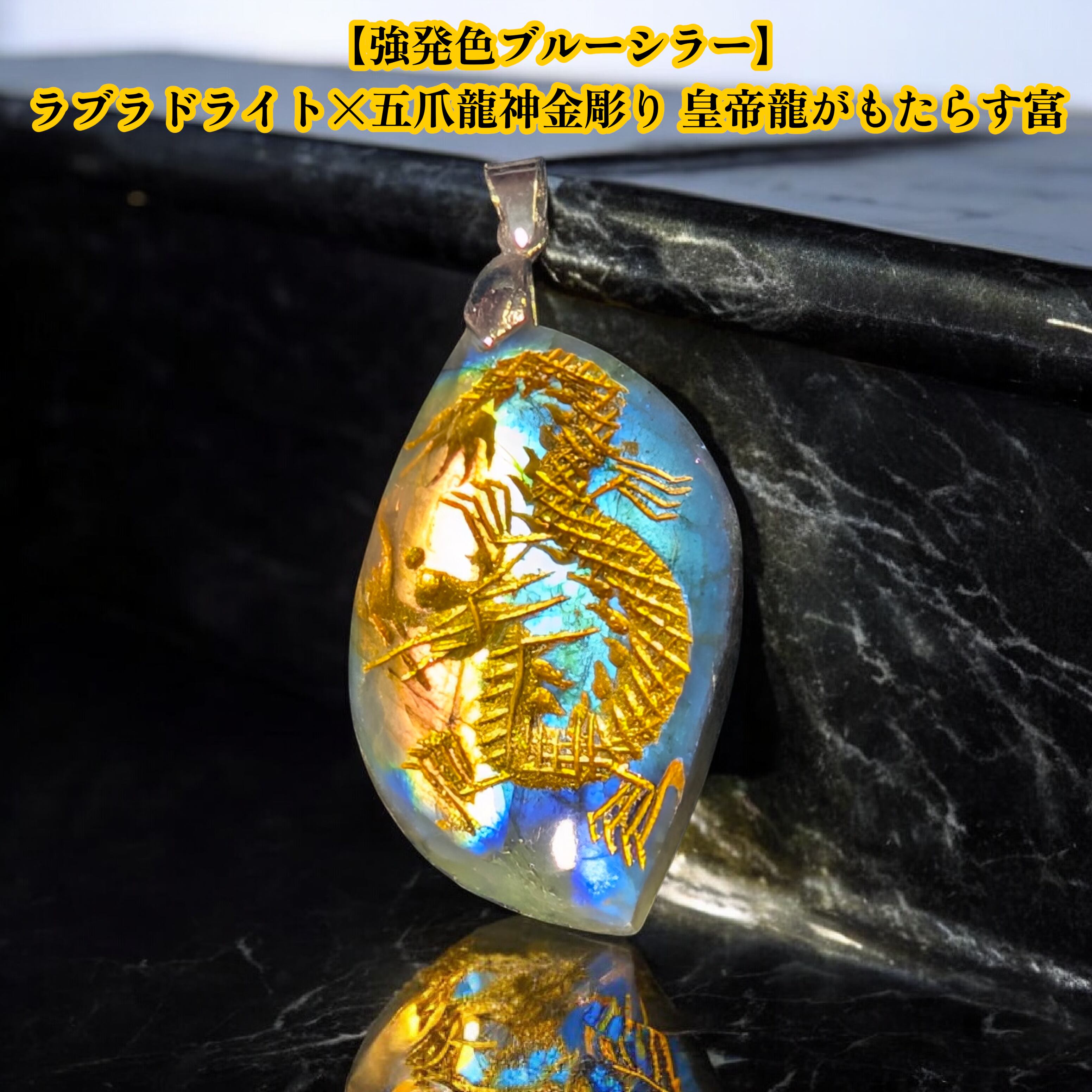 ②一点物【強発色ブルーシラー】ラブラドライト×五爪龍神金彫り 皇帝龍がもたらす富