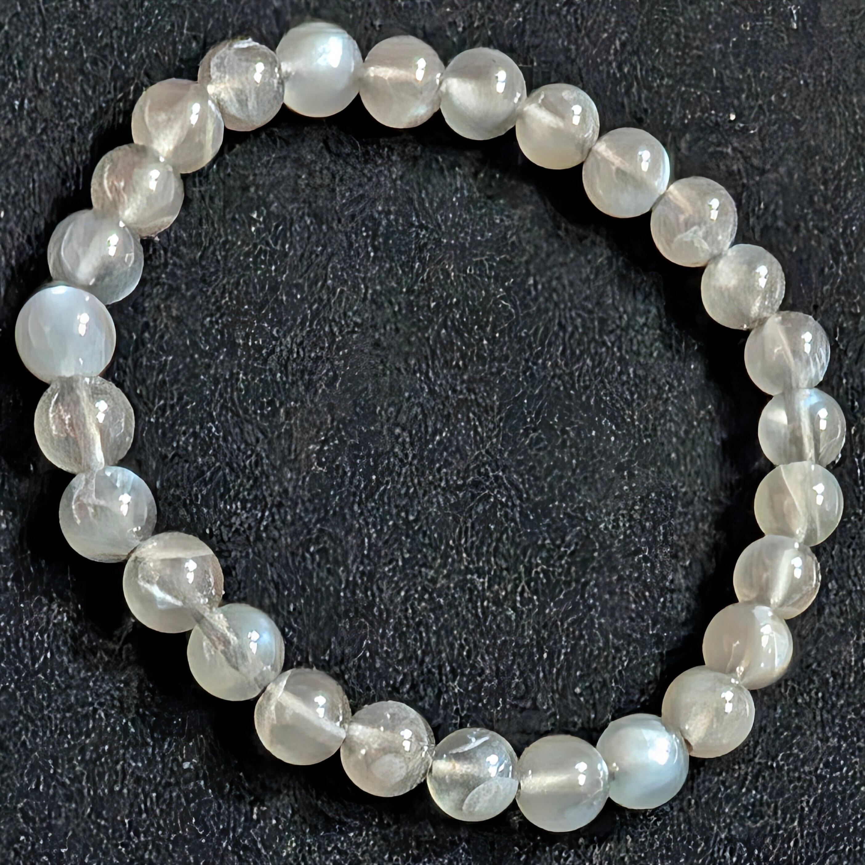 限定1【月光を宿す漆黒の輝き】希少カラー◇タンザニア産 ブラックムーンストーン 7.2mm ブレスレット|静謐と神秘を纏う大人の一本