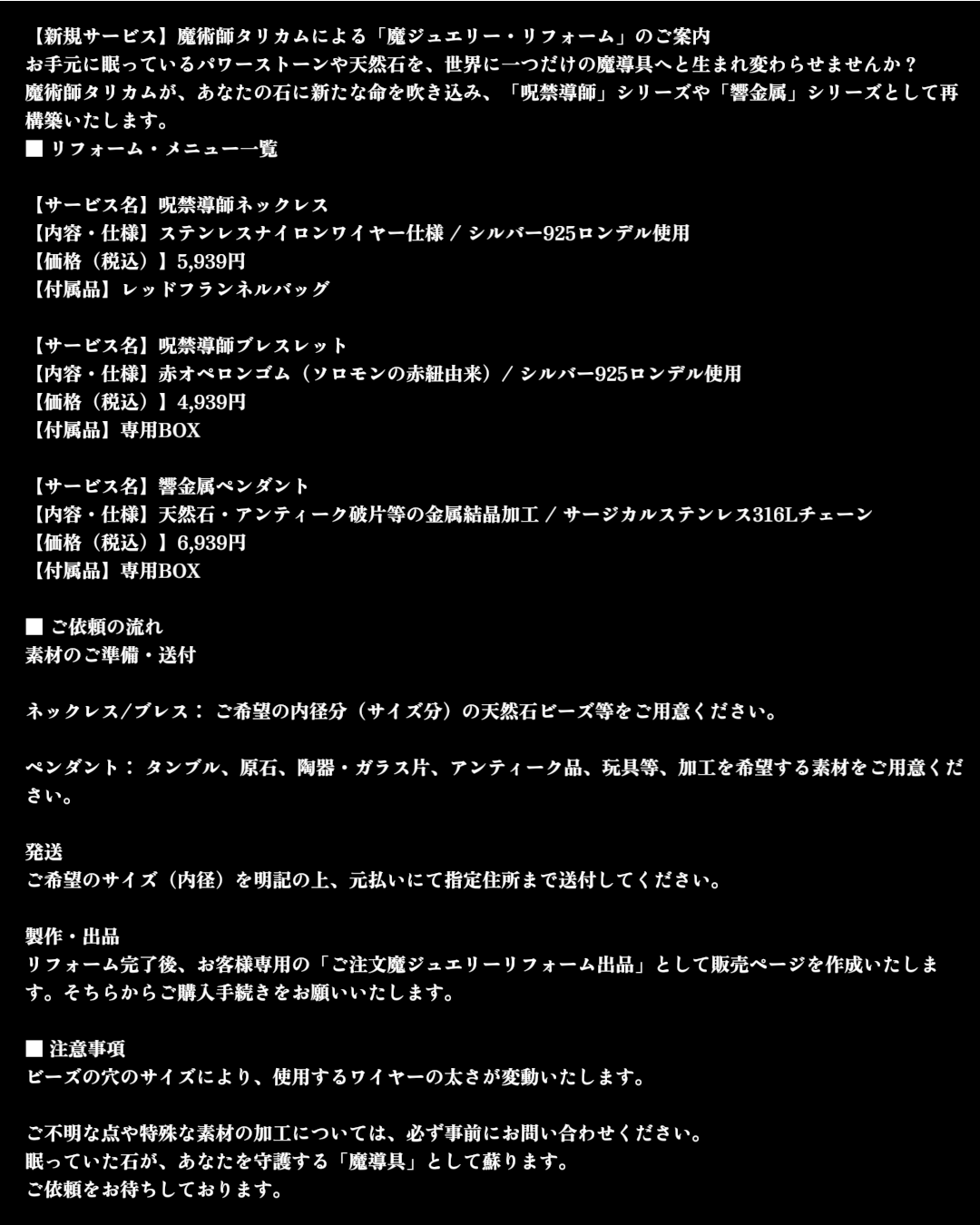 【新規サービス】魔術師タリカムによる「魔ジュエリー・リフォーム」のご案内