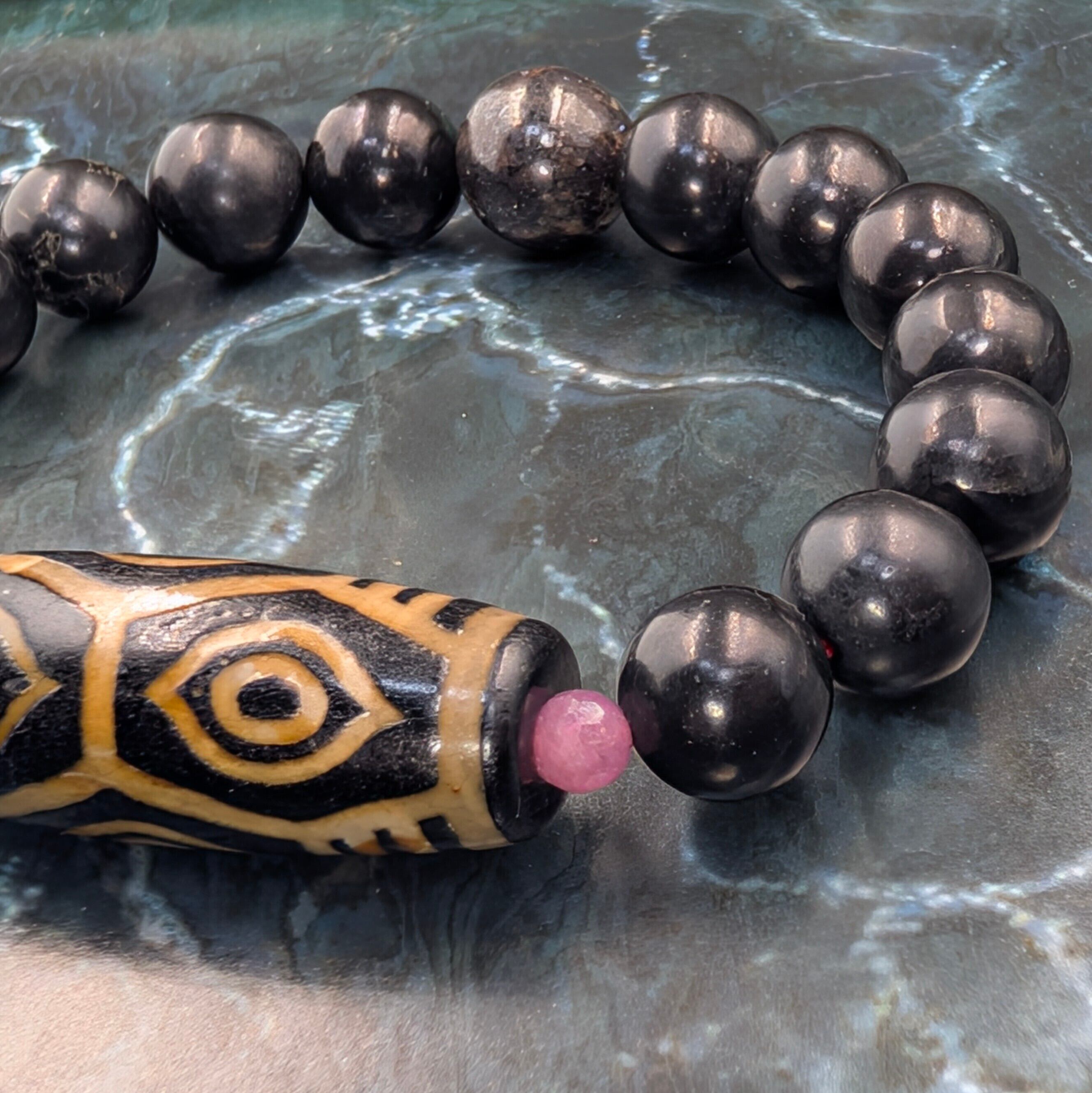 呪禁導師シリーズ最新作、**『奇跡の呪禁導師 〜火供龍眼NWA869隕石シュンガイト〜』**は、所有者の運命を劇的に塗り替える「生還と繁栄」の最高峰呪具ブレスレットです。