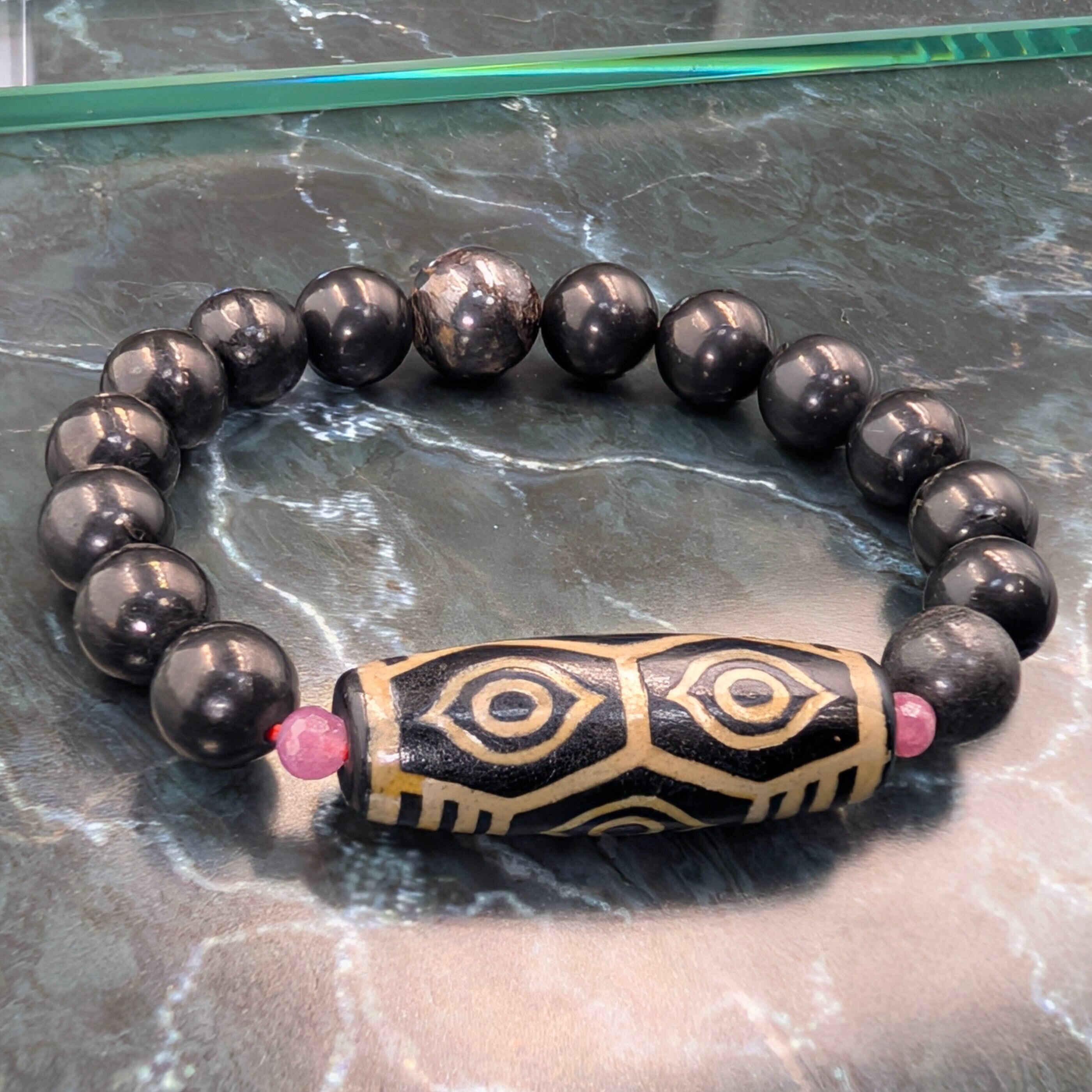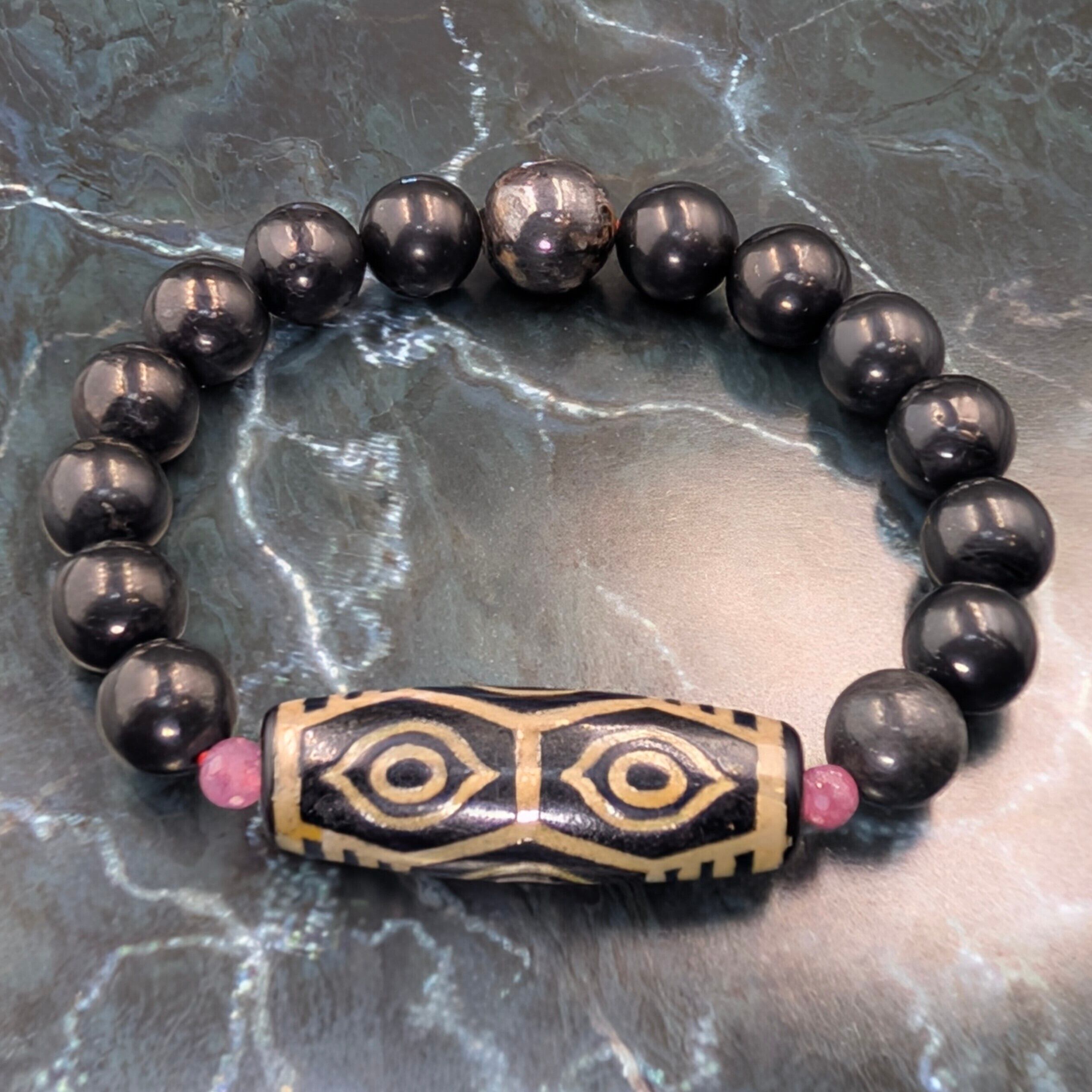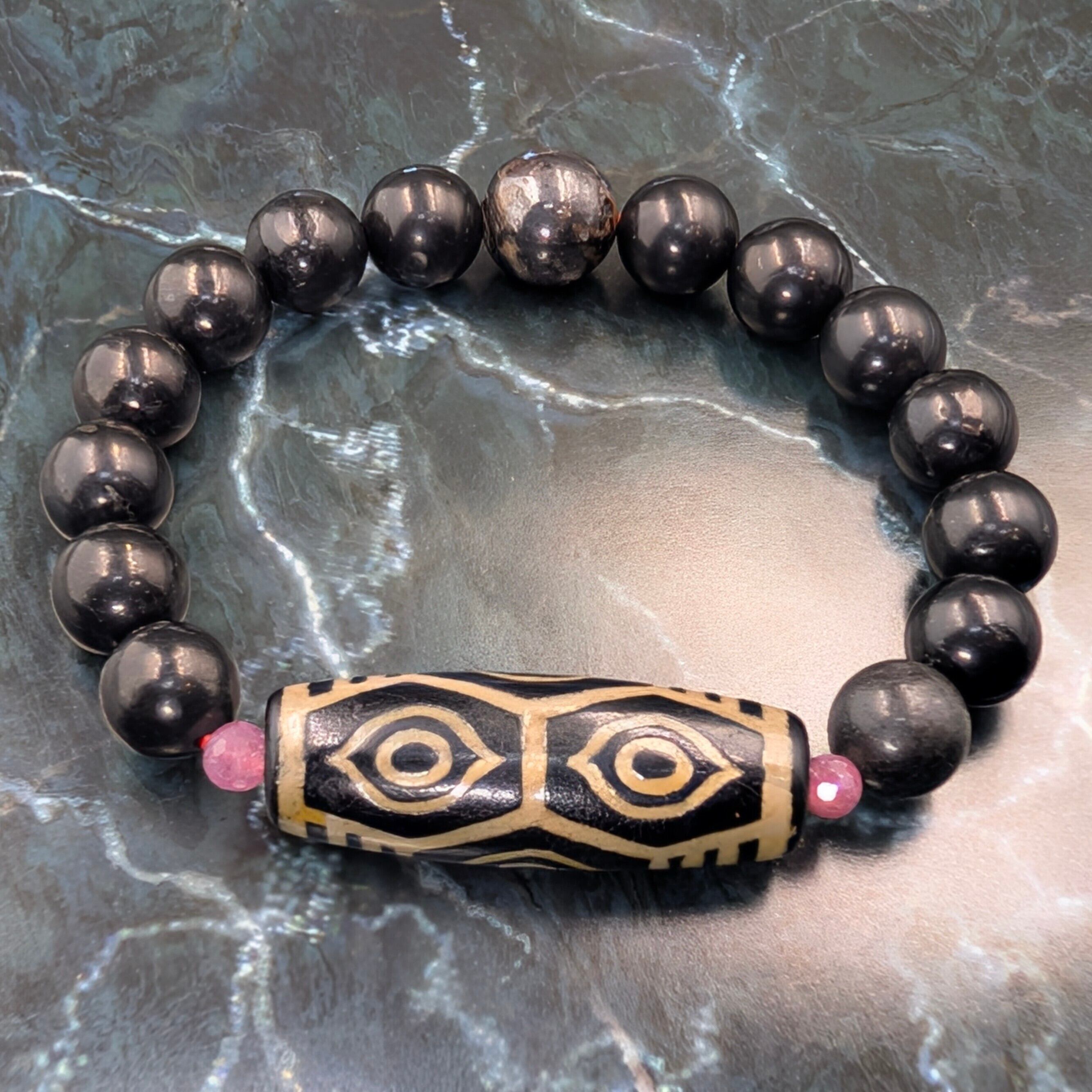 呪禁導師シリーズ最新作、**『奇跡の呪禁導師 〜火供龍眼NWA869隕石シュンガイト〜』**は、所有者の運命を劇的に塗り替える「生還と繁栄」の最高峰呪具ブレスレットです。