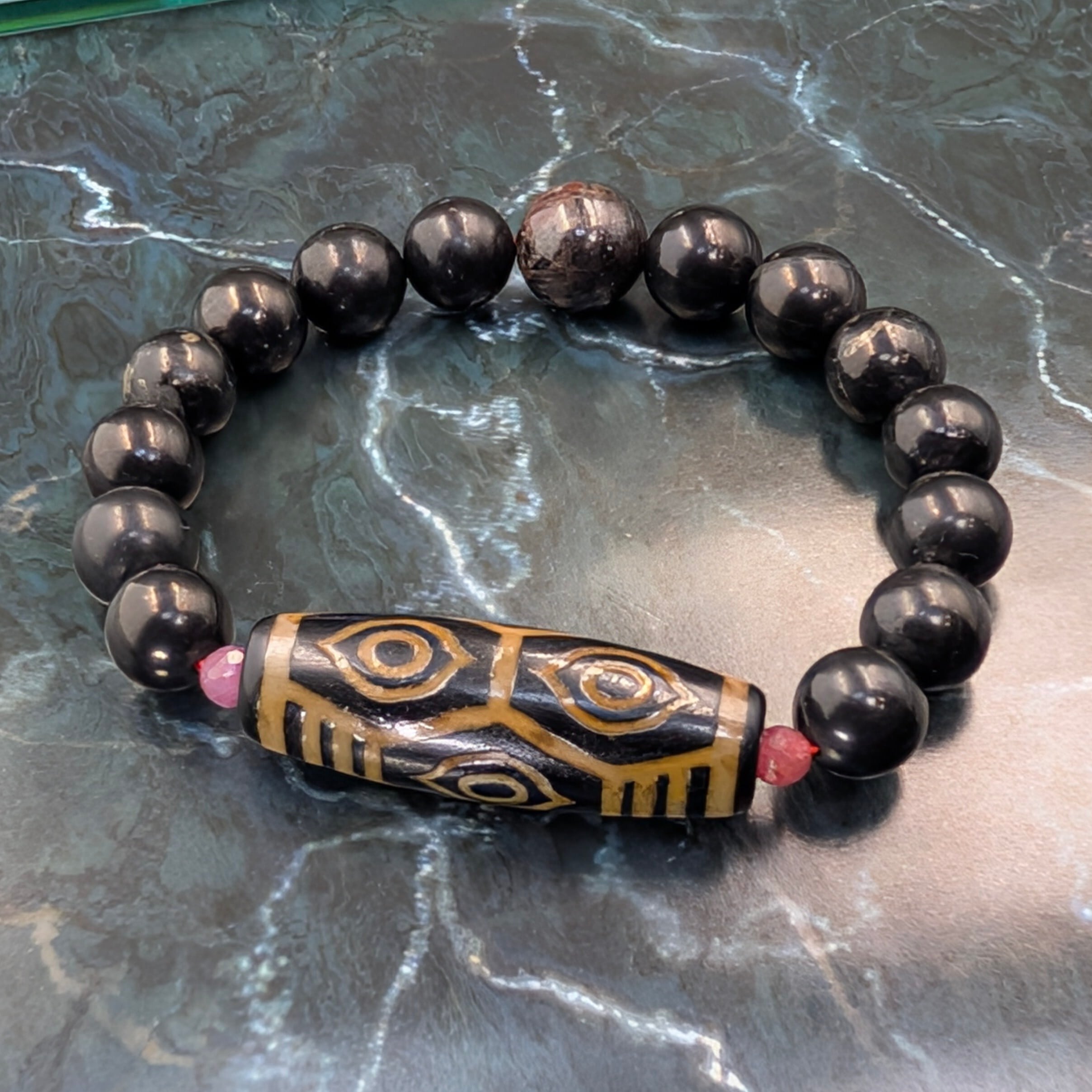 呪禁導師シリーズ最新作、**『奇跡の呪禁導師 〜火供龍眼NWA869隕石シュンガイト〜』**は、所有者の運命を劇的に塗り替える「生還と繁栄」の最高峰呪具ブレスレットです。