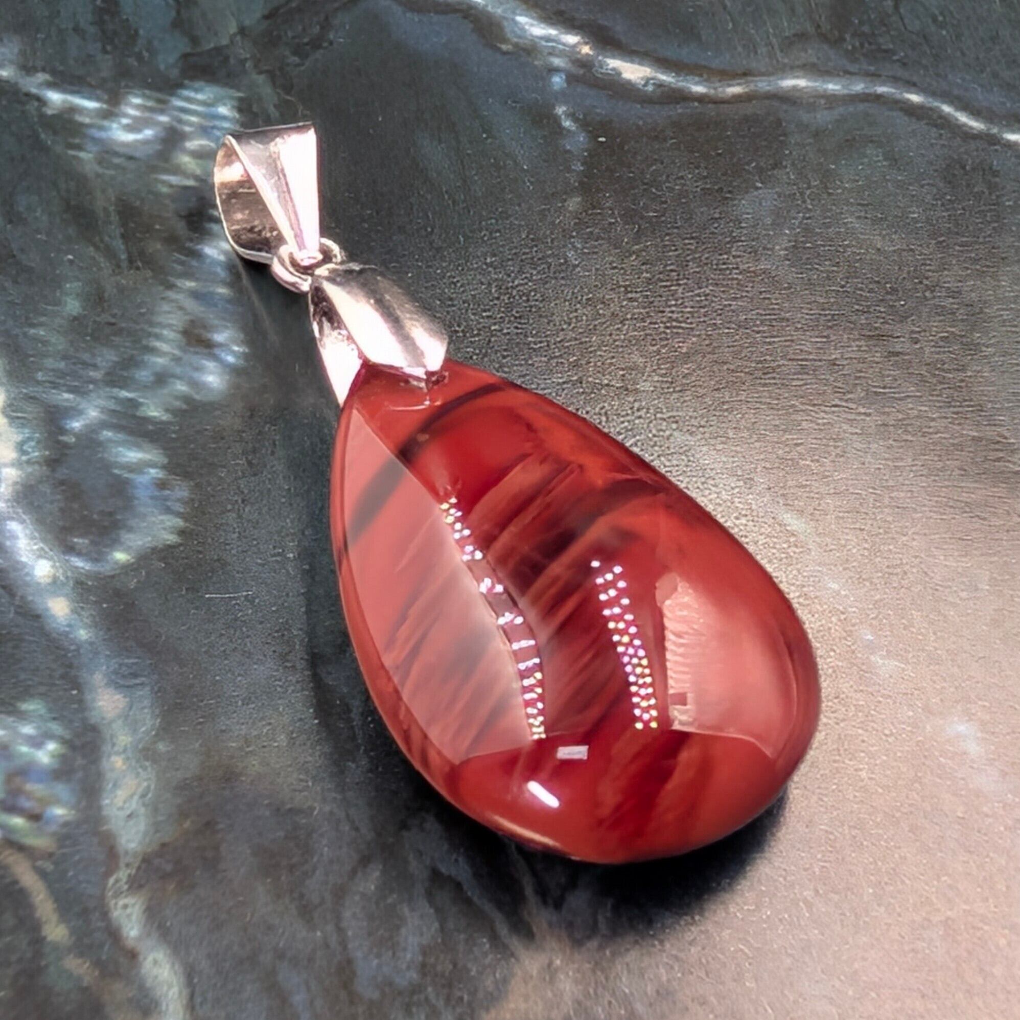 本品は、深く燃えるような赤褐色が美しく輝く、チベット産アンデシン 21×13mmのオーバル型ペンダントトップです。