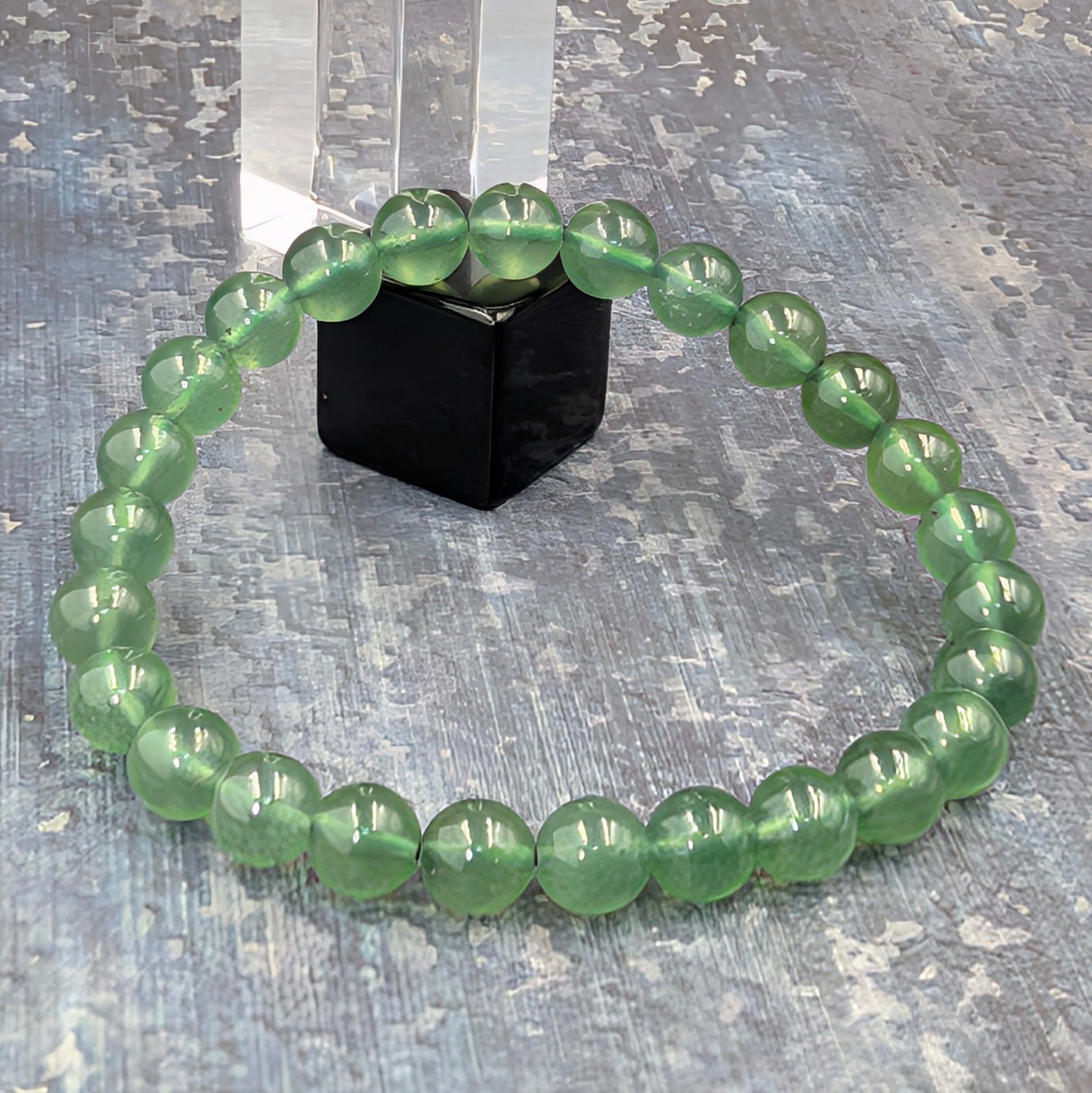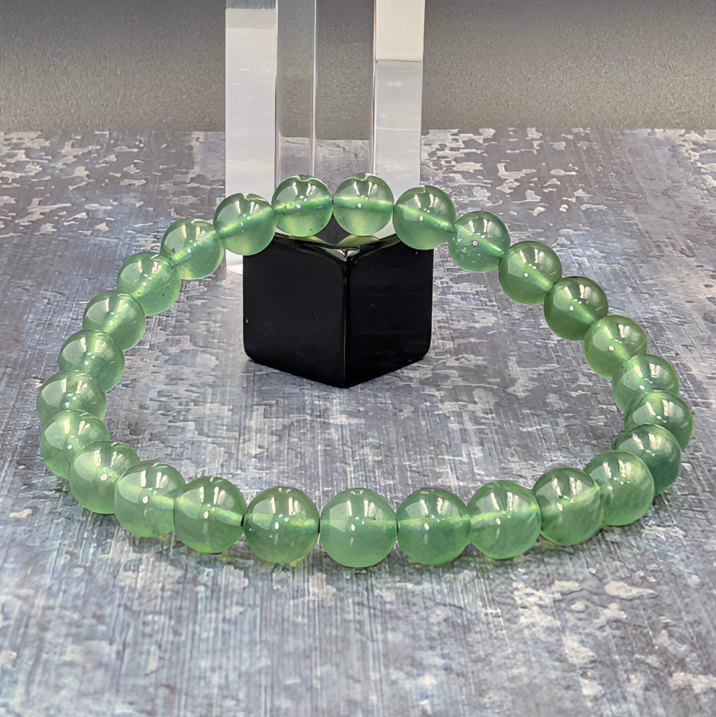 ※限定1【脳と魂を再配線する蛇の翡翠】高透過とろみグリーン◇サーペンティン岫玉(ボーウェナイト)6.8mmブレスレット