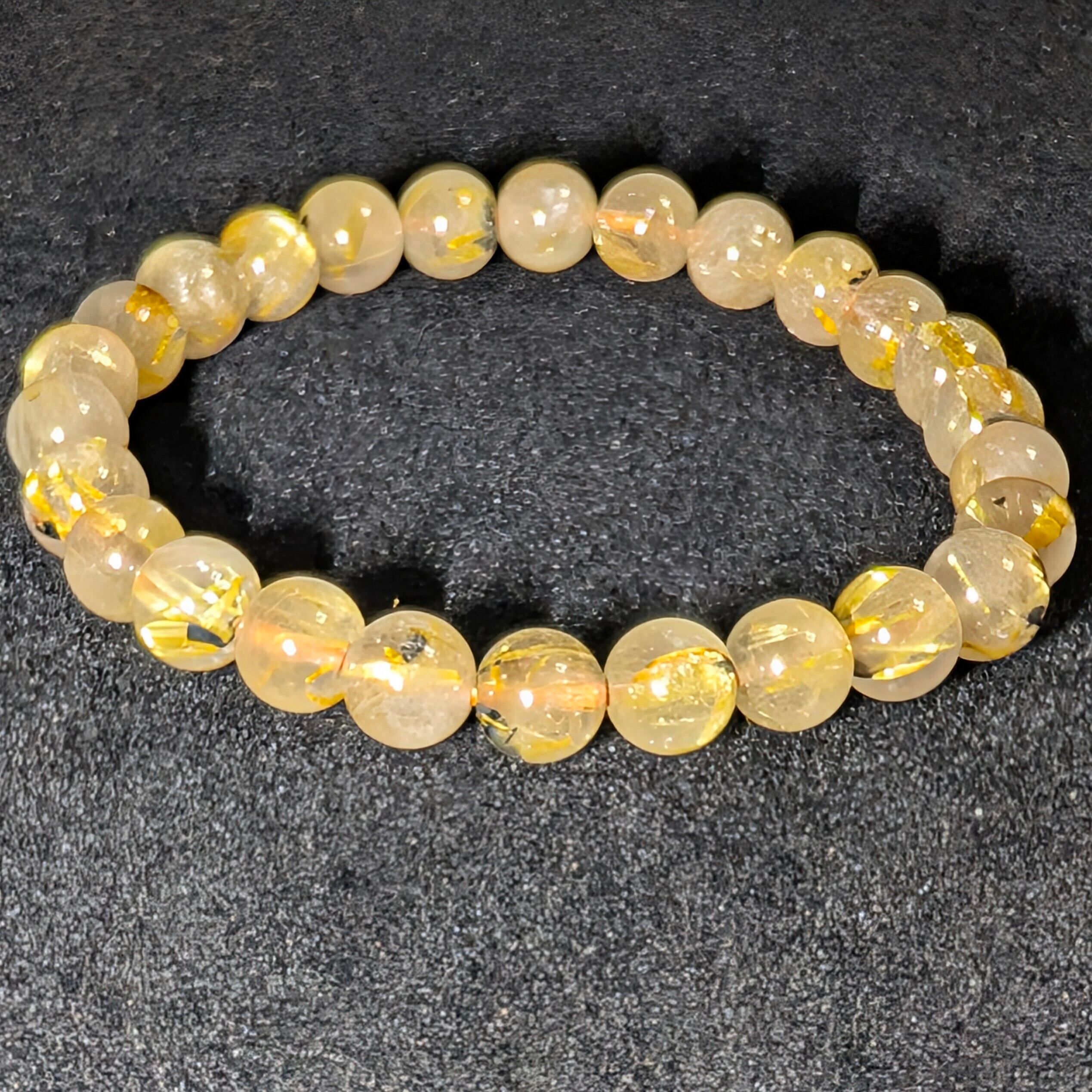 ルチルは水晶の中に細かい金の線が入った珍しい玉で、この美しい細かな黄色の線は水晶の中に偶然黄鉄が線状に結晶化したものです