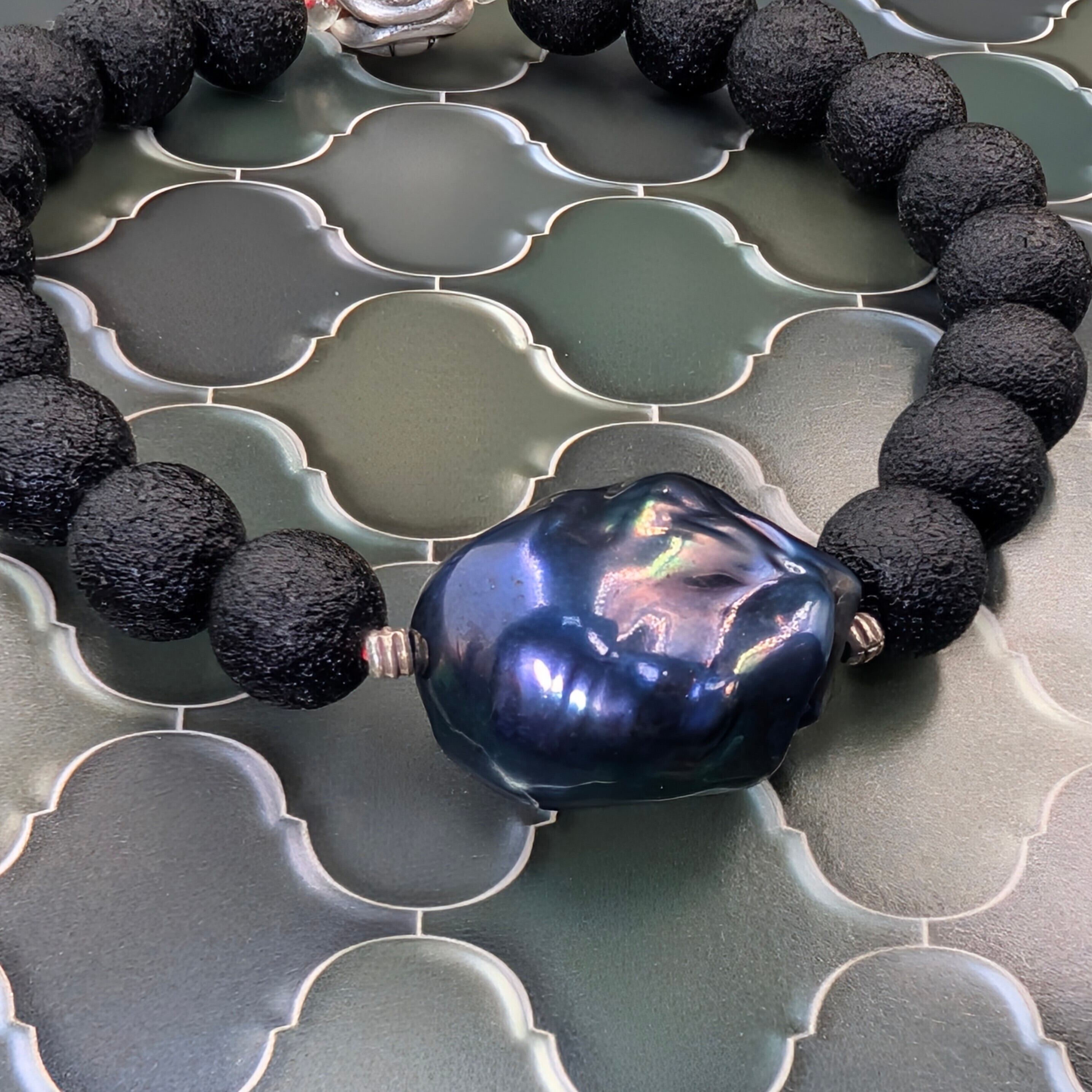 ※数量限定特別制作【極・神域ブレス】。20億年という地球史の奇跡と、隕石衝突の超高熱が生んだ天然ガラスの記憶、そして紫光を湛える最高級ブルーバイオレット大粒バロックパールが、いま奇跡の融合を果たしました。