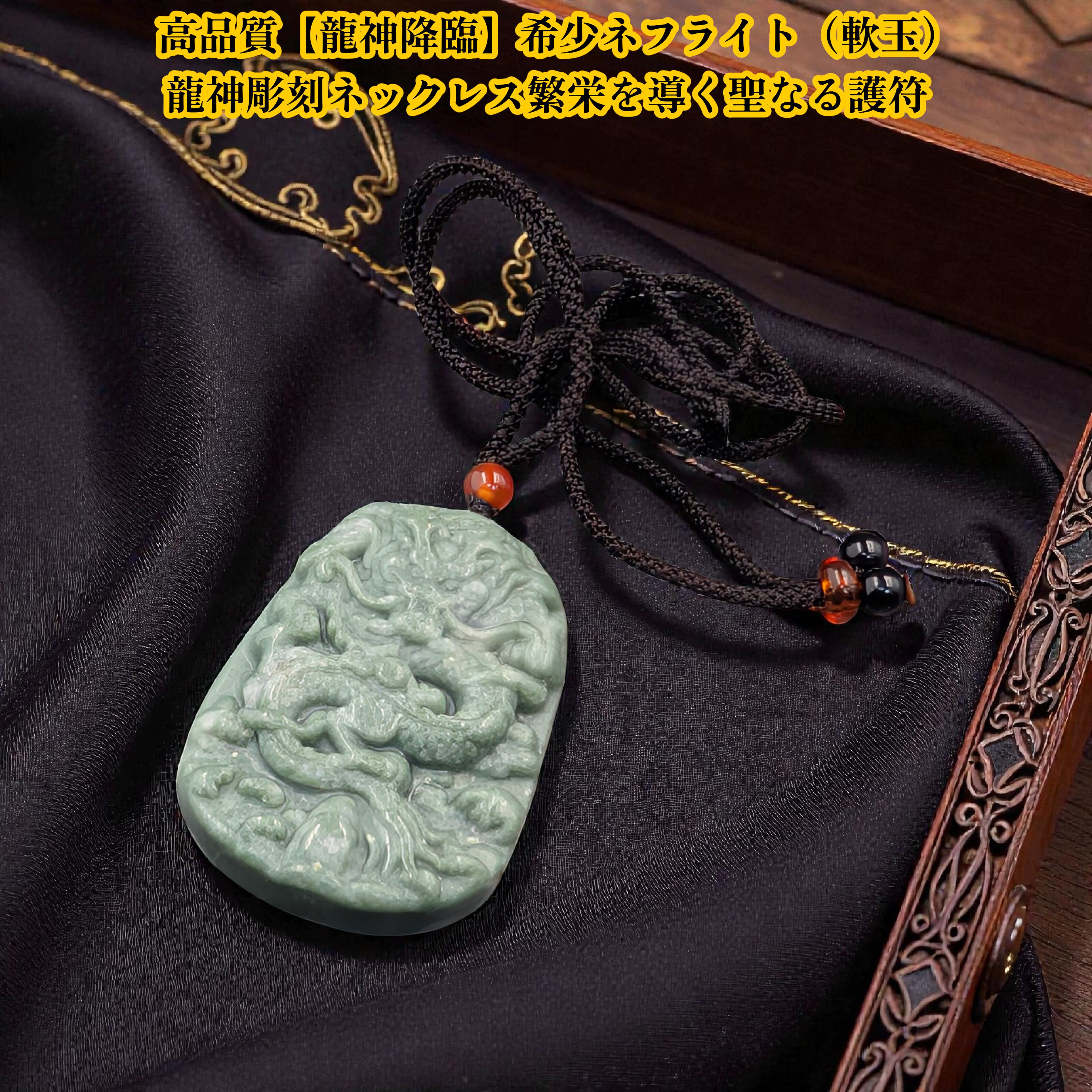 高品質【龍神降臨】希少ネフライト(軟玉)龍神彫刻ネックレス繁栄を導く聖なる護符