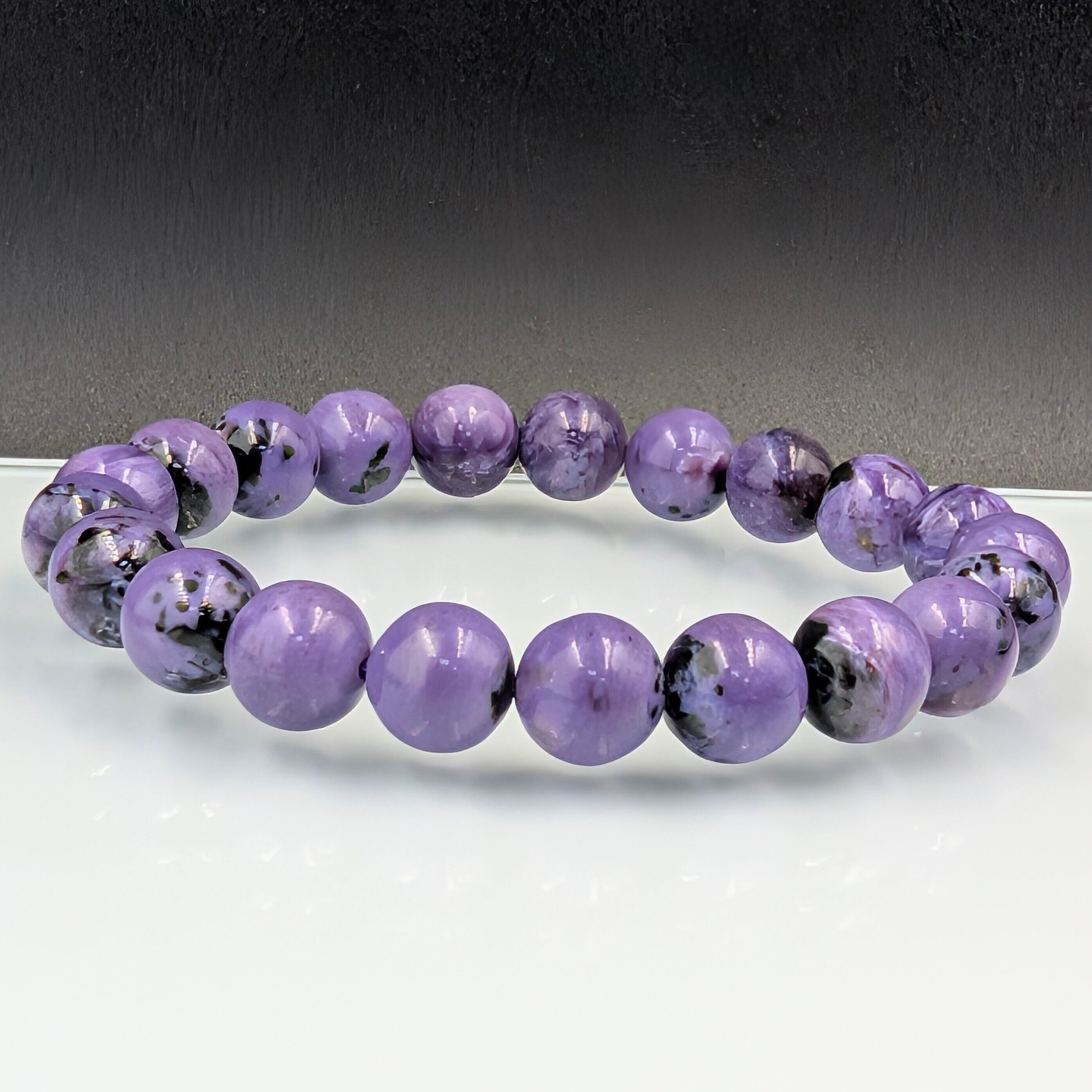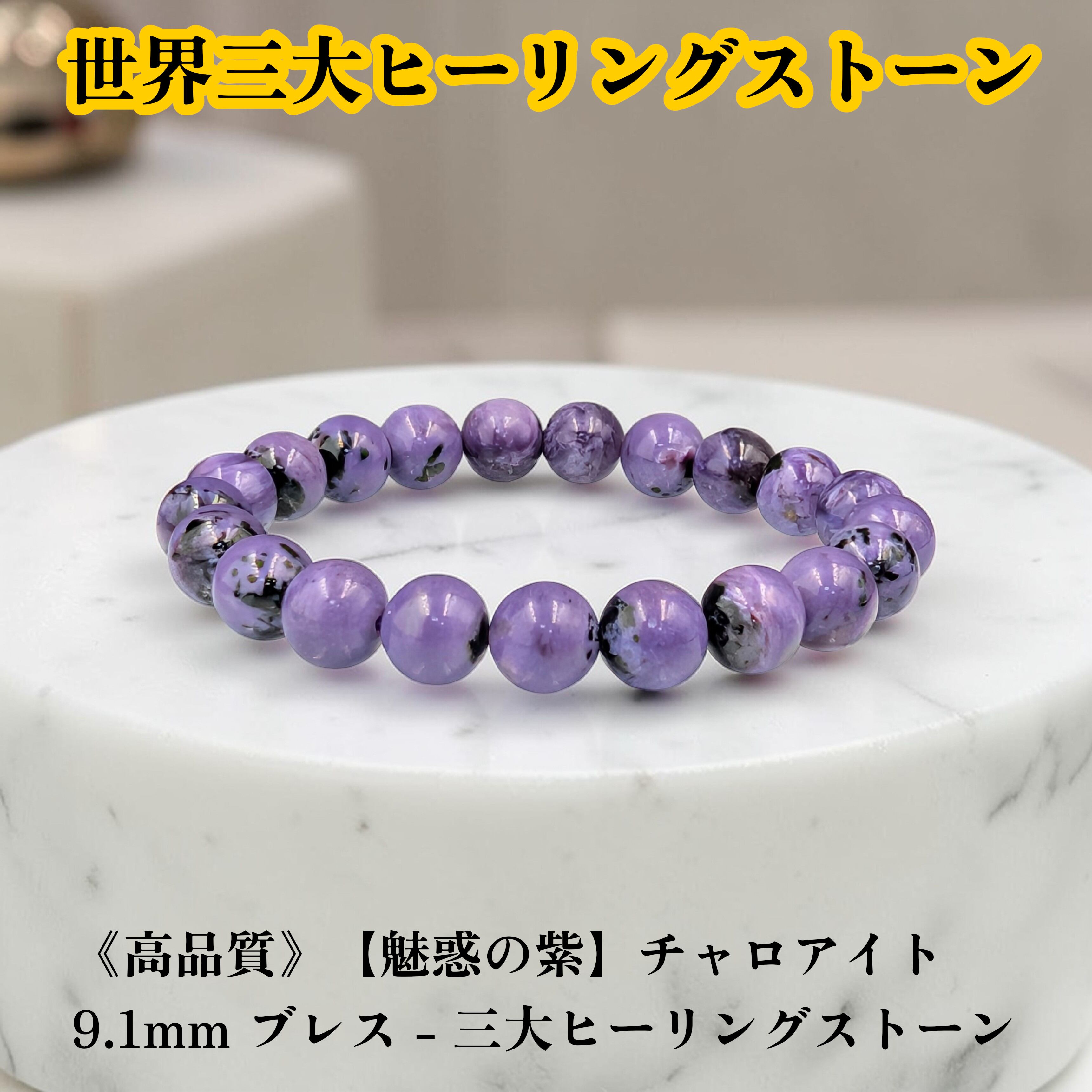 《高品質》【魅惑の紫】チャロアイト9.1mm ブレス - 三大ヒーリングストーン