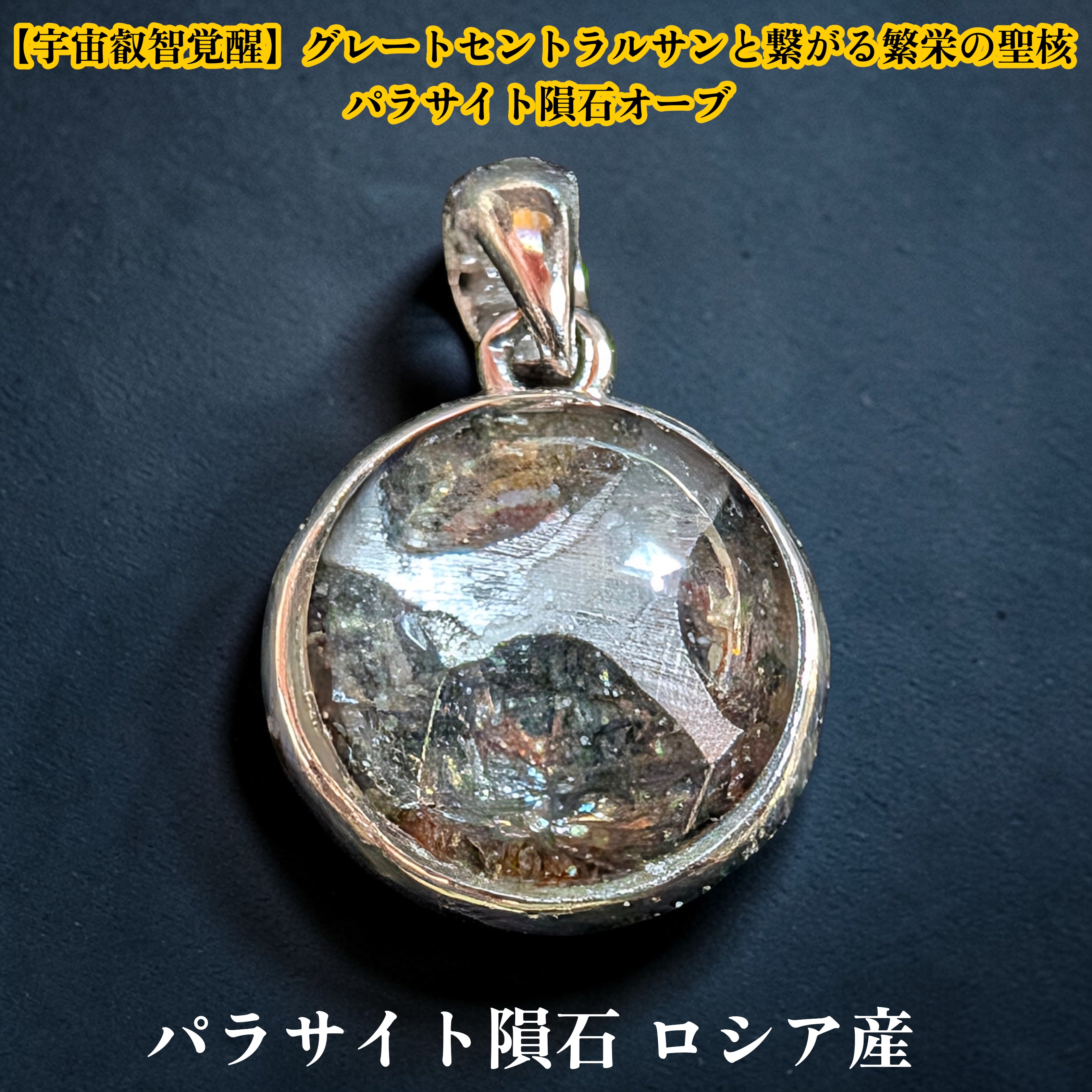 宇宙の叡智と繁栄の波動を宿す、極めて希少な石鉄隕石「パラサイト」を使用した神秘のオーブペンダント。