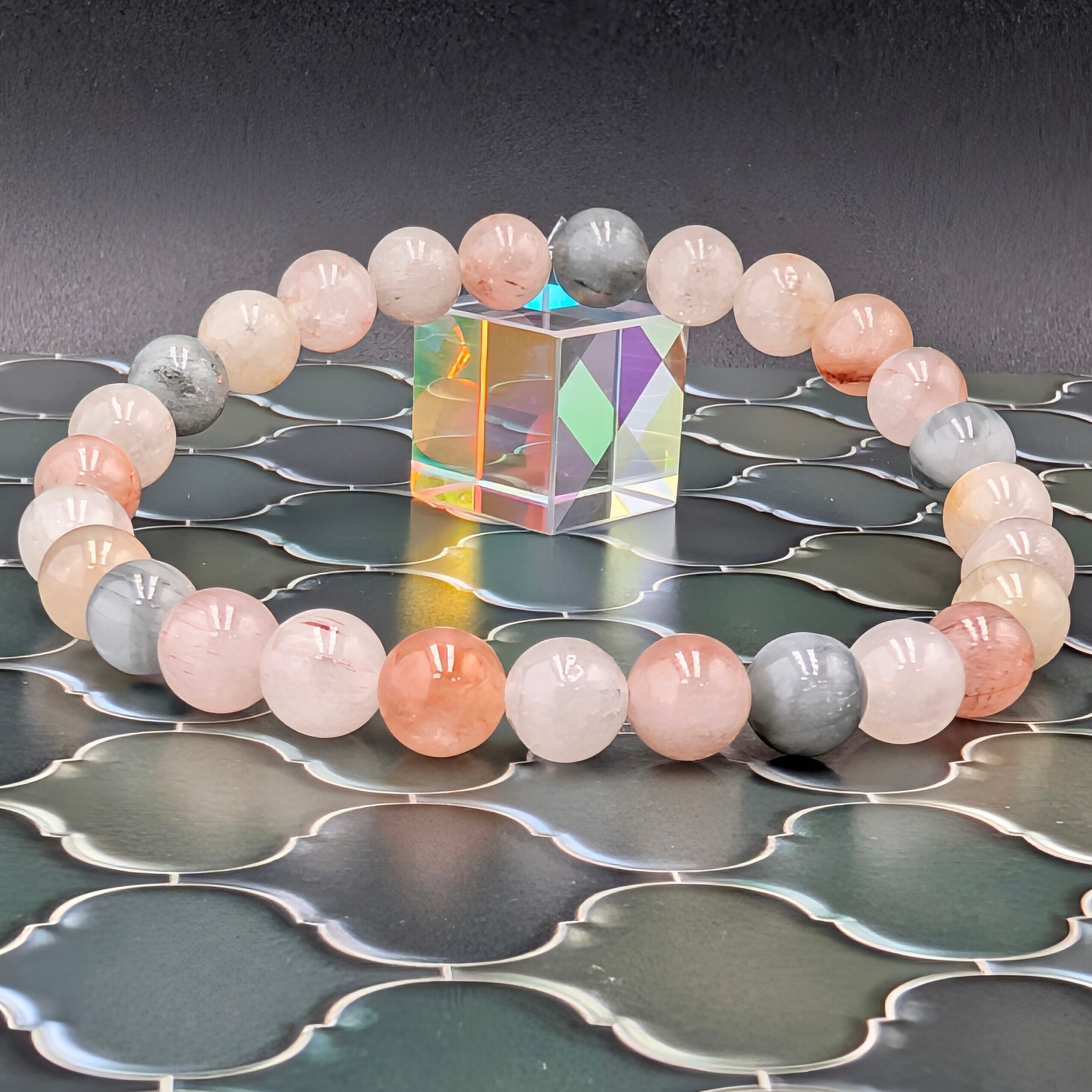 アンフィボールインガーデンクォーツ(7.3mm)を使用した、優しく落ち着いた色合いが魅力の天然ブレスレットです。