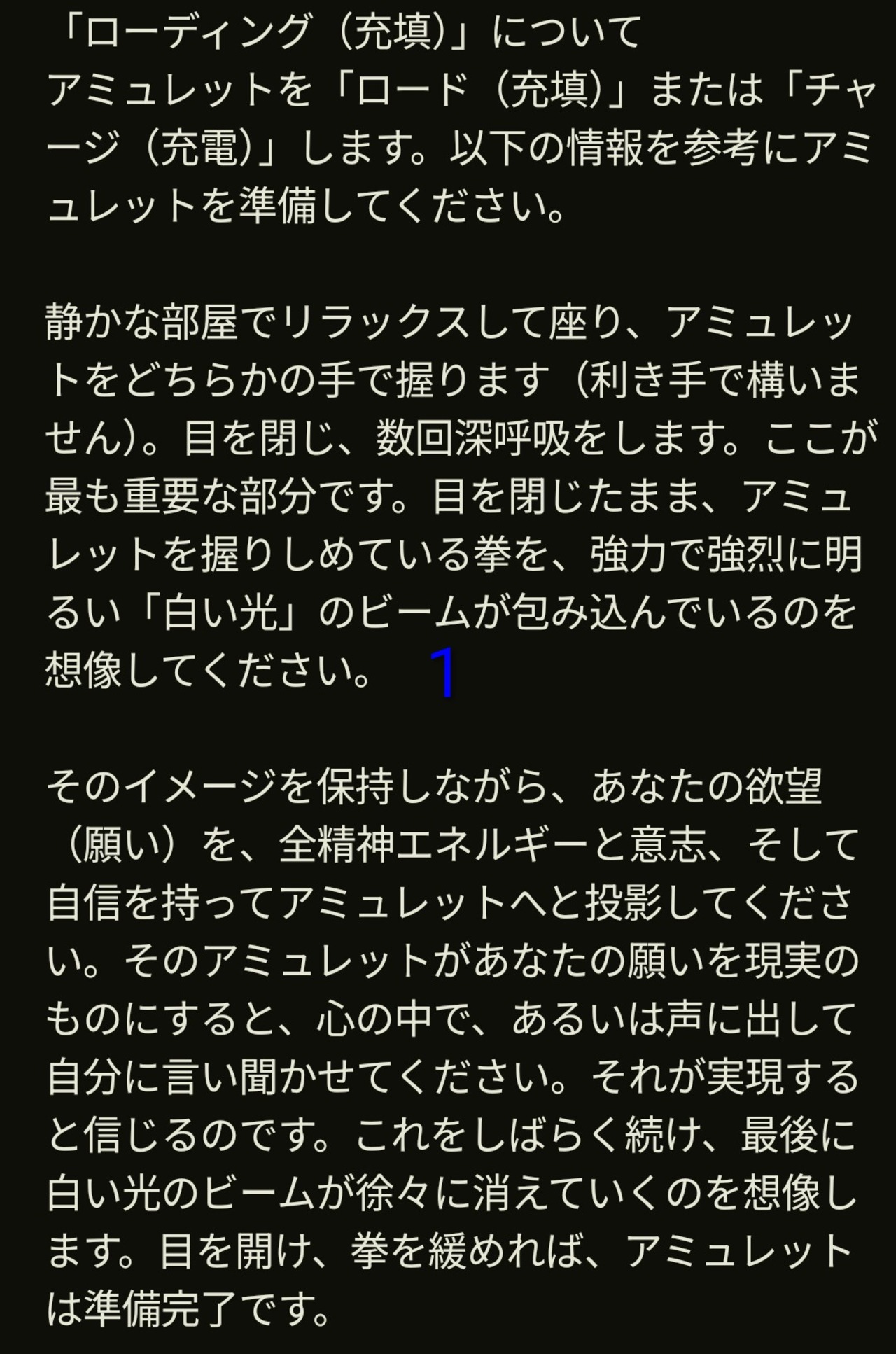 最も重要な工程は「充填(ローディング)」です。静かな場所でアミュレットを握り、強力な白い光に包まれる姿を視覚化しながら、自信を持って願いを投影。この際、潜在意識が拒絶しないよう、まずは現実的な目標から願うのが成功の秘訣。