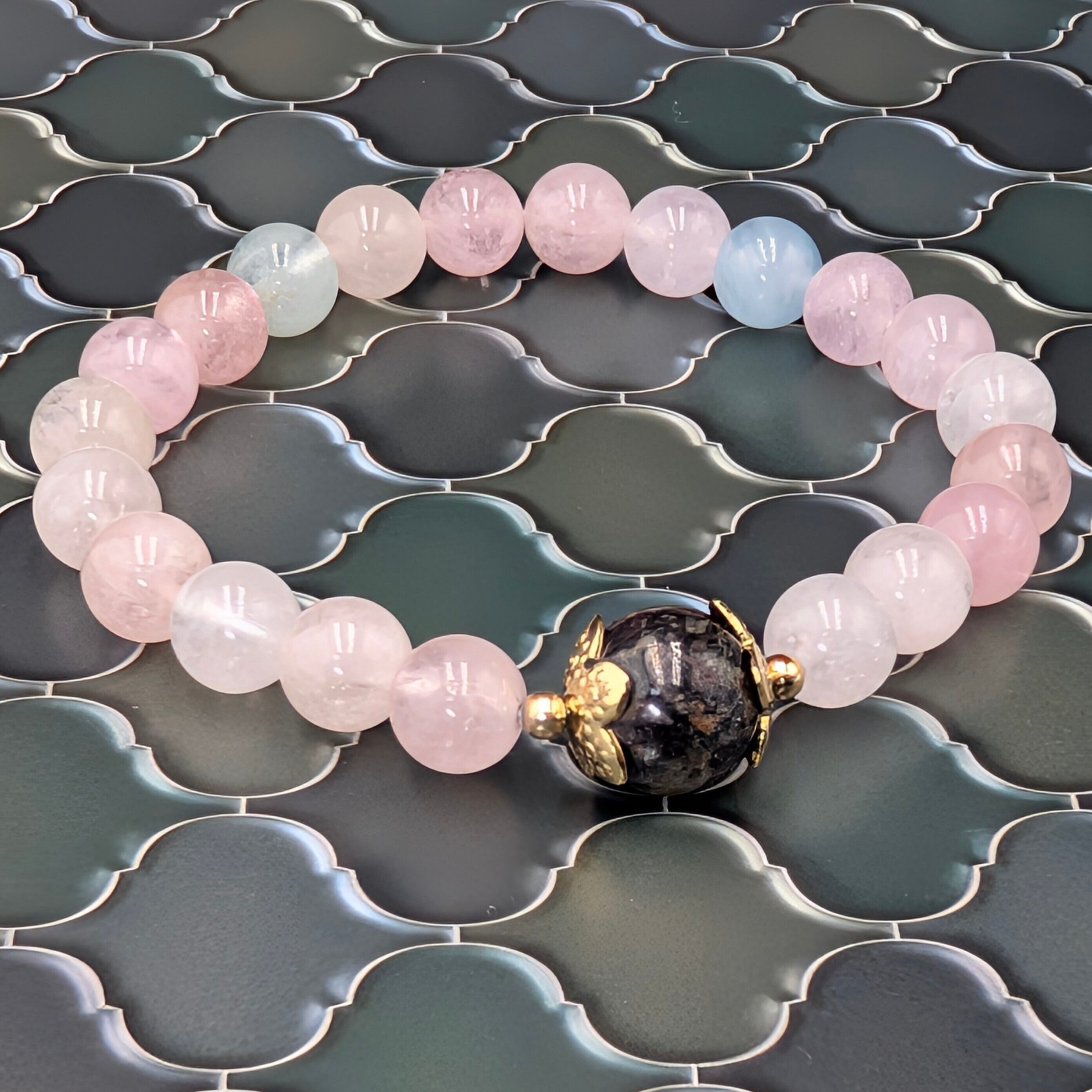 【至高の1点物】宇宙の記憶を宿す宿命の守護石。サハラNWA869隕石×聖母の愛ミックスベリル・ラグジュアリー珠ブレスレット