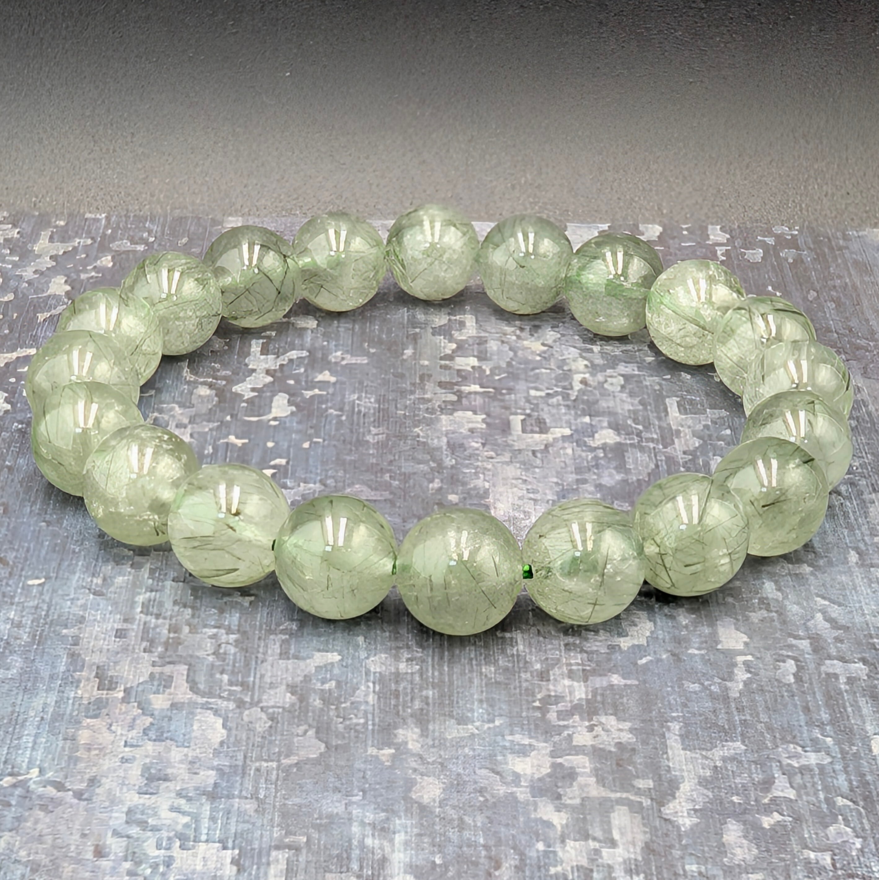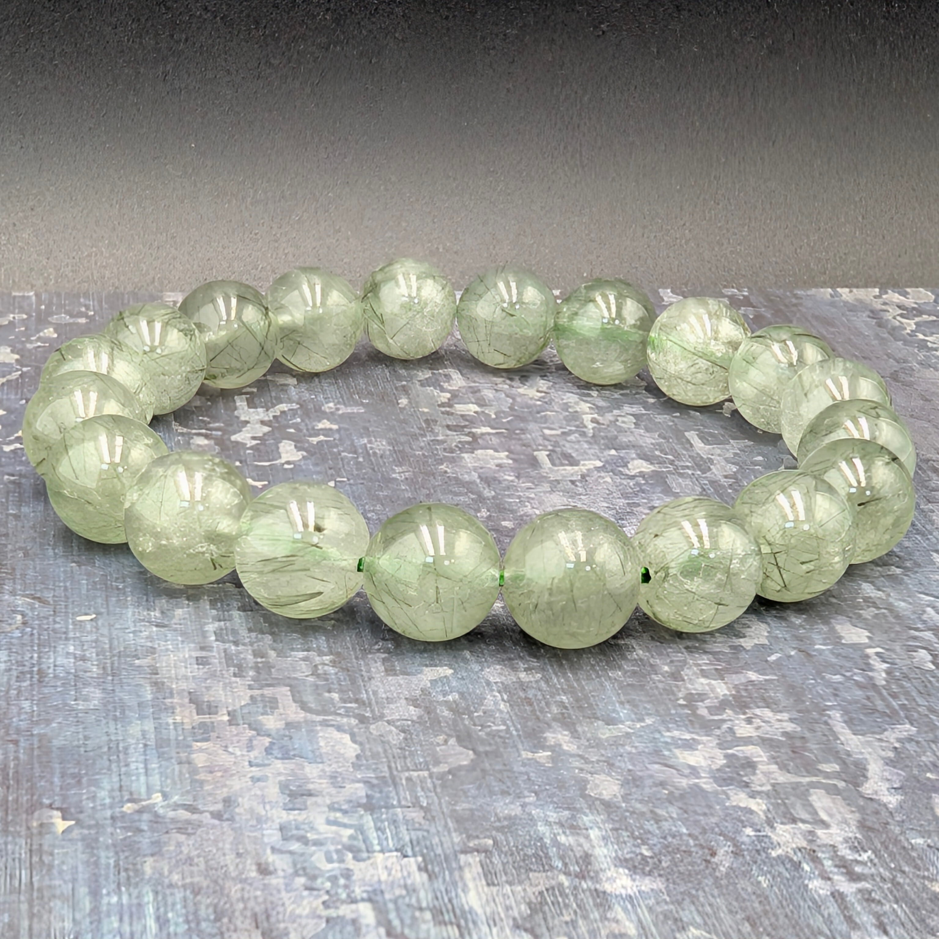 【極希少/一点物】聖なる癒しの緑針。グリーンルチルクォーツ(アクチノライトインクォーツ)10mmブレスレット【ブラジル産/高波動】
