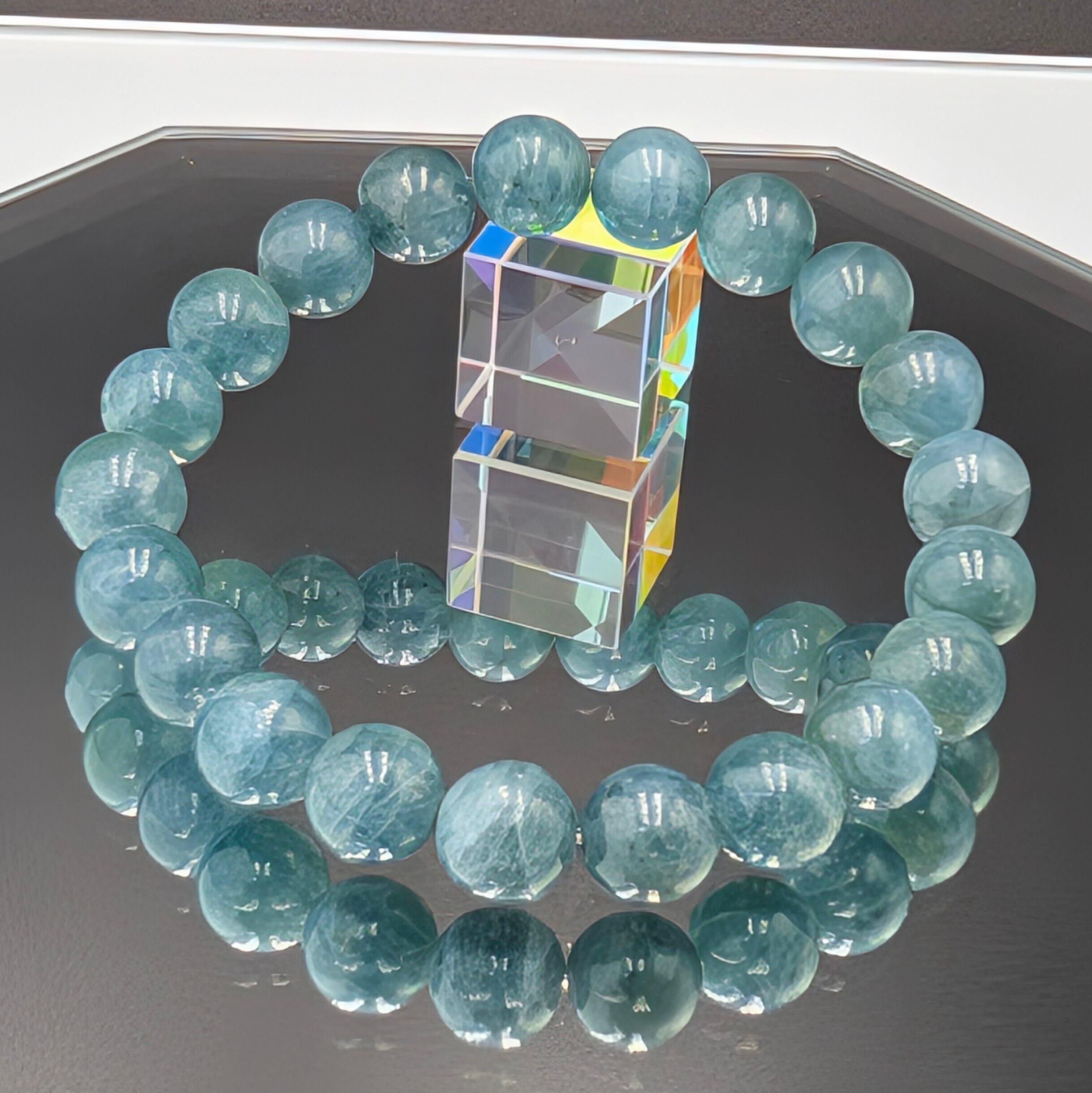 ナチュラルなブルーグリーンが瑞々しく輝く、天然色グリーンアパタイト。高い透明度と艶やかな光沢を備え、珠の中には繊維状構造による美しいキャッツアイ効果が現れるものも含まれます。