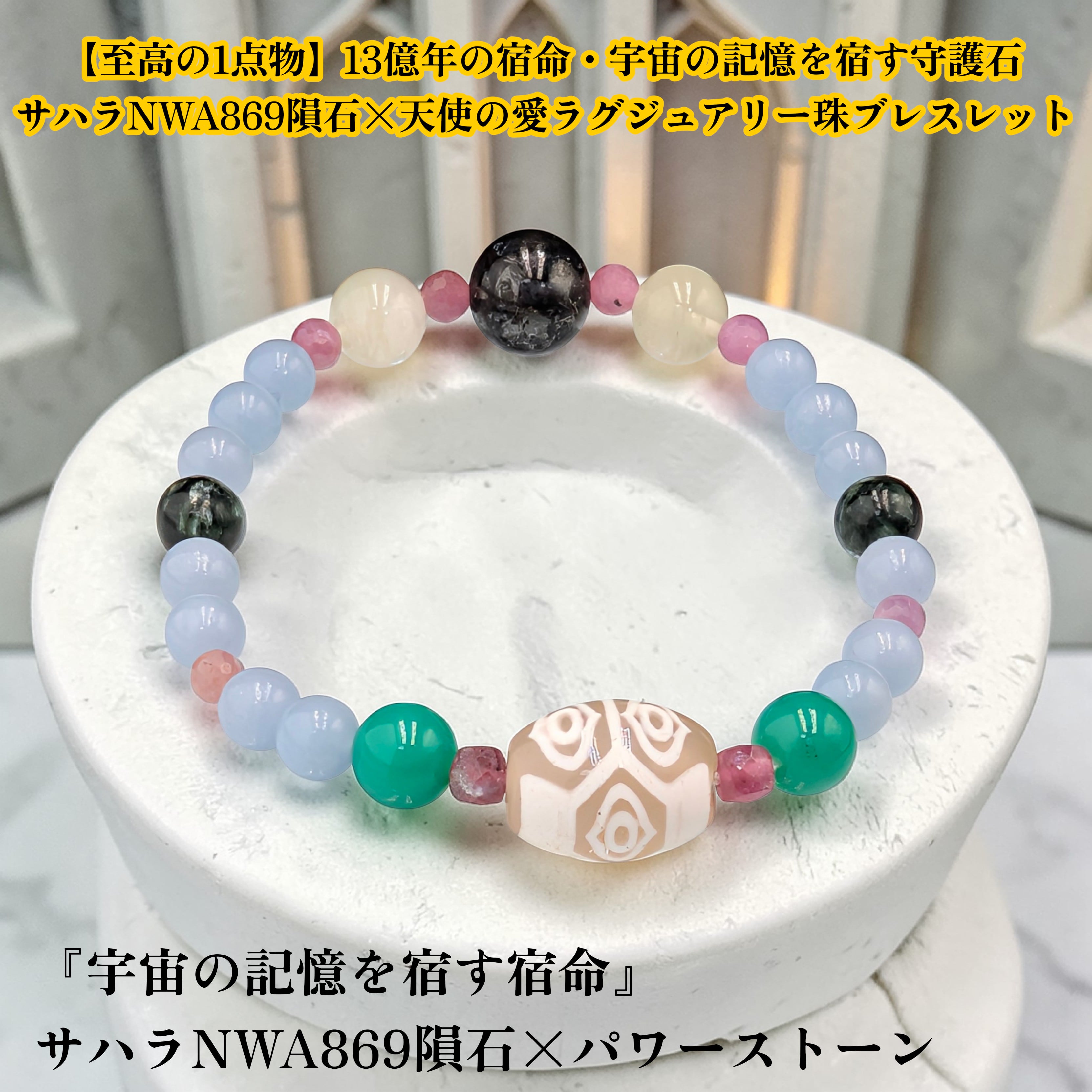 【至高の1点物】13億年の宿命・宇宙の記憶を宿す守護石|サハラNWA869隕石×天使の愛ラグジュアリー珠ブレスレット