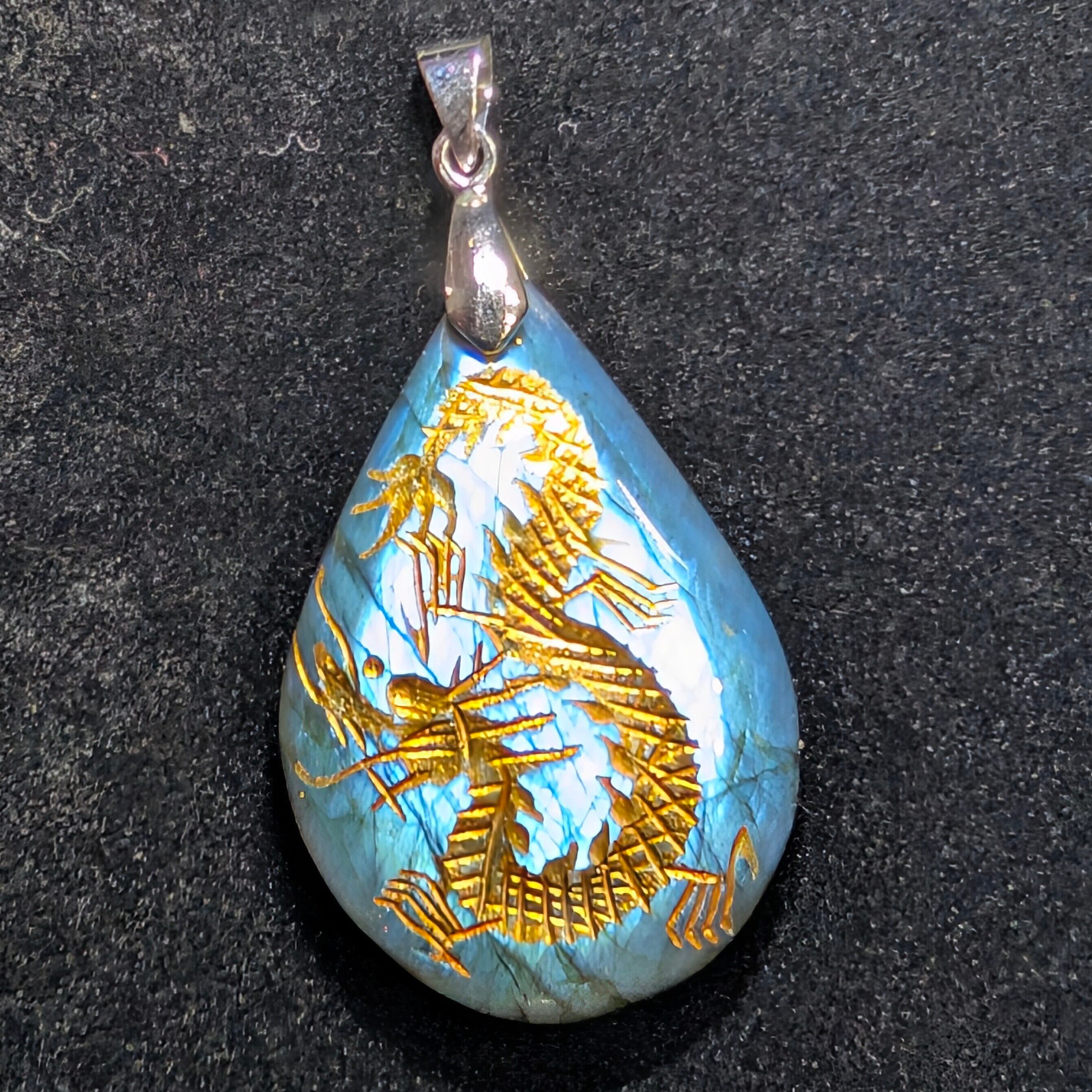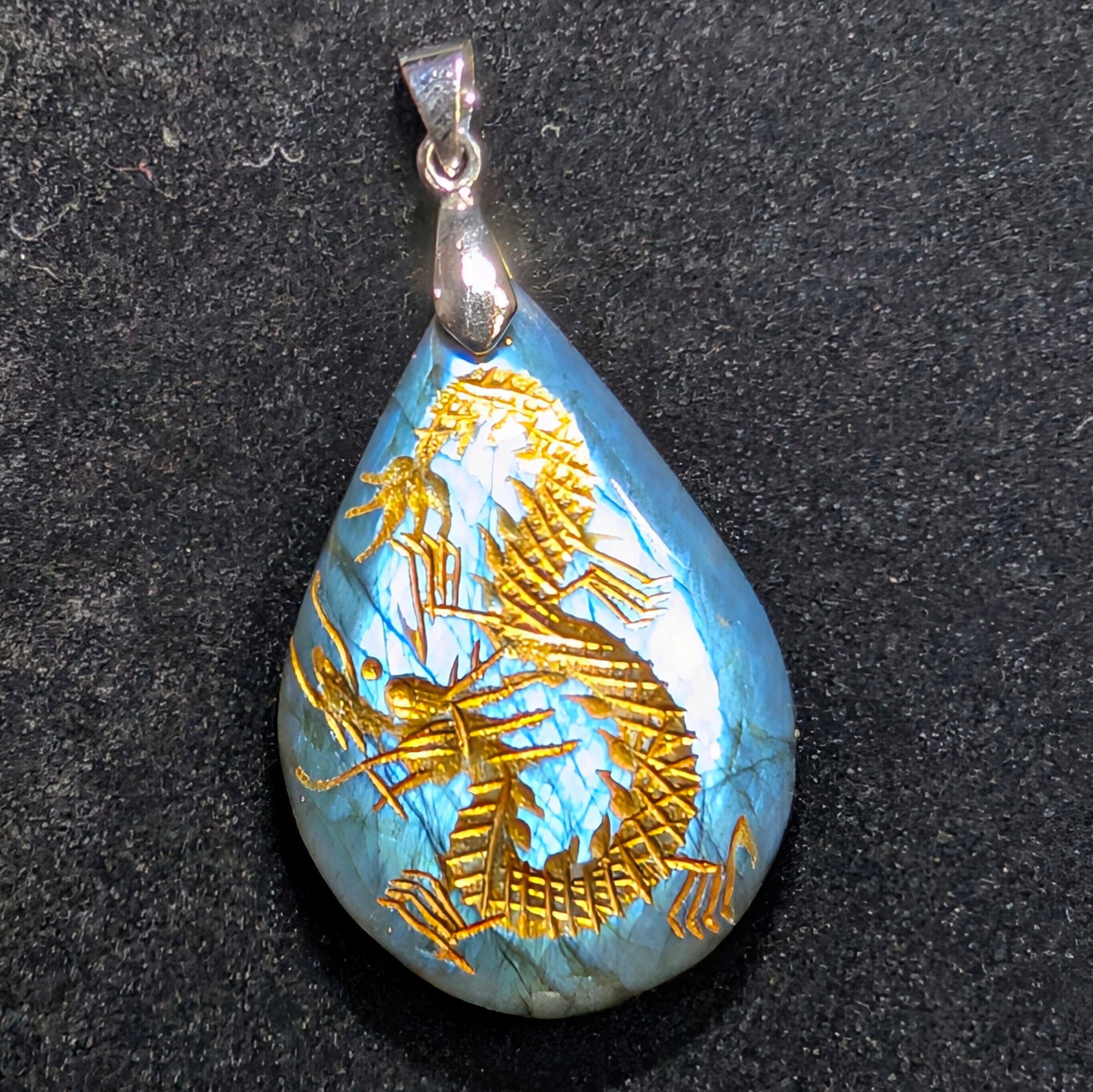 龍神のエネルギーとラブラドライトの神秘性が融合するこのペンダントは、最高の守護と共鳴力を持つ一品です。