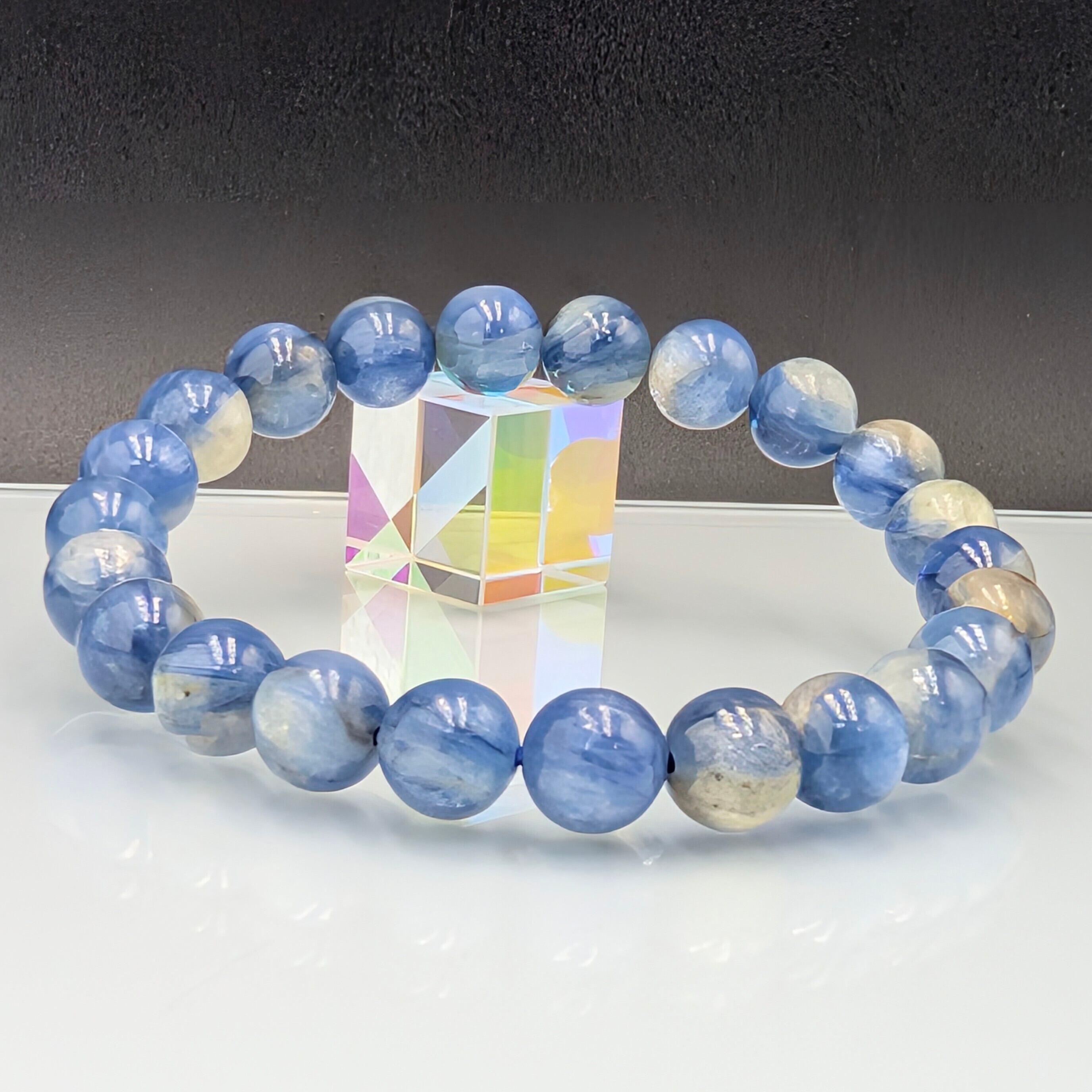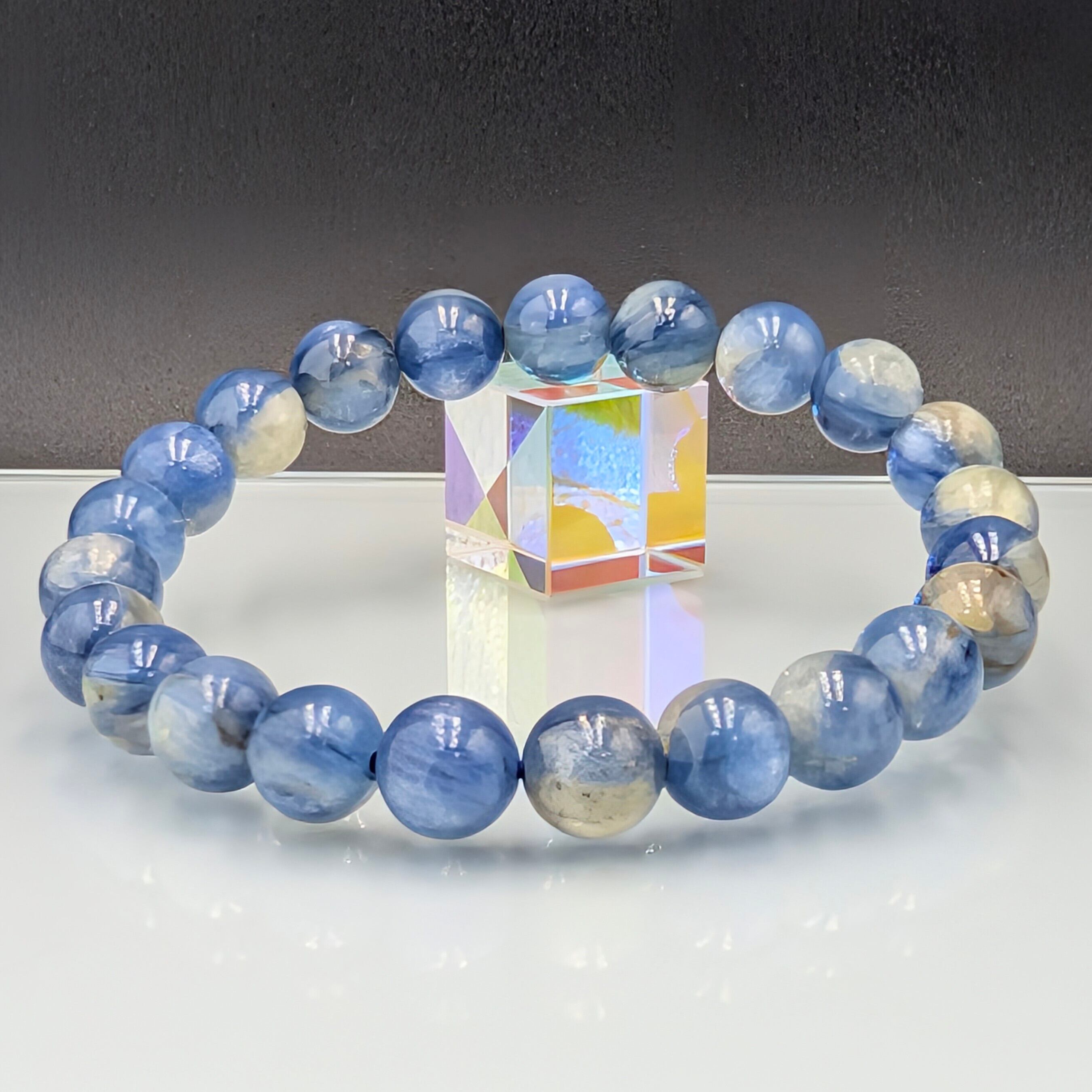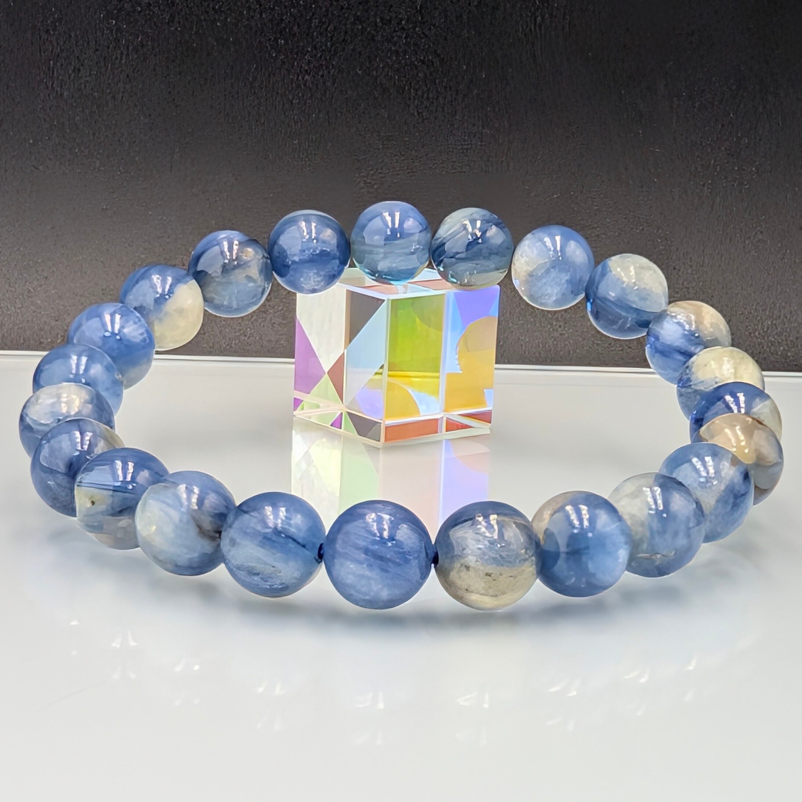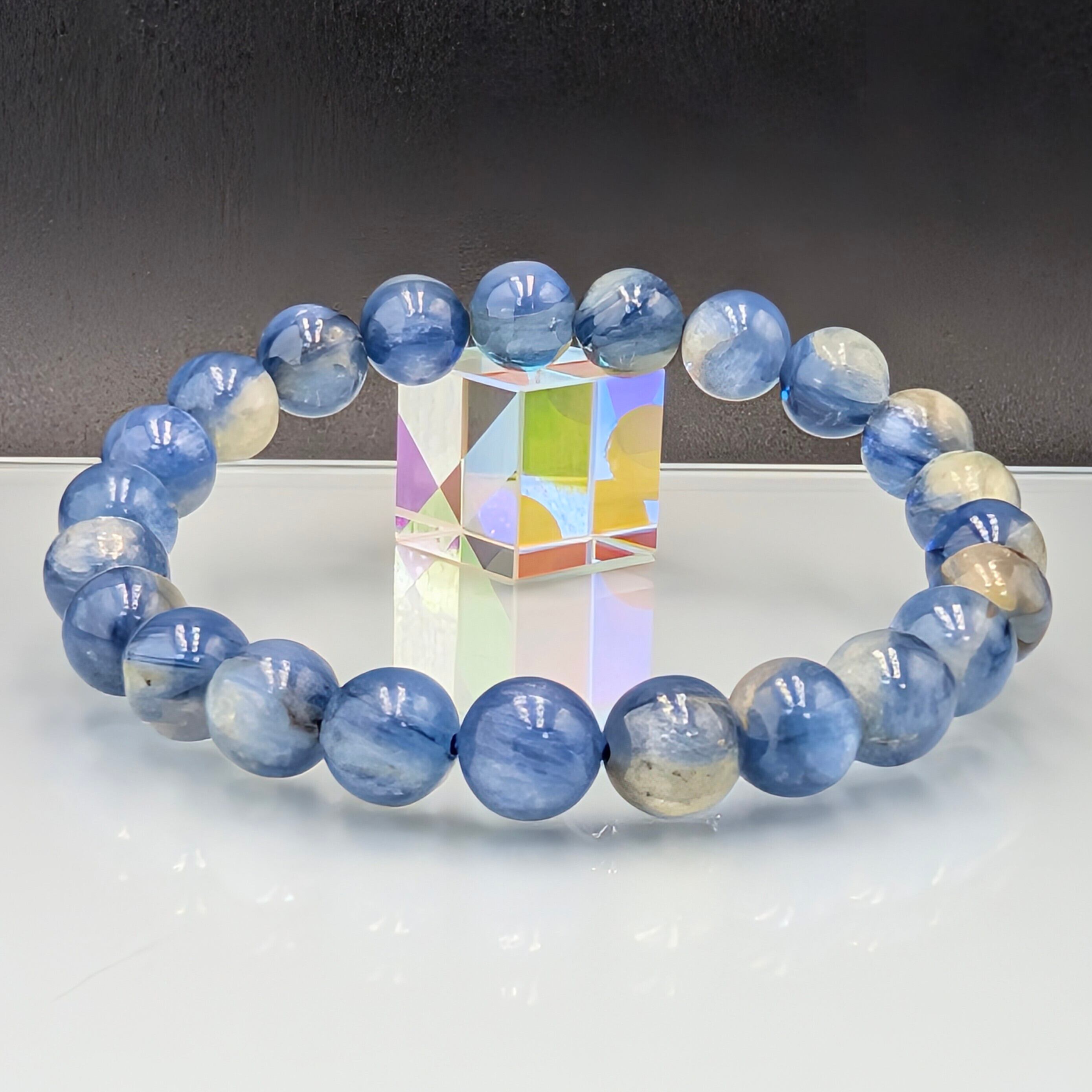 希少な鉱物が奇跡的にひとつに溶け合った「カイヤナイトインフックサイト」8.3mmブレスレット。