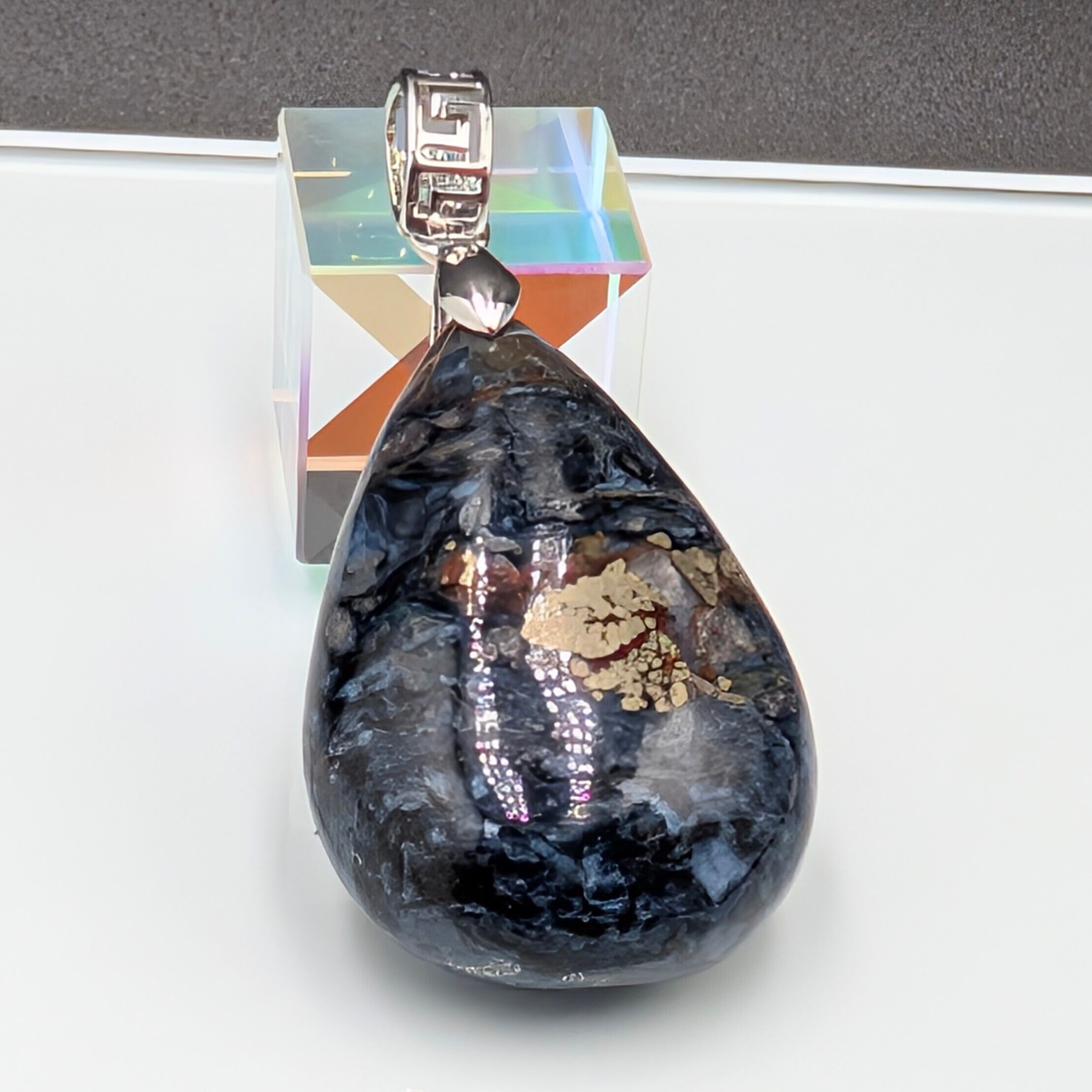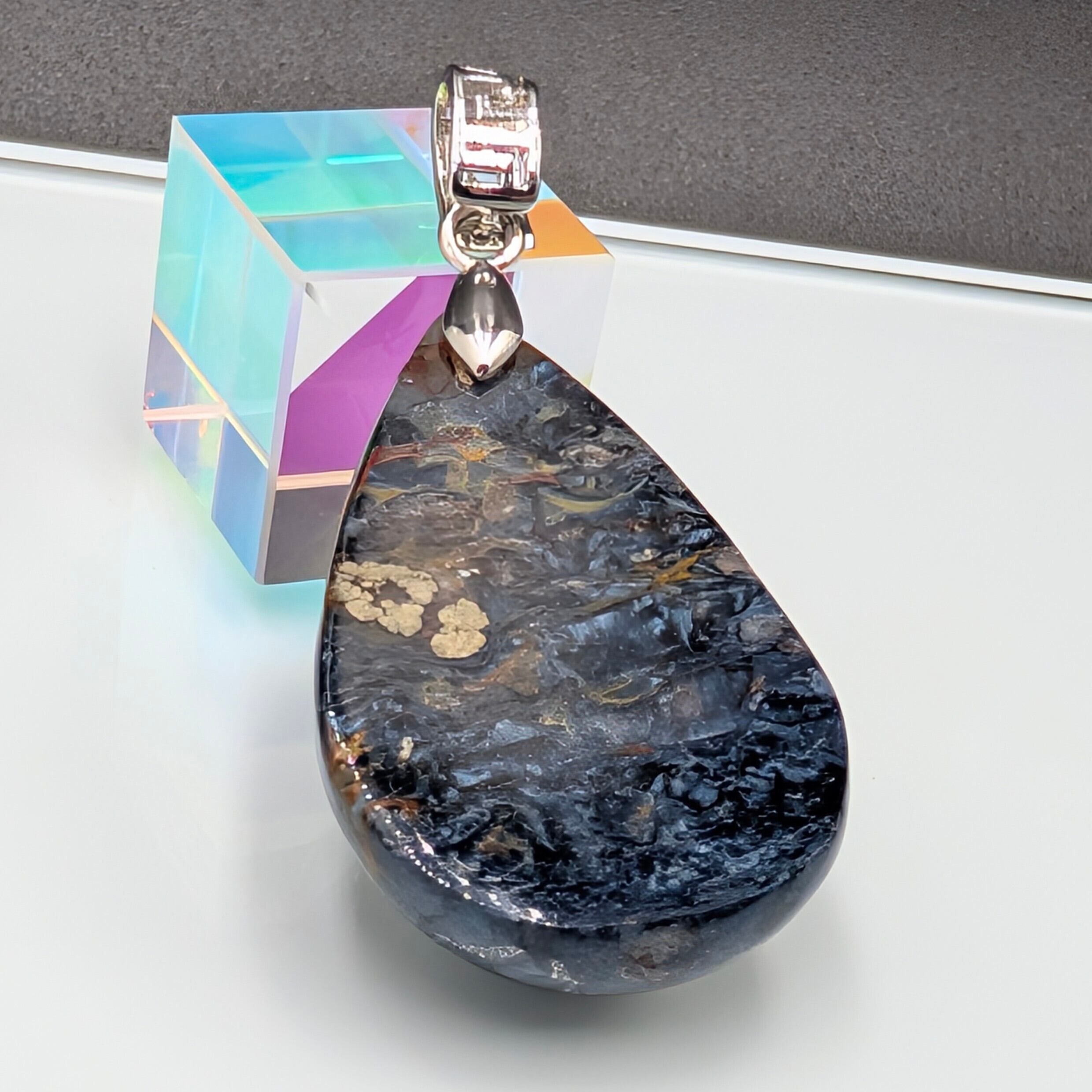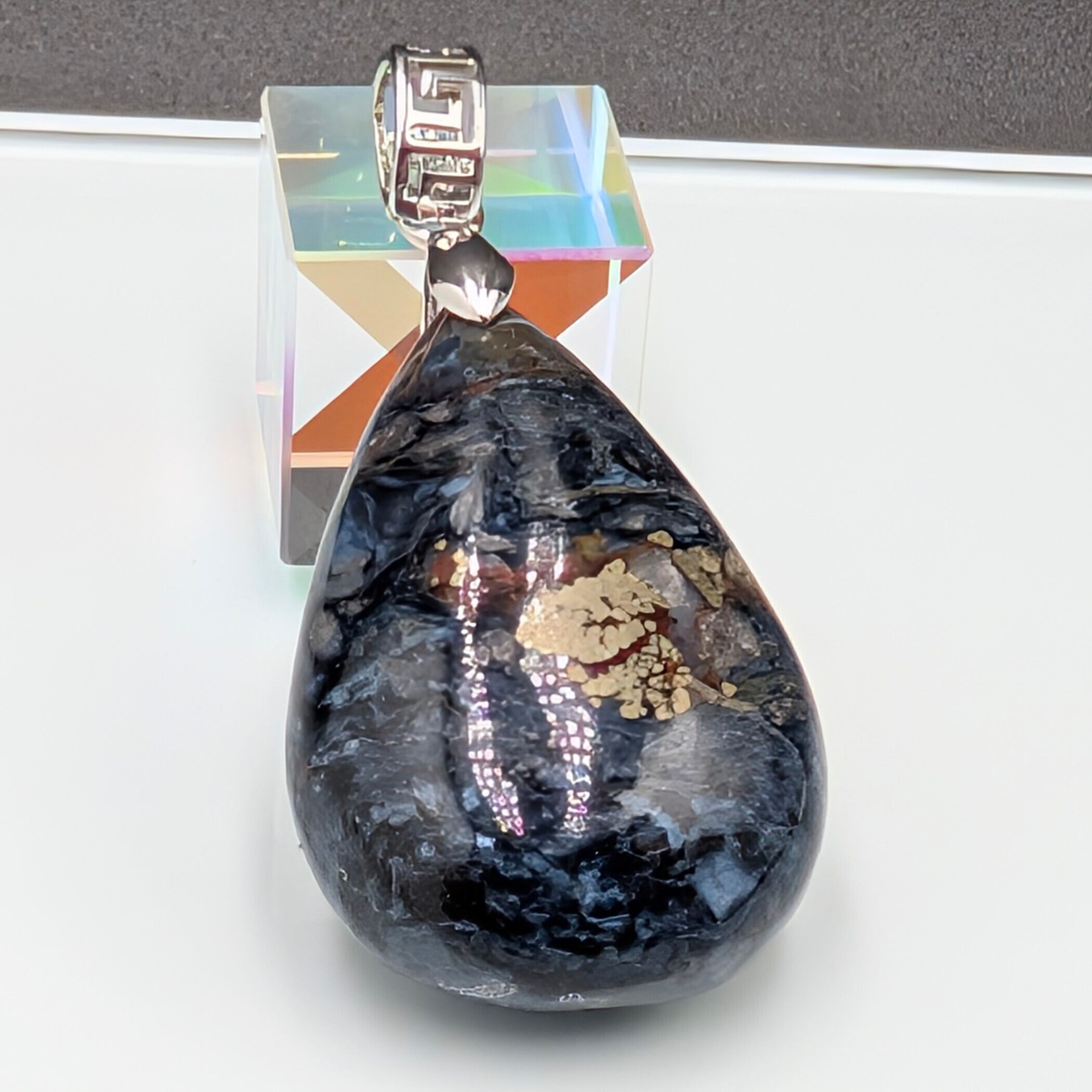 ※一点物【希少】ナミビア産ブルーピーターサイト ペンダントトップ|自然が描く黄金の嵐